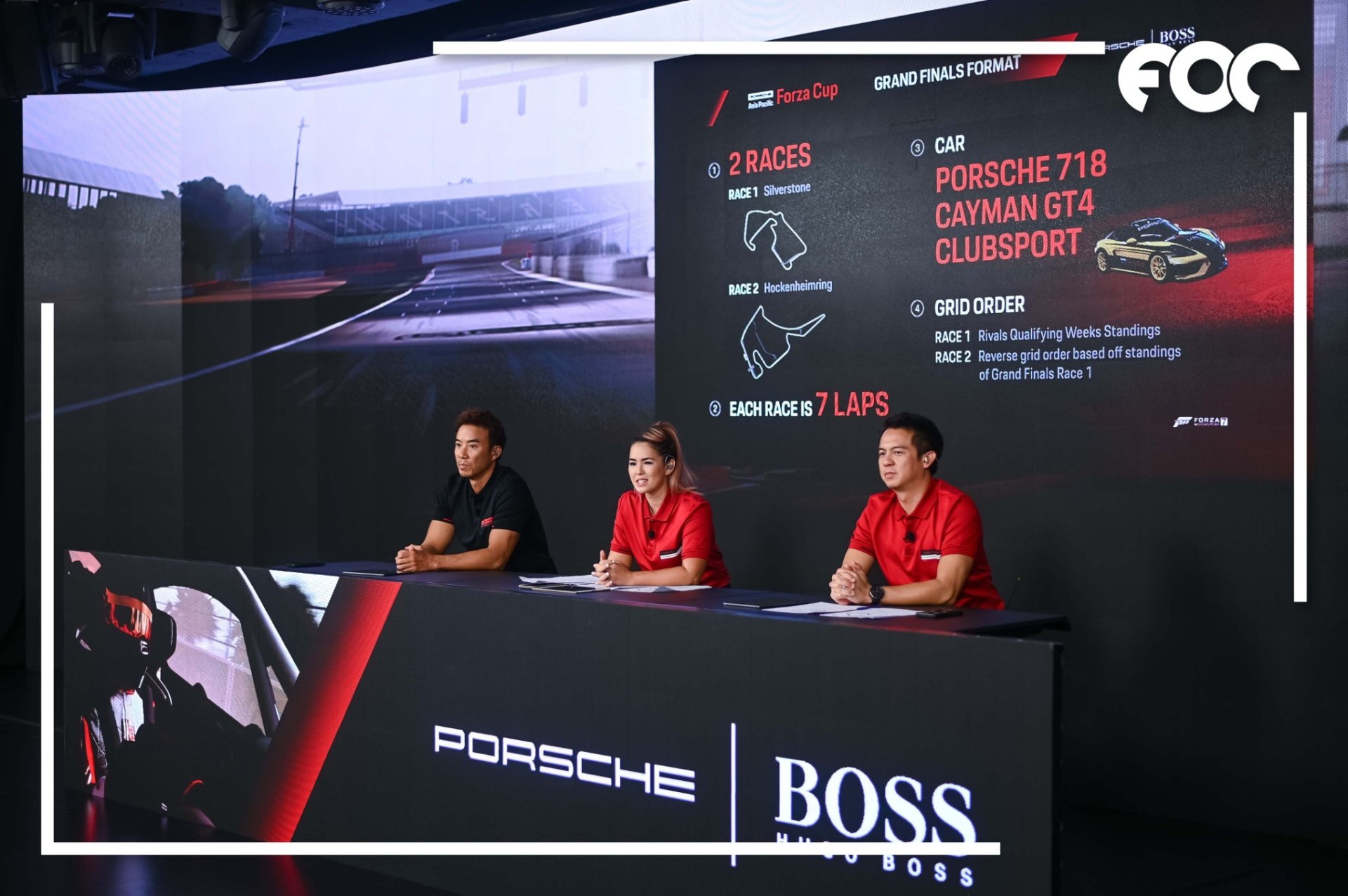 Claire Jedrek และ Yuey Tan 2 นักขับรถแข่งที่มีชื่อเสียงในเอเชียรับหน้าที่เป็นผู้บรรยายและวิเคราะห์สถานการณ์ การแข่งขัน Porsche Asia Pacific Forza Cup ในรอบชิงชนะเลิศ Grand Finals ผ่านการยิงสัญญาณถ่ายทอดสด จากประเทศสิงคโปร์ เมื่อวันที่ 31 ตุลาคม ยอดฝีมือของภูมิภาคทั้ง 16 ราย ทั้งจากประเทศออสเตรเลีย, บรูไน, มาเลเซีย, นิวซีแลนด์, ฟิลิปปินส์, สิงคโปร์ และไทย ร่วมระเบิดศึกแห่งเกียรติยศหลังพวงมาลัยของรถแข่งปอร์เช่ เคย์แมน จีทีโฟร์ คลับสปอร์ต (Cayman GT4 Clubsport) ตลอดสองสนามความเร็วระดับตำนาน นั่นคือ Silverstone และ Hockenheimring และเป็น LagALot IG/Taylor Smith ที่