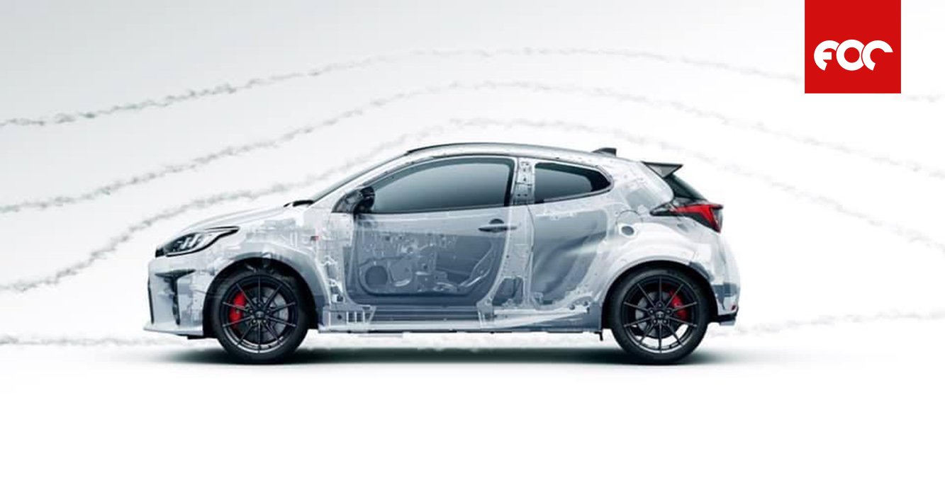 Toyota GR Yaris สร้างขึ้นบนแพลตฟอร์มที่เป็นเอกลักษณ์เฉพาะ โดยผสมผสานระหว่างแพลตฟอร์ม GA-B ในส่วนด้านหน้าและส่วนด้านหลังที่ดัดแปลงมาจากแพลตฟอร์ม GA-C ทีมแรลลี่เน้นย้ำถึงความสำคัญของน้ำหนักที่เบา ซึ่งสิ่งนี้จะเห็นได้จากการใช้ชิ้นส่วนที่ผลิตจากวัสดุอะลูมิเนียมและหลังคาคาร์บอนเสริมแรงในการประกอบตัวรถ ลักษณะตัวถังเป็นอีกหนึ่งองค์ประกอบที่เป็นเอกลักษณ์ เป็นรุ่นสามประตู มีเส้นหลังคาที่ต่ำลงและเรียวลง ซึ่งได้รับการออกแบบมาโดยเฉพาะเพื่อให้มีประสิทธิภาพมากขึ้น ตามหลักอากาศพลศาสตร์ เพื่อให้อากาศไหลผ่านไปยังสปอยเลอร์หลังขนาดใหญ่ส่งผลให้เกิดแรงกดพิเศษ รูปทรงของตัวถังช่วงล่างทำให้อากาศไหลเวียนลงด้านข้างของรถอย่างมีประสิทธิภาพ โดยรถยนต์ทุกคันจะถูกผลิตขึ้นที่ GR factory ในประเทศญี่ปุ่น ซึ่งถือเป็นโรงงานผลิตรถยนต์ที่เพียบพร้อมด้วยเทคโนโลยีอันทันสมัยที่สุดแห่งหนึ่งของโตโยต้า ภายใต้กระบวนการผลิตที่พิถีพิถันโดยผู้เชี่ยวชาญพิเศษด้านการผลิตรถยนต์ (Takumi)