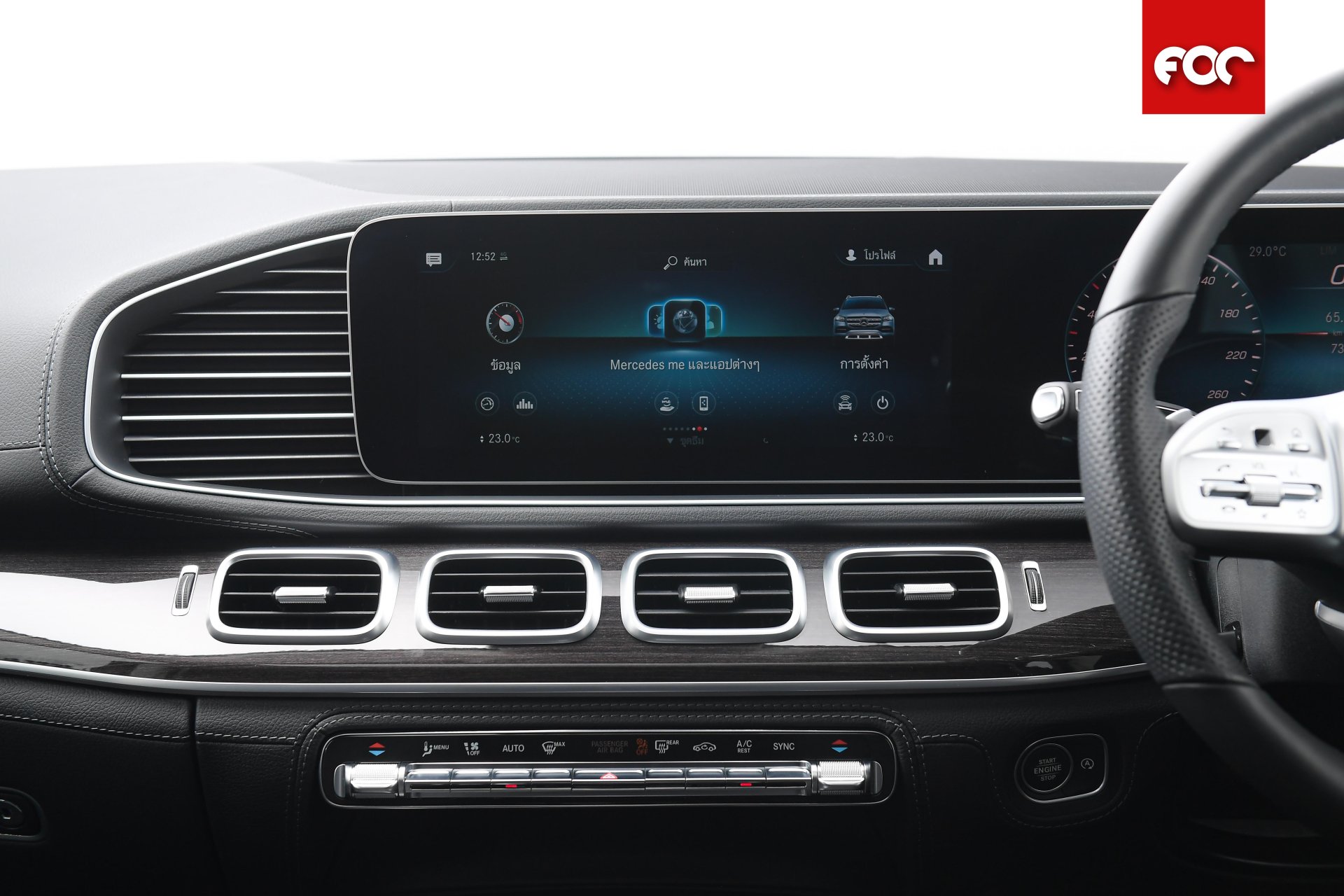 ในห้องโดยสารยังเพิ่มสุนทรียภาพด้วยระบบไฟส่องสว่างแบบ Ambient Light ที่มีให้เลือกถึง 64 สี โดย Mercedes-Benz GLS 350 d 4MATIC AMG Premium ยังมาพร้อมเทคโนโลยีและระบบความปลอดภัยที่ล้ำสมัยมากมาย โดยเฉพาะ Mercedes me connect ที่มีความสามารถในการเชื่อมต่อระหว่างลูกค้าและผู้จำหน่ายอย่างเป็นทางการ โดยทำงานร่วมกับระบบ MBUX (Mercedes-Benz User Experience) ที่ช่วยมอบความสะดวกสบายและความปลอดภัยที่มากขึ้นสำหรับผู้ขับขี่ พร้อมหน้าจอสำหรับผู้โดยสารแถวที่ 2 เพื่อความบันเทิงแบบ MBUX Rear Seat Entertainment จำนวน 2 จอ ขนาด 11.6 นิ้ว พร้อมระบบควบคุมหน้าจอแบบสัมผัส เพลิดเพลินตลอดการเดินทางด้วยหูฟังแบบ wireless head sets คุณภาพสูง