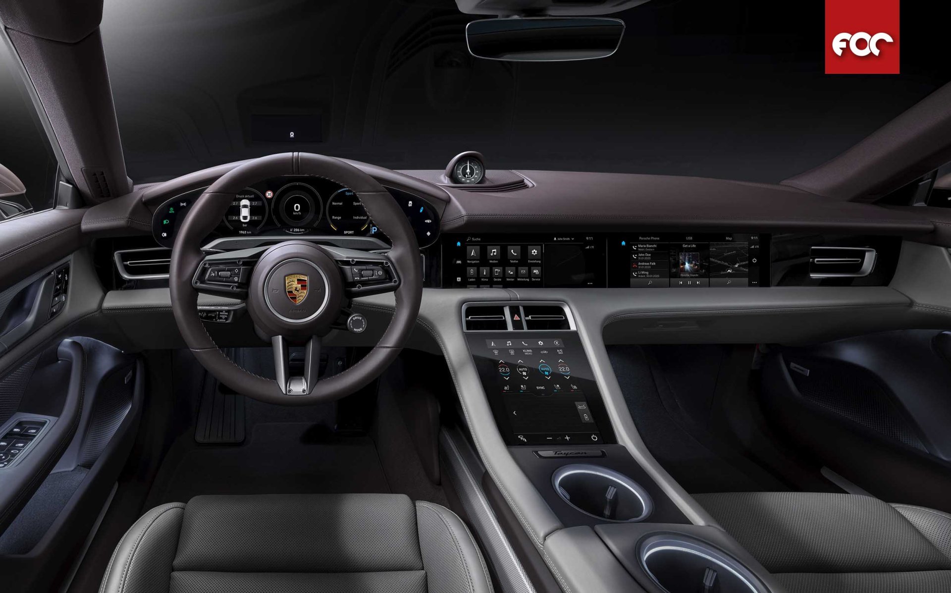 ภายในห้องโดยสาร แสดงออกถึงบรรยากาศของการเริ่มต้นเข้าสู่ยุคใหม่ของยนตรสปอร์ตล้ำอนาคตนับตั้งแต่ปี 2019 ปลอดโปร่ง ด้วยโครงสร้างและสถาปัตยกรรมใหม่หมดจดสมบูรณ์แบบ ไม่ว่าจะเป็นการจัดวางอุปกรณ์รายรอบ แผงหน้าปัทม์ทรงโค้งมน ในตำแหน่งบนสุดของแผงคอนโซลหน้า ให้มุมมองที่ชัดเจนที่สุดจากสายตาของผู้ขับขี่ คอนโซลกลางติดตั้งหน้าจอ infotainment ขนาดใหญ่ถึง 10.9 นิ้ว พร้อมหน้าจอสำหรับผู้โดยสารตอนหน้าเป็นอุปกรณ์พิเศษติดตั้งเพิ่มเติม
