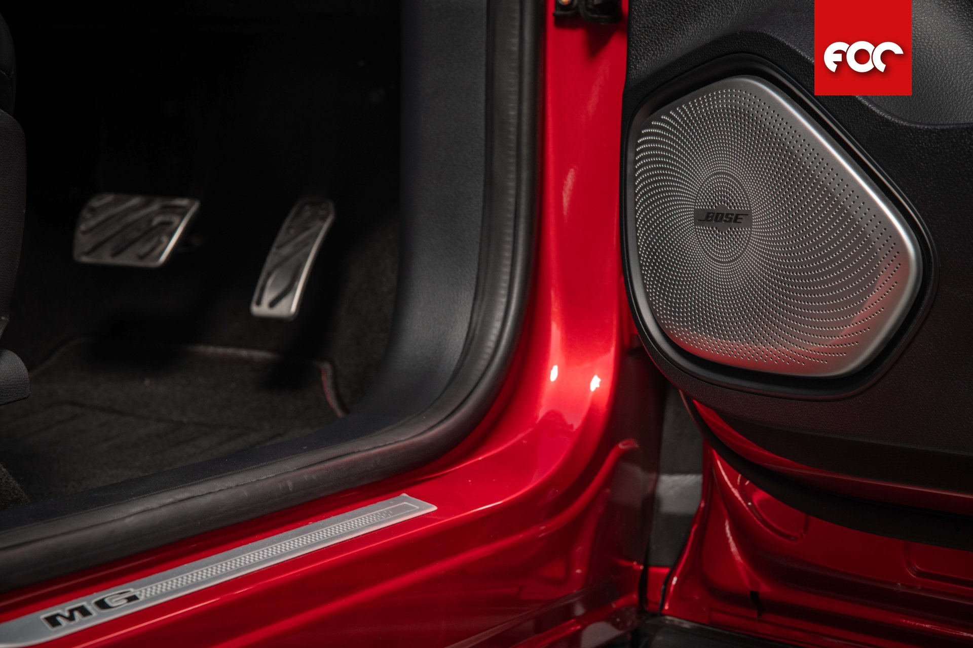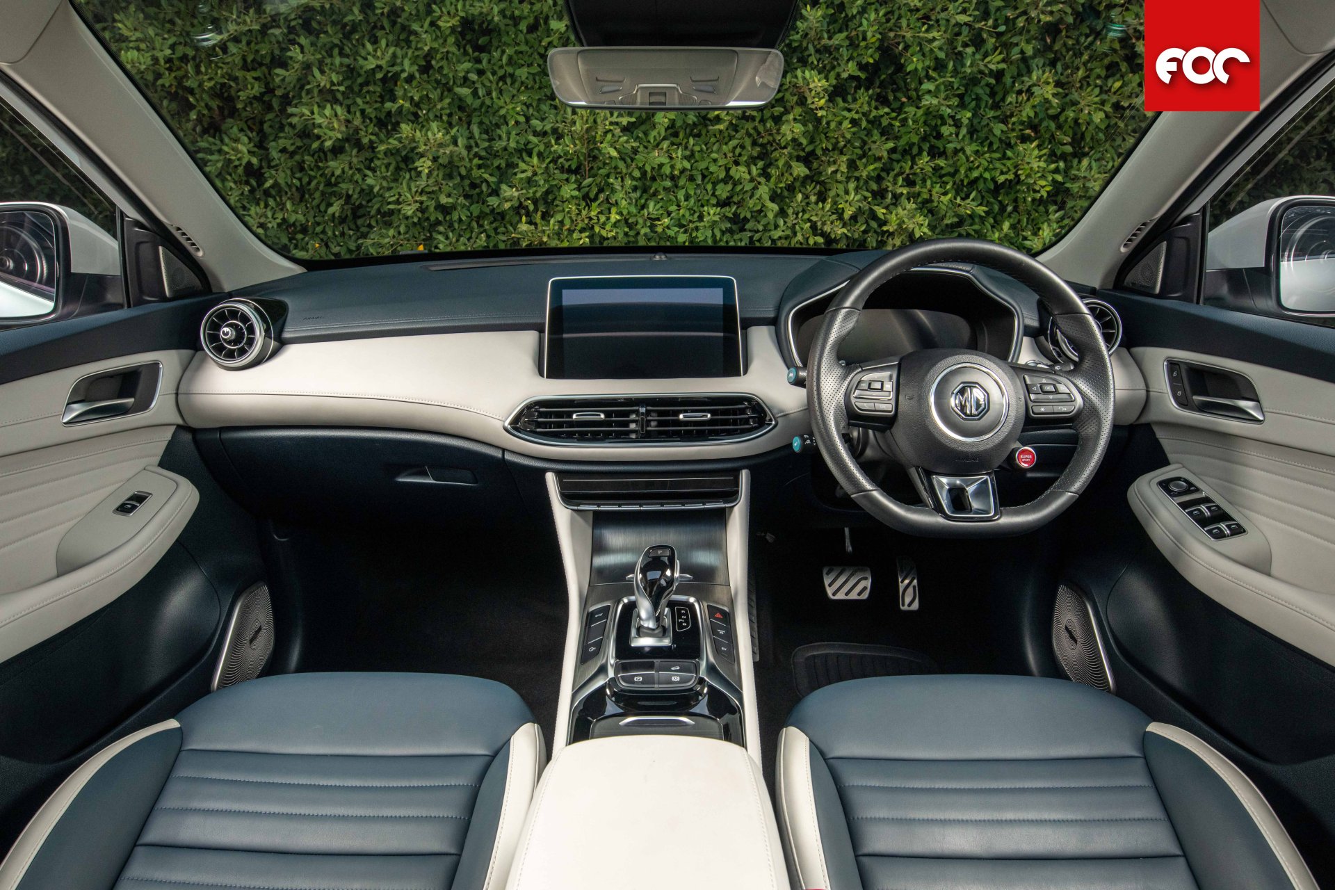 NEW MG HS PHEV ตกแต่งห้องโดยสารภายในด้วยสี 2-Tone Monaco Blue ใส่ใจในทุกรายละเอียดด้วย วัสดุ Soft Touch เบาะหนังคู่หน้าแบบ Sport Bucket Seat ตกแต่งด้วยวัสดุ Alcantara เบาะนั่งคนขับปรับไฟฟ้า 6 ทิศทาง และเบาะนั่งผู้โดยด้านหน้าปรับไฟฟ้า 4 ทิศทาง เพิ่มความเป็นส่วนตัวในห้องโดยสารด้วย NVH Luxury Silence Space เพิ่มฟิล์มกันเสียง และแผ่นซับเสียงภายในห้องโดยสาร ที่จะช่วยตัดเสียงรบกวนภายนอก พร้อมหลังคาซันรูฟที่เปิดกว้างแบบพาโนรามา (Panoramic Sunroof) บนพื้นที่เกือบ 90% ของพื้นที่หลังคามอบประสบการณ์ใหม่ในการ ขับขี่ด้วยจอแสดงผลอัจฉริยะ Full Virtual Dashboard ขนาด 12 นิ้ว และจอควบคุมกลางแบบทัชกรีนขนาด 10 นิ้ว ระบบเสียง BOSE 8.1 Sound System พร้อมสร้างบรรยากาศและสีสันให้กับการขับขี่ด้วย Interactive Ambient Light ที่สามารถปรับเฉดสีได้มากถึง 64 เฉดสี