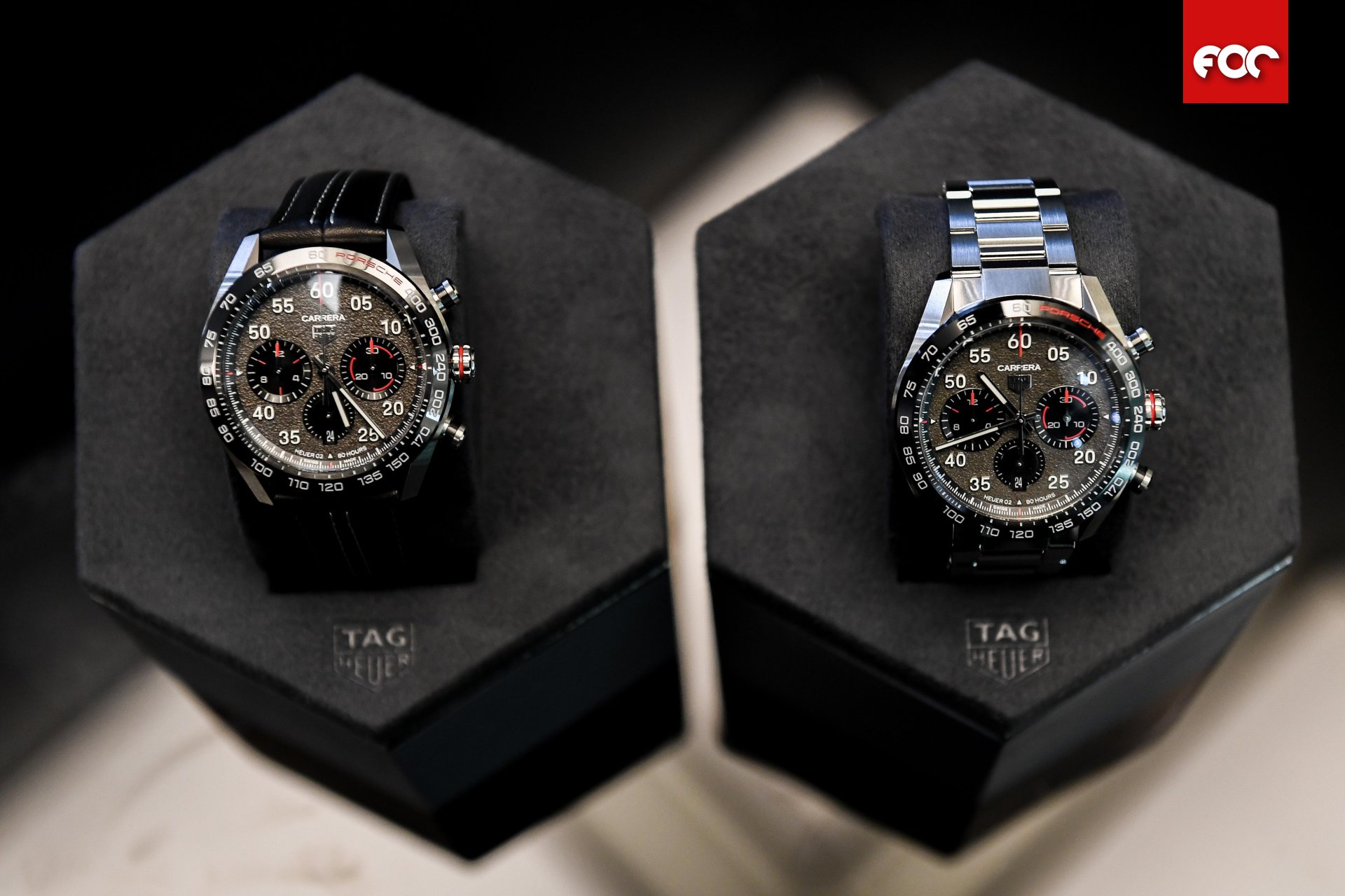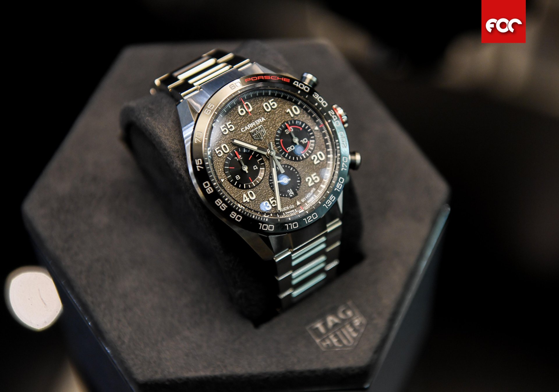 Carrera Sport Chronograph ซึ่งขอบหน้าปัดมีสเกลทาคีมิเตอร์อันเป็นเอกลักษณ์ และได้เพิ่มฟีเจอร์ใหม่ๆ ที่ได้แรงบันดาลใจมาจากดีไซน์ของรถยนต์ Porsche ลงไป นาฬิกาโครโนกราฟรุ่นนี้คือส่วนผสมที่ลงตัวของสองแบรนด์ไอคอนแห่งประสิทธิภาพ คุณภาพ และนวัตกรรม สะท้อนความเป็นเลิศและสิ่งที่เป็นหัวใจสำคัญของทั้งสองแบรนด์