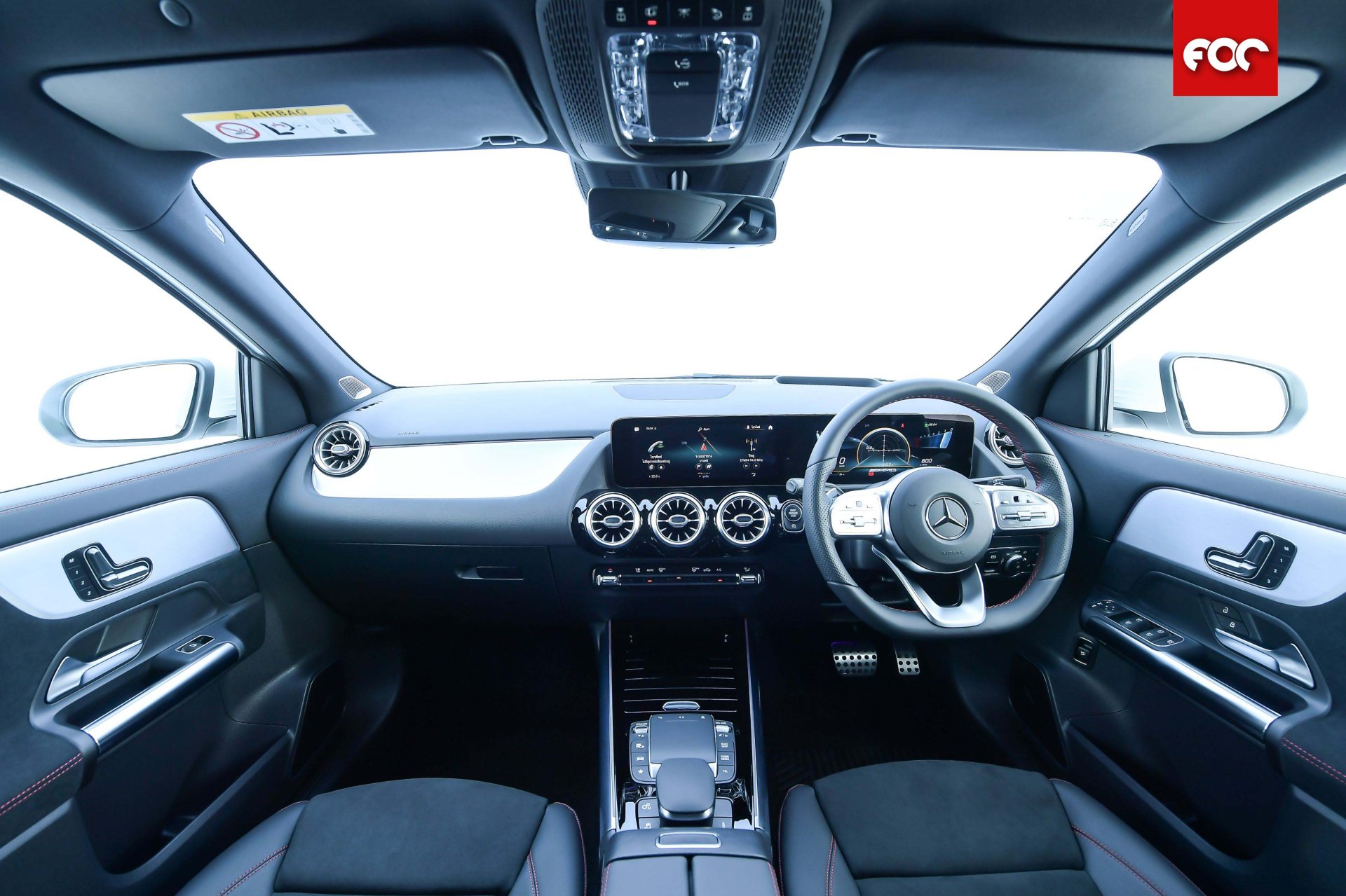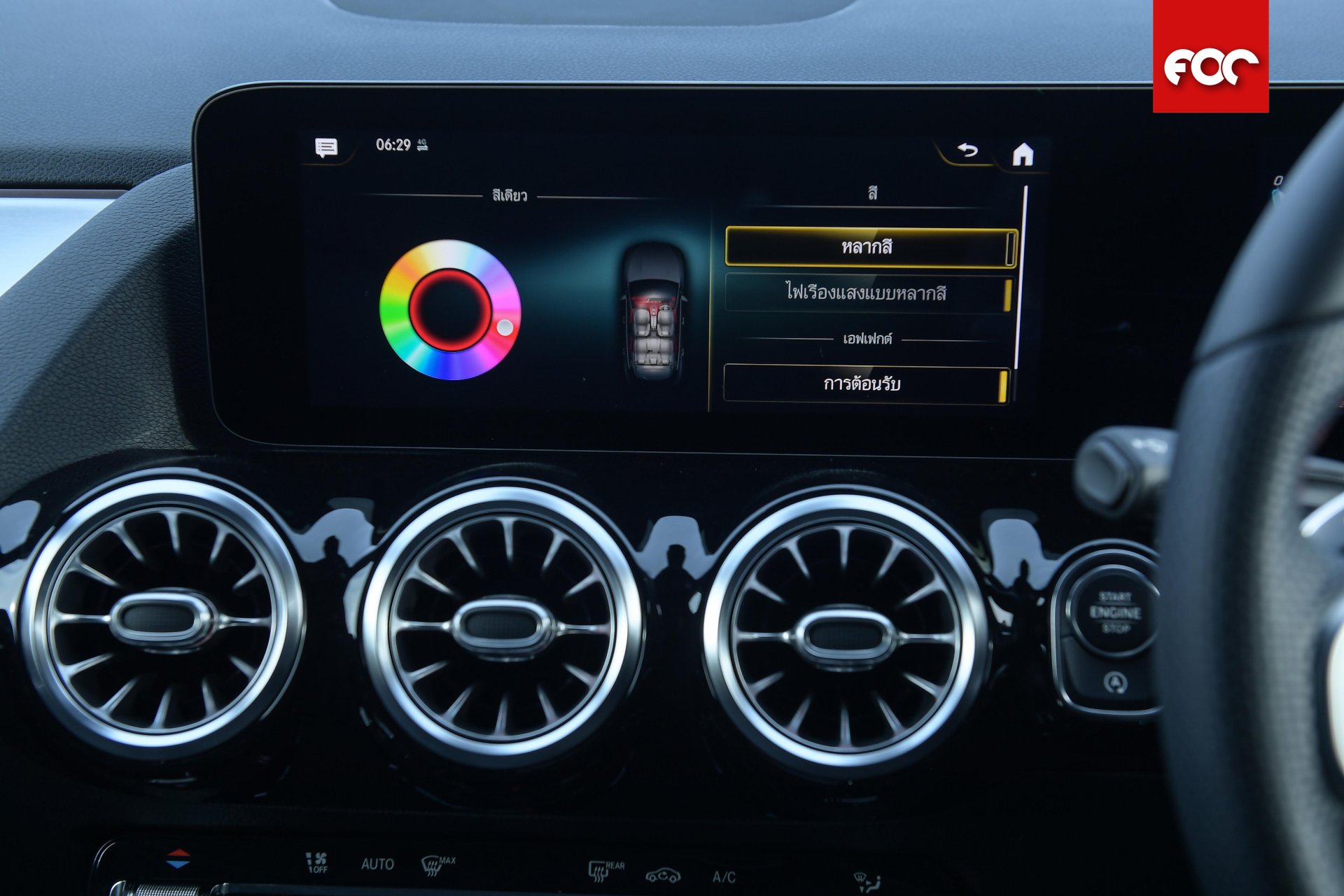 ภายในห้องโดยสารตกแต่งในแบบ AMG Interior ที่มอบความเร้าใจอันไร้ที่ติ แม่นยำทุกการควบคุมด้วยพวงมาลัยดีไซน์สปอร์ตแบบ 3 ก้านท้ายตัด ตกแต่งด้วยหนัง nappa พร้อมปุ่มควบคุมแบบ Touch control เบาะนั่ง AMG Sport seat แบบสปอร์ตที่ถ่ายทอดความรู้สึกของนักแข่งได้อย่างโดดเด่น พร้อมเพิ่มความกระชับในทุกรูปแบบการขับขี่ด้วยหนังชนิด ARTICO สลับกับ DINAMICA micro-fibre ตัดเย็บด้วยด้ายสีแดงและเข็มขัดนิรภัยสีแดงตลอดทั้งคัน โดยมีไฟล้อมรอบห้องโดยสารแบบ Ambient light ที่สามารถเลือกปรับได้มากถึง 64 เฉดสีเป็นอีกหนึ่งไฮไลต์ที่ช่วยปรับอารมณ์ของรถได้ตามความรู้สึกของผู้ขับขี่