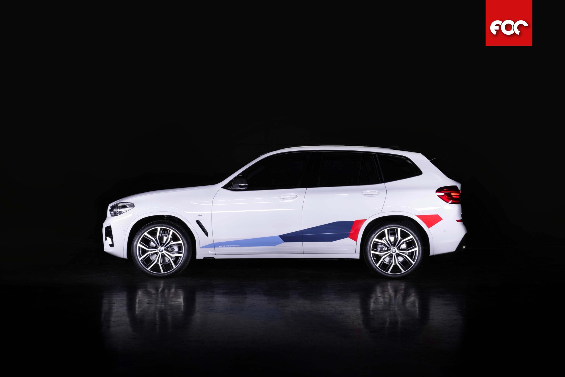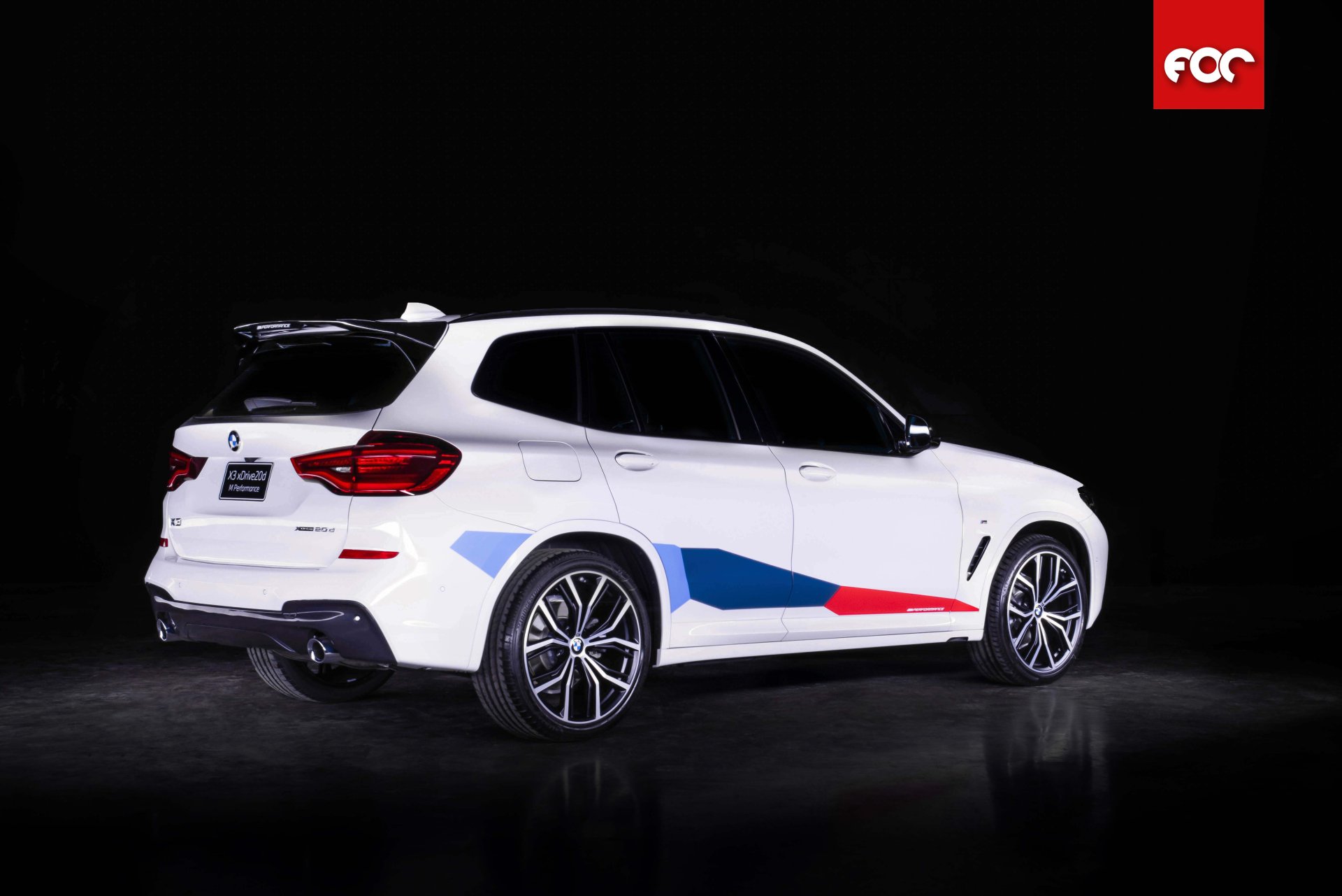 อีกหนึ่งรุ่นใหม่ที่มาร่วมทัพยนตรกรรมเร้าใจสไตล์รถแข่งครั้งนี้ ได้แก่ บีเอ็มดับเบิลยู X3 เจเนอเรชั่นที่ 3 เสริมความสปอร์ตเต็มพิกัดยิ่งขึ้นด้วยชุดแต่ง M Performance โดยมาพร้อมล้ออัลลอย M Performance ขนาด 21 นิ้ว ลาย Y-spoke รูปลักษณ์ภายนอกโดดเด่นด้วยชิ้นส่วนคาร์บอนไฟเบอร์ ได้แก่ ฝาครอบกระจกข้าง และกาบบันไดพร้อมไฟส่องสว่าง สอดรับกับสปอยเลอร์หลังสีดำเงา เสริมความพิเศษสะดุดตาด้วยสติกเกอร์แต่งรถ M Performance บนกันชนหน้าและสติกเกอร์แต่งรถ BMW M แบบ tri-color ทั้ง 2 ข้างของตัวถัง ตอกย้ำถึงเอกลักษณ์ความสปอร์ตของบีเอ็มดับเบิลยู X3 กว่าที่เคย
