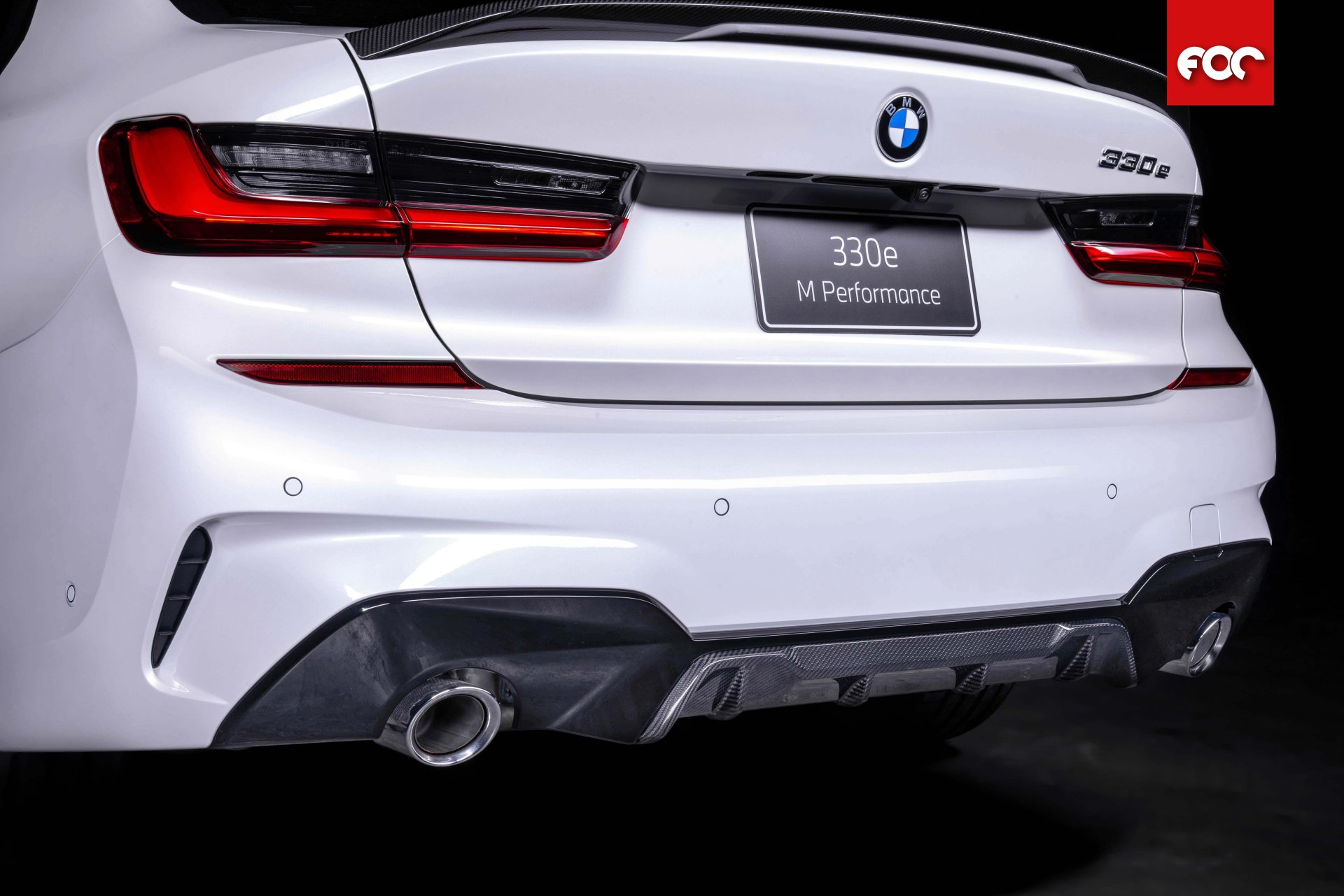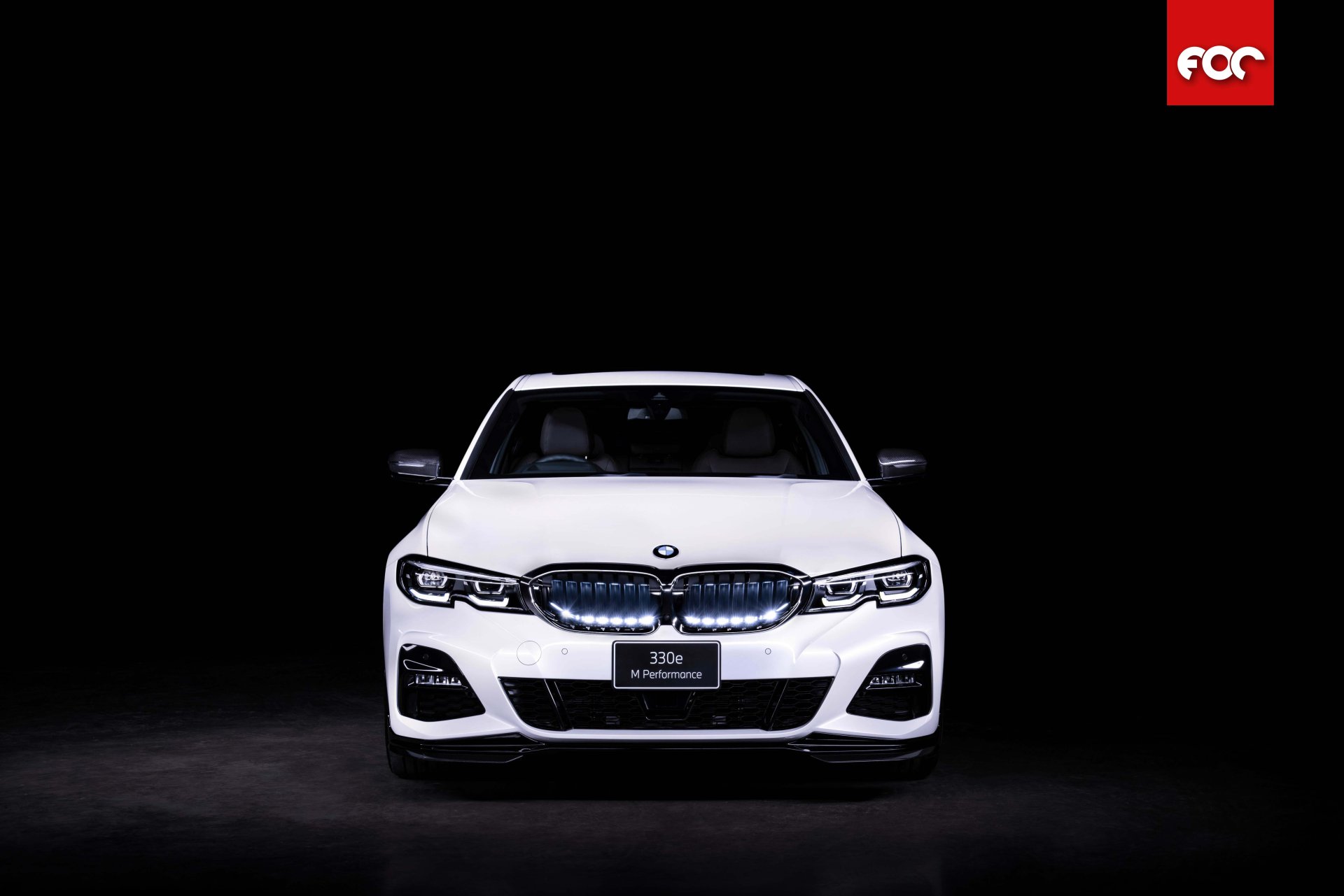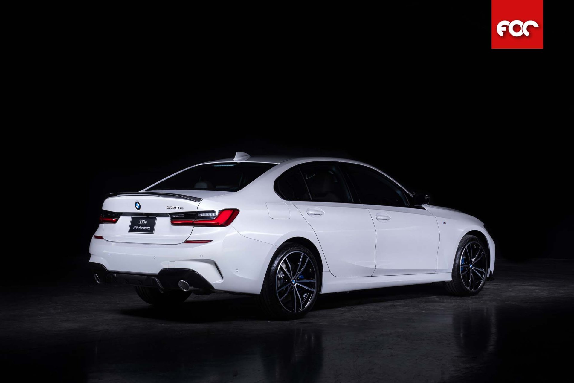 บีเอ็มดับเบิลยู 330e M Sport (M Performance Edition) สืบทอดรูปโฉมที่ทันสมัยและปราดเปรียวของบีเอ็มดับเบิลยู ซีรีส์ 3 ซีดาน ใหม่ ด้วยเส้นสายที่แข็งแกร่งและคมชัด ด้านหน้าของตัวรถคือกระจังหน้าทรงไตคู่ขนาดใหญ่ในกรอบที่เชื่อมกับไฟหน้าคู่ LED ทรงเรียวยาว ส่งเสริมรูปลักษณ์ความสง่าแบบรถสปอร์ตให้โดดเด่นด้วยดีไซน์แบบ Hofmeister Kink อันเป็นเอกลักษณ์ด้วยกรอบหน้าต่างที่ได้รับการออกแบบให้เป็นหนึ่งเดียวกับเสา C-pillar พร้อมด้วยไฟท้ายดีไซน์ใหม่เรียวยิ่งขึ้นในรูปทรง L แนวนอนสีหม่นแบบสามมิติ และท่อไอเสียแบบคู่ให้ท้ายรถดูกว้างและสปอร์ตกว่าเดิม โดยในรุ่น M Performance Edition มาพร้อมล้ออัลลอย M ขนาด 19 นิ้ว ลาย Double-spoke