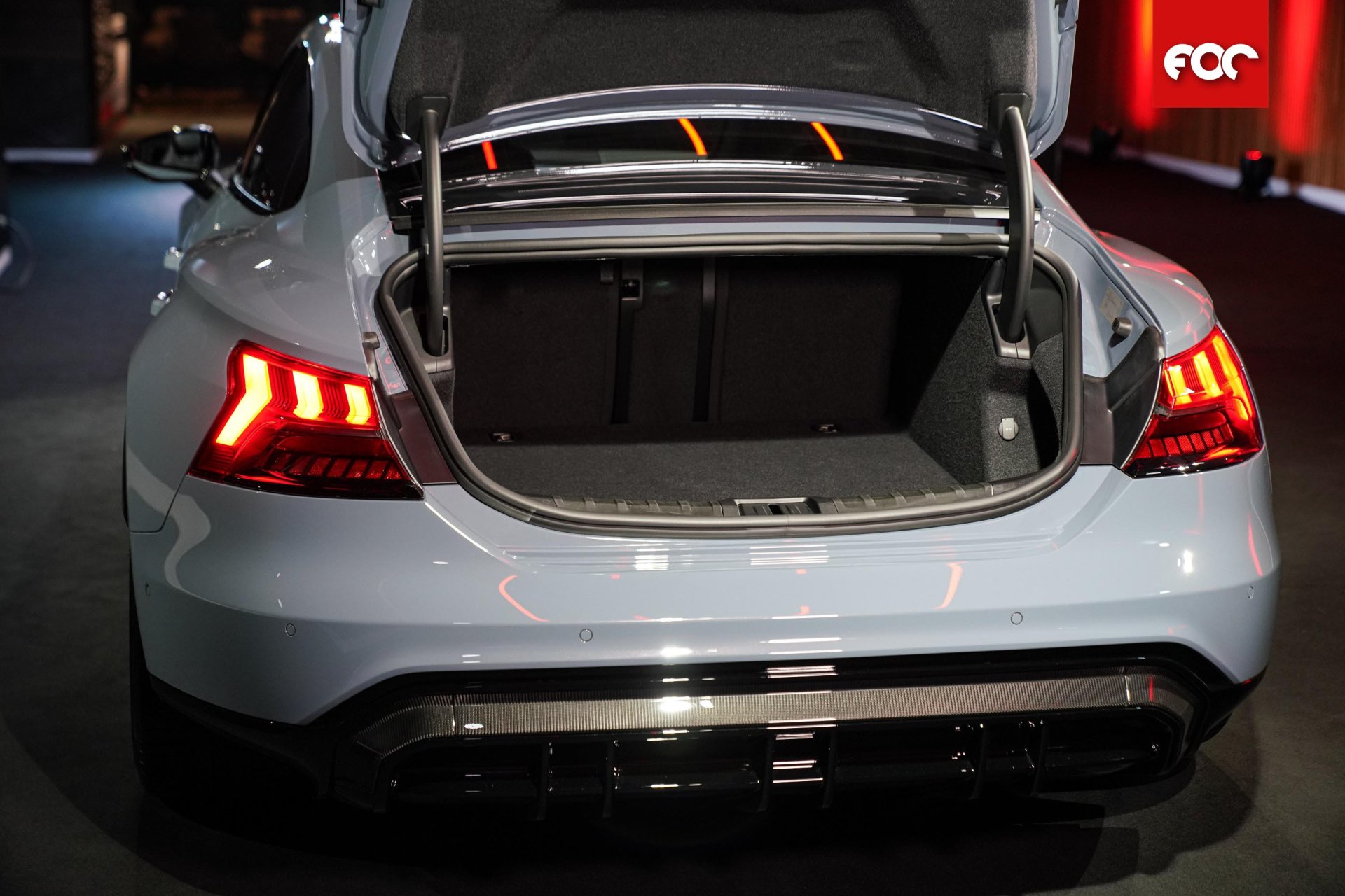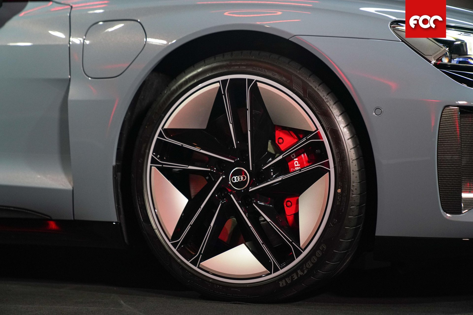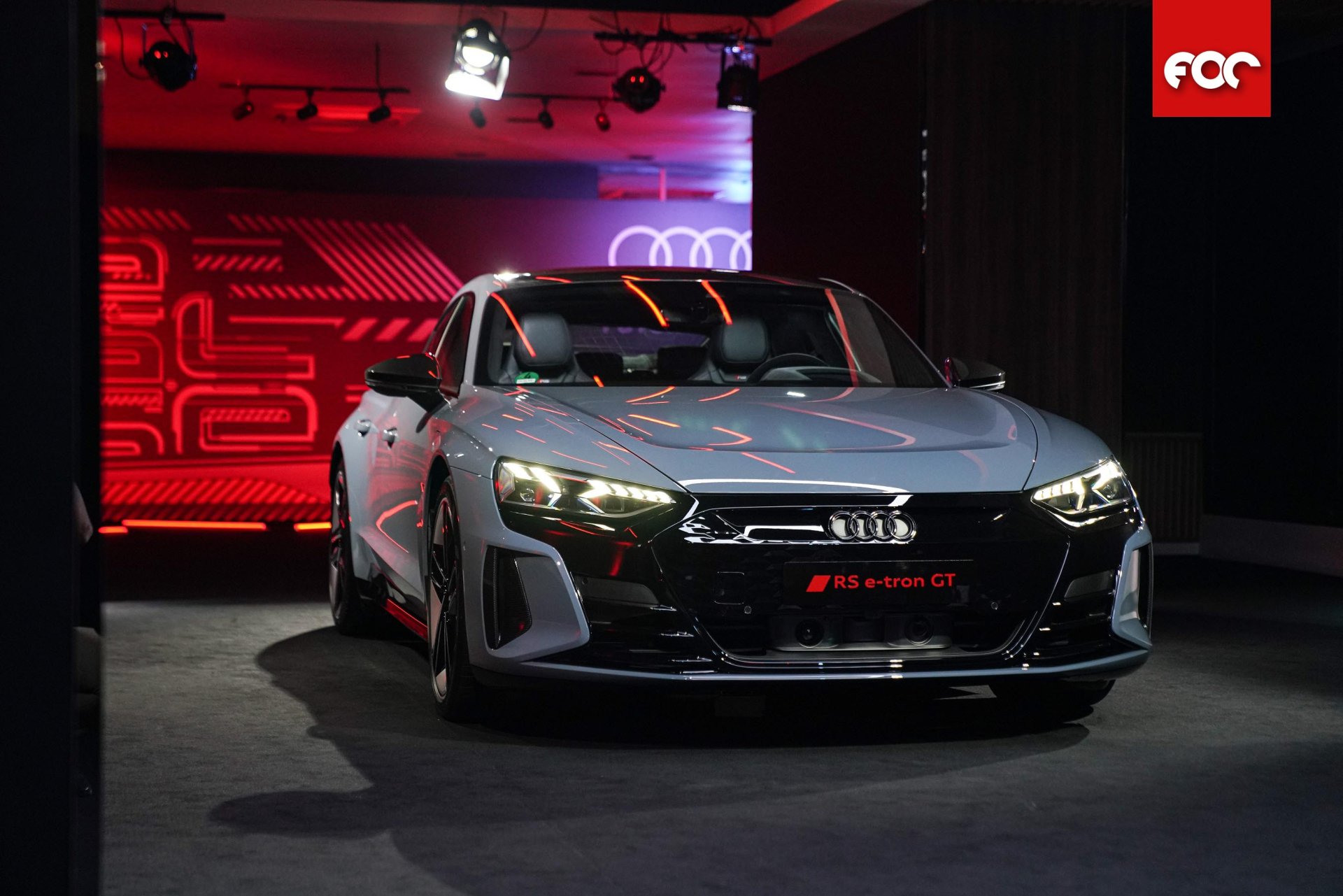 สำหรับตัวท็อป “Audi RS e-tron GT quattro” เป็นยนตรกรรมพลังงานไฟฟ้าที่มีความโดดเด่นด้านดีไซน์ โดยมีความสมบูรณ์แบบ สวยงาม โฉบเฉี่ยว สปอร์ตทั้งภายนอกและภายใน ด้วยอุปกรณ์อำนวยความสะดวกที่ผสมผสานดีไซน์ ฟังก์ชั่น และความสปอร์ตได้อย่างลงตัว มาพร้อมระบบควบคุมการขับเคลื่อนมอเตอร์ไฟฟ้า 2 ตำแหน่ง ให้พละกำลังสูงถึง 646 แรงม้า ใน Boost Mode แรงบิดสูงสุด 830 นิวตันเมตร อัตราเร่ง 0-100 กม./ชม. เพียง 3.3 วินาที ใน Boost Mode ความเร็วสูงสุด 250 กม./ชม. สามารถขับได้ไกลถึง 504 กิโลเมตรต่อการชาร์จหนึ่งครั้ง (ทดสอบตามมาตรฐาน NEDC) นอกจากนี้ Audi RS e-tron GT quattro ยังติดตั้งพวงมาลัยไฟฟ้าแบบ All-wheel steering เพิ่มความคล่องตัวในการขับขี่ในเมืองและการทรงตัวขณะเข้าโค้งด้วยความเร็ว พื้นที่เก็บสัมภาระกว้างขวาง โดยด้านหน้าความจุ 85 ลิตร ด้านหลัง 350 ลิตร ล้อ 21 นิ้ว ลายพิเศษ ดิสก์เบรกหน้า-หลังเคลือบทังสเตนคาร์ไบด์ (Tungsten Carbide) พร้อมคาลิเปอร์เบรกสีแดง ชุดตกแต่งภายนอกแบบ Black package พร้อมตกแต่งกระจกมองข้างด้วยสีดำ และตกแต่งกระจังหน้าด้วยสี Glossy black