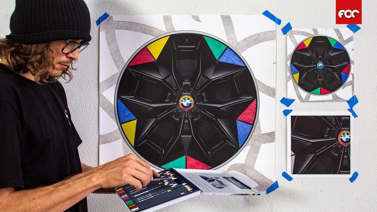 เริ่มกันที่ล้อสีสะดุดตาของ หนุ่มสายป๊อปอาร์ต Spencer Mar Guilburt ที่มองล้อรถว่า เป็นงานแกะสลักที่อยู่ในแกลอรี่ จึงไม่ลังเลเลยที่จะอวดฝีมือ แถมนี่ยังเป็นการสเก็ตซ์ภาพแบบดิจิทัลครั้งแรกด้วย เขายิ่งประทับใจ เมื่อปรินต์ออกมาด้วยเครื่องพิมพ์ที่ให้สีเสมือนจริง แถมด้วยการเติมลักษณะผิวสัมผัสให้คล้ายกับระบายด้วยสีไม้เพื่อความสมจริงอีกด้วย