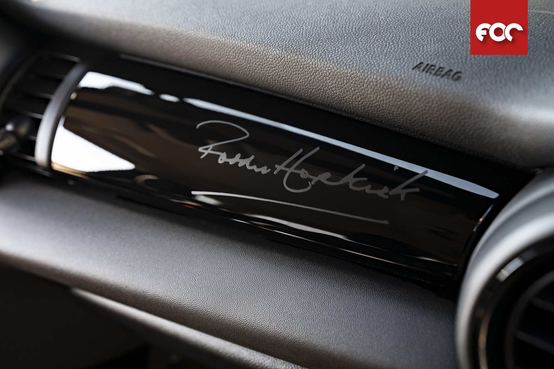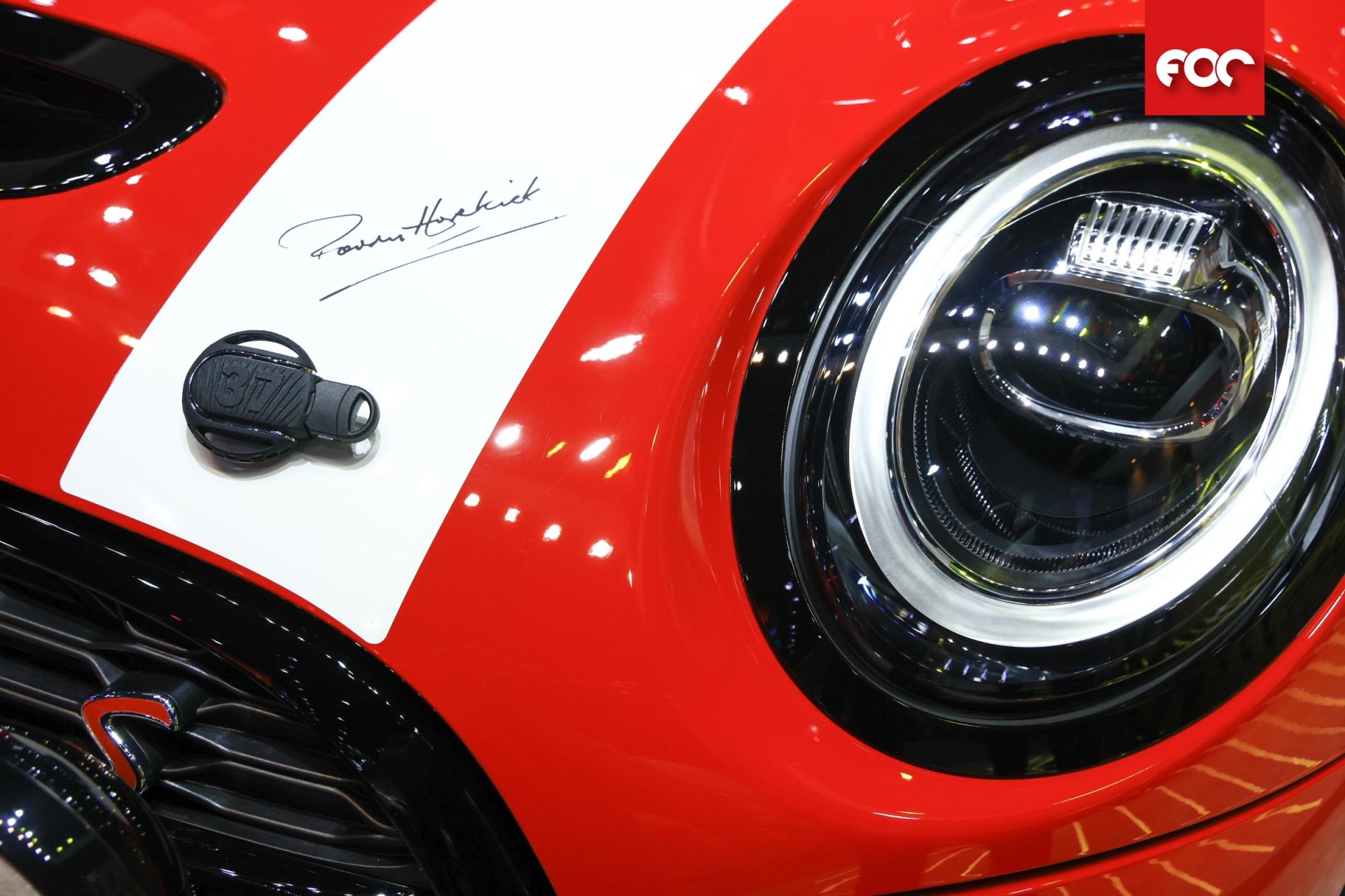 ภายในห้องโดยสารยังมีลายเซ็นของฮ็อปเคิร์กประดับอยู่ที่แผงคอนโซลหน้ารถฝั่งผู้โดยสาร กลมกลืนเข้ากับวัสดุผิวหน้าแบบ Piano Black high gloss อย่างลงตัว ส่วนกาบบันไดที่พื้นห้องโดยสารทั้งสองข้าง ยังเตะตาด้วยป้าย LED ที่ระบุชื่อ “Paddy Hopkirk” เช่นกัน มินิ Paddy Hopkirk Edition ยังมาพร้อมกับชุดแต่ง MINI Excitement และ Comfort Access รวมถึงอุปกรณ์เสริมอย่างไฟหน้าสำรองในกรอบสีดำ Piano Black กุญแจรถที่ประทับด้วยหมายเลข 37 และแถบสีดำ Piano Black ที่ลากตัดระหว่างตัวถังรถกับกระจกหน้า ข้าง และหลังรอบด้าน