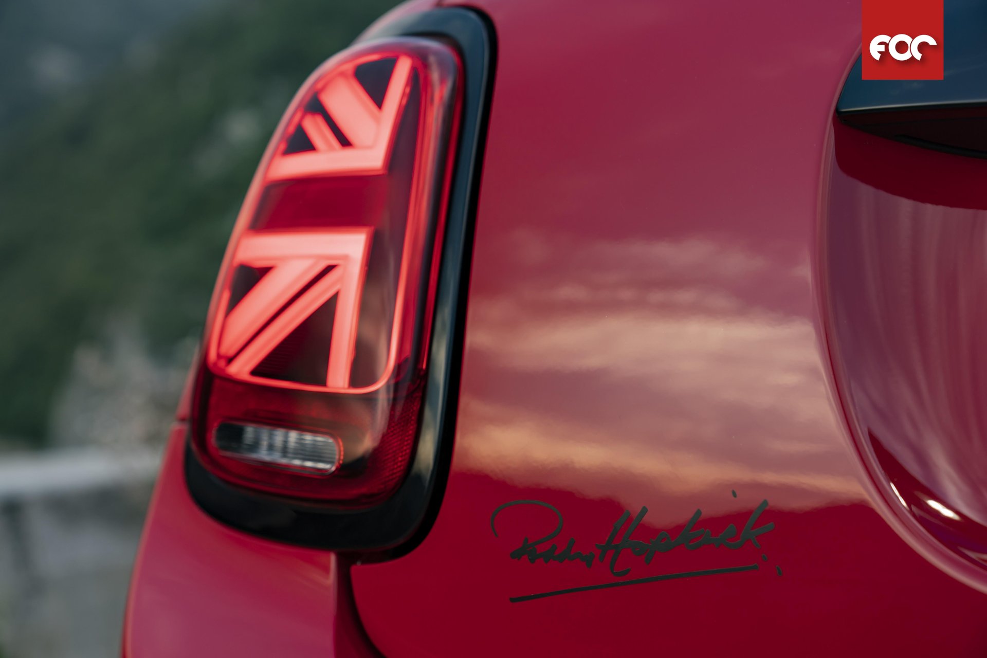 นอกจากไฟหน้าแบบ LED และไฟท้ายลายธงยูเนียน แจ็คในแบบฉบับของมินิแล้ว มินิ Paddy Hopkirk Edition ยังแตกต่างด้วยสติ๊กเกอร์ลายอักษร “Paddy Hopkirk Monte Carlo” และแถบสีขาวที่คาดอยู่บนกระโปรงหน้ารถฝั่งคนขับที่ประดับด้วยลายเซ็นของแพดดี้ ฮ็อปเคิร์ก พร้อมด้วยเลขทะเบียน “33EJB” ของมินิคันแชมป์ปี 1964 ที่ปรากฏอยู่ในแถบขาวด้วยลายกราฟฟิกแบบสามมิติ ขณะที่บริเวณประตูท้ายก็ตกแต่งด้วยลายเซ็นของนักขับชาวไอร์แลนด์เหนือด้วย