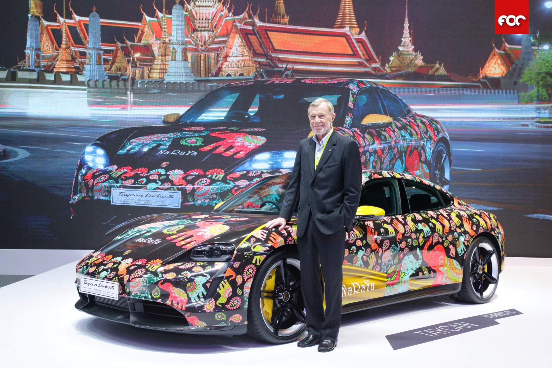 มร.ปีเตอร์ โรห์เวอร์ กรรมการผู้จัดการ ปอร์เช่ ประเทศไทย กล่าวว่า “เรามีความภาคภูมิใจเเละยินดีเป็นอย่างยิ่ง ในการร่วมงานกับเเบรนด์ที่มีอัตลักษณ์อันโดดเด่นเเละได้รับการยอมรับในระดับนานาชาติอย่าง นารายา (NaRaYa) ซึ่งเป็นเเบรนด์ของคนไทยที่สรรค์สร้างทุกลวดลายมาจากหัวใจ ดังเช่นลายช้างเครื่องทรงเเละผ้าไหมสีทองอร่ามปริว สไหวอันสื่อถึงพละกำลังเเละสมรรถนะของยนตรกรรมสปอร์ตเเห่งอนาคตที่จะไม่หยุดนิ่ง นับเป็นการผสมผสาน ระหว่างเทคโนโลยีล้ำยุคเเละศิลปะการออกเเบบของไทยที่ช่วยเพิ่มความโดดเด่นและความแตกต่างให้กับยนตรกรรม สปอร์ตไฟฟ้าของเราได้อย่างลงตัว”