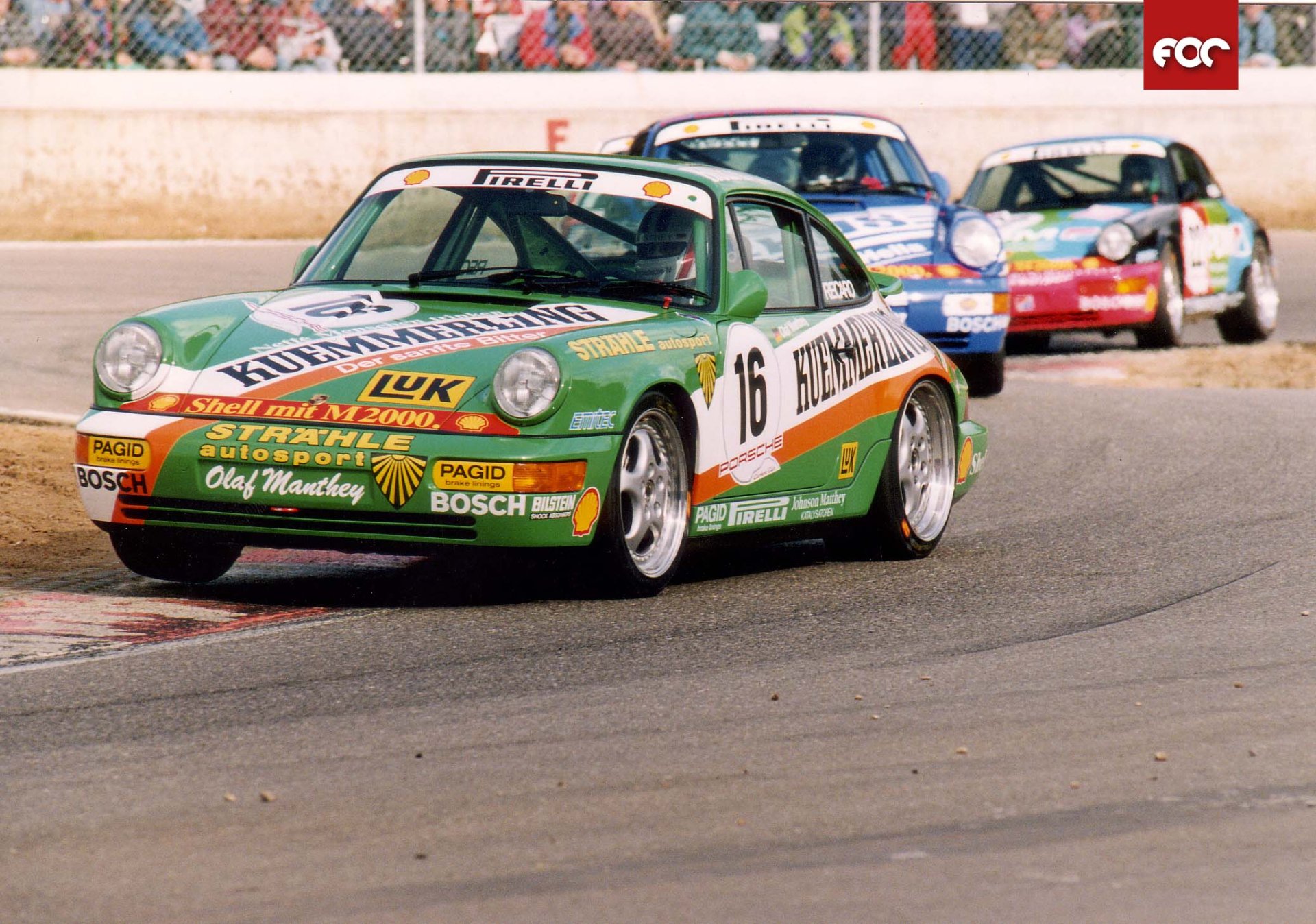 ก่อนที่ Olaf Manthey จะเริ่มต้นทำทีมแข่งของเขา Manthey เป็นชื่อที่ได้รับการนับถืออย่างมากในวงการรถแข่ง สิ่งที่มาพร้อมกับบุคลิกเคร่งขรึมบนใบหน้าเปื้อนหนวดของเขา คือการเป็นนักขับรถแข่งที่ถูกขนานนามว่าไร้ซึ่งความเกรงกลัว ด้วยฝีไม้ลายมือ และรูปแบบการขับขี่รถแข่งทัวริ่งคาร์ที่น่าอัศจรรย์ ในปี 1990 ขณะที่เขามีอายุ 35 ปี ช่างเทคนิคผู้เชี่ยวชาญนี้ได้ผันตัวเองมาอยู่หลังพวงมาลัยรถแข่งปอร์เช่ 911 เป็นครั้งแรกในชีวิต ความหลงใหลของเขาที่มีต่อรถสปอร์ตเครื่องยนต์วางหลัง ก่อตัวเพิ่มขึ้นเป็นลำดับนับจากนั้น: ภายในฤดูกาลเดียวกัน เขาได้กลายเป็นแชมเปี้ยนคนแรกในประวัติศาสตร์ของการแข่งขัน Porsche Carrera Cup และนี่คือการคว้าแชมป์ในรายการที่เขาลงแข่งขันเป็นครั้งแรก