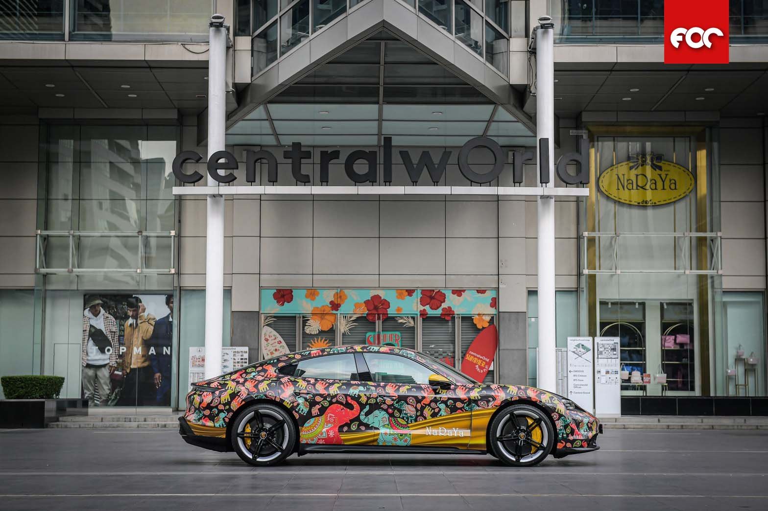 ปอร์เช่ ประเทศไทย โดย บริษัท เอเอเอส ออโต้ เซอร์วิส จำกัด (AAS) ผู้นำเข้าและตัวแทนจำหน่ายรถยนต์ปอร์เช่อย่างเป็นทางการแต่เพียงผู้เดียวในประเทศไทย ร่วมกับ นารายา (NaRaYa) แบรนด์สัญชาติไทยที่มีอัตลักษณ์อันโดดเด่นเเละได้รับการยอมรับในระดับนานาชาติ รังสรรค์ผลงานศิลปะไทยร่วมสมัยผ่านลวดลายที่ได้รับเเรงบันดาลใจมาจากเสน่ห์เเละเอกลักษณ์อันสื่อถึงวัฒนธรรมไทยบน ไทคานน์ เทอร์โบ เอส (Taycan Turbo S) รถสปอร์ตพลังงานไฟฟ้า 100% ทุกๆ รายละเอียดและลวดลายล้วนถูกสรรสร้างมาจากหัวใจดังเช่นลายช้างเครื่องทรงเเละผ้าไหมสีทองอร่ามปริวสไหวอันสื่อถึงพละกำลังเเละสมรรถนะของยนตรกรรมสปอร์ตเเห่งอนาคตที่จะไม่หยุดนิ่ง นับเป็นการผสม ผสานระหว่างเทคโนโลยีล้ำยุคเเละศิลปะการออกเเบบของไทยที่เพิ่มความโดดเด่นและคุณค่าให้กับยนตรกรรมสปอร์ตได้อย่างลงตัว