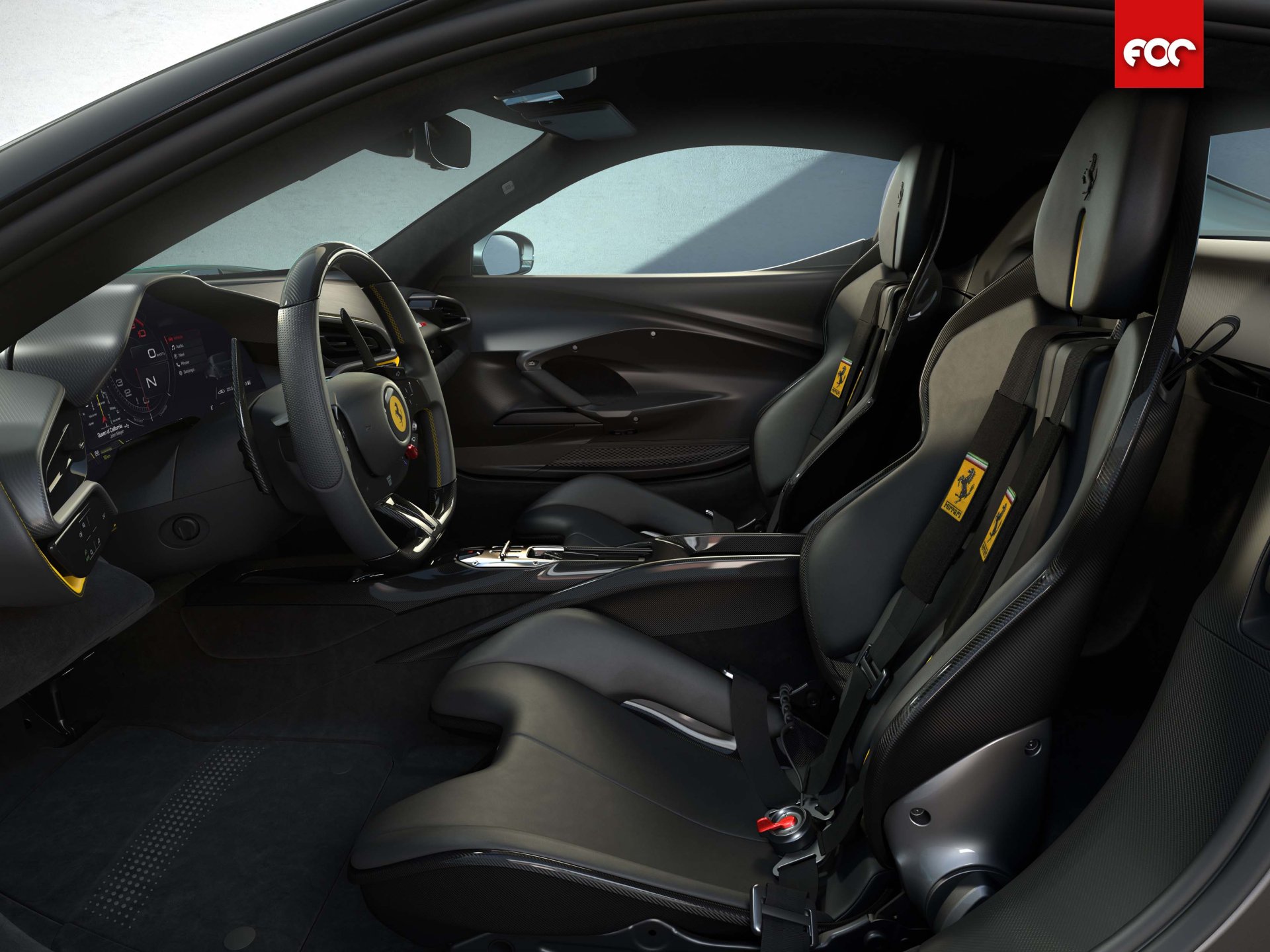ห้องโดยสารของ 296 GTB ยกระดับแนวคิดเรื่องความงดงามขององค์ประกอบฟังก์ชั่นต่างๆ ให้สูงขึ้นไปอีกขั้น เมื่อดับเครื่องยนต์หน้าจอในรถจะเป็นสีดำมืดสนิท ช่วยเติมภาพลักษณ์ที่เรียบง่ายให้กับห้องโดยสาร เบาะนั่งหุ้มด้วยหนังอิตาเลียนสุดพิเศษ และชิ้นส่วนของอุปกรณ์สำหรับการใช้งานใช้วัสดุที่ผลิตขึ้นด้วยเทคนิคขั้นสูง