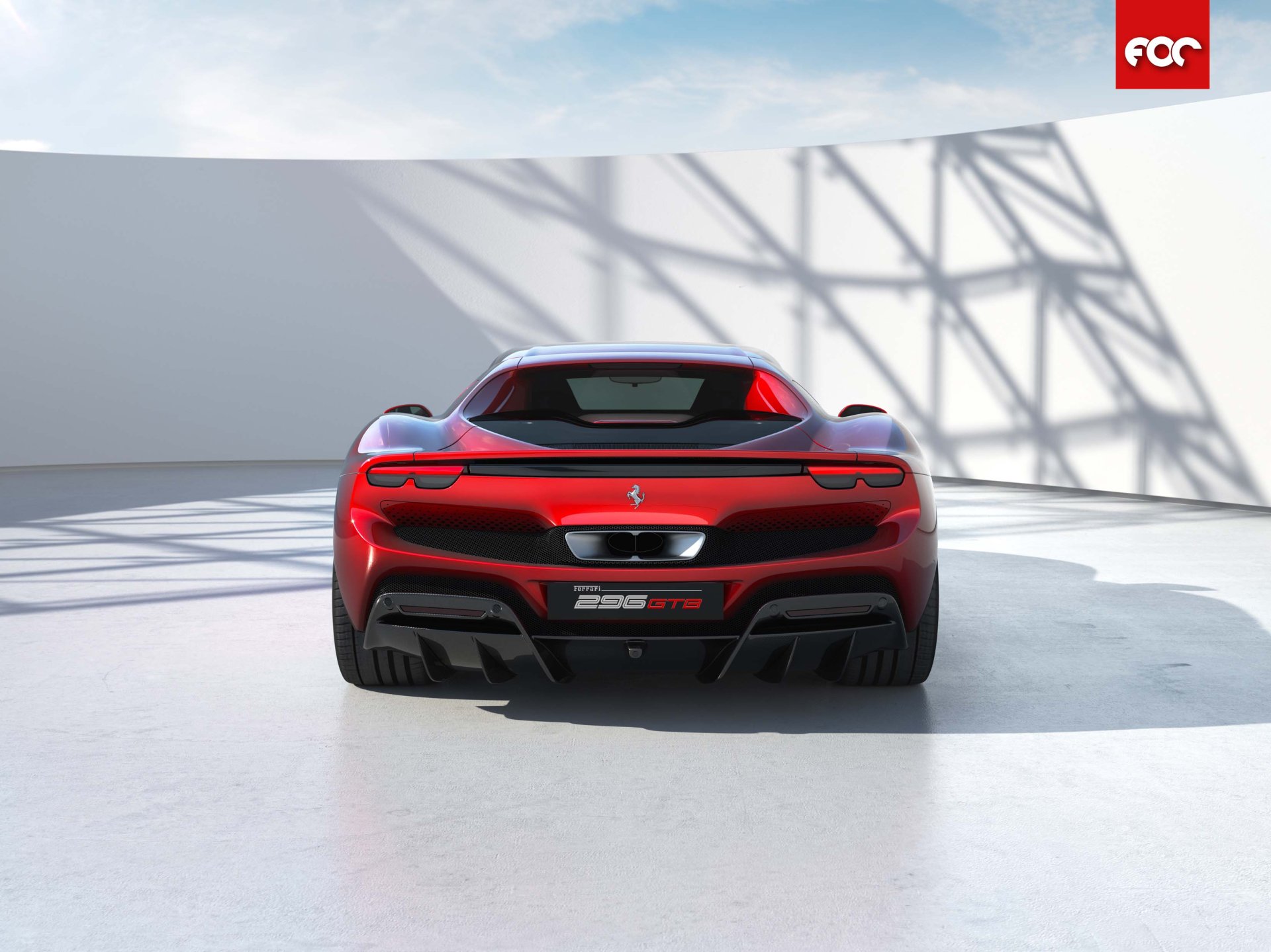 ความงดงามและสมรรถนะของ 296 GTB สามารถเห็นได้ชัดเจนทันที จากส่วนท้ายของรถ ความสัมพันธ์อันทรงพลังระหว่างตัวถังและห้องโดยสารถูกขับให้โดดเด่นด้วยเส้นตัดของหลังคา, โครงสร้างของเสาหลัง และความกำยำของโป่งล้อ ผลลัพธ์ที่ได้คือรถยนต์ขนาดกะทัดรัด ที่ห้องโดยสารถูกจัดวางไว้ท่ามกลางการโอบล้อมของสัดส่วนที่งดงาม
