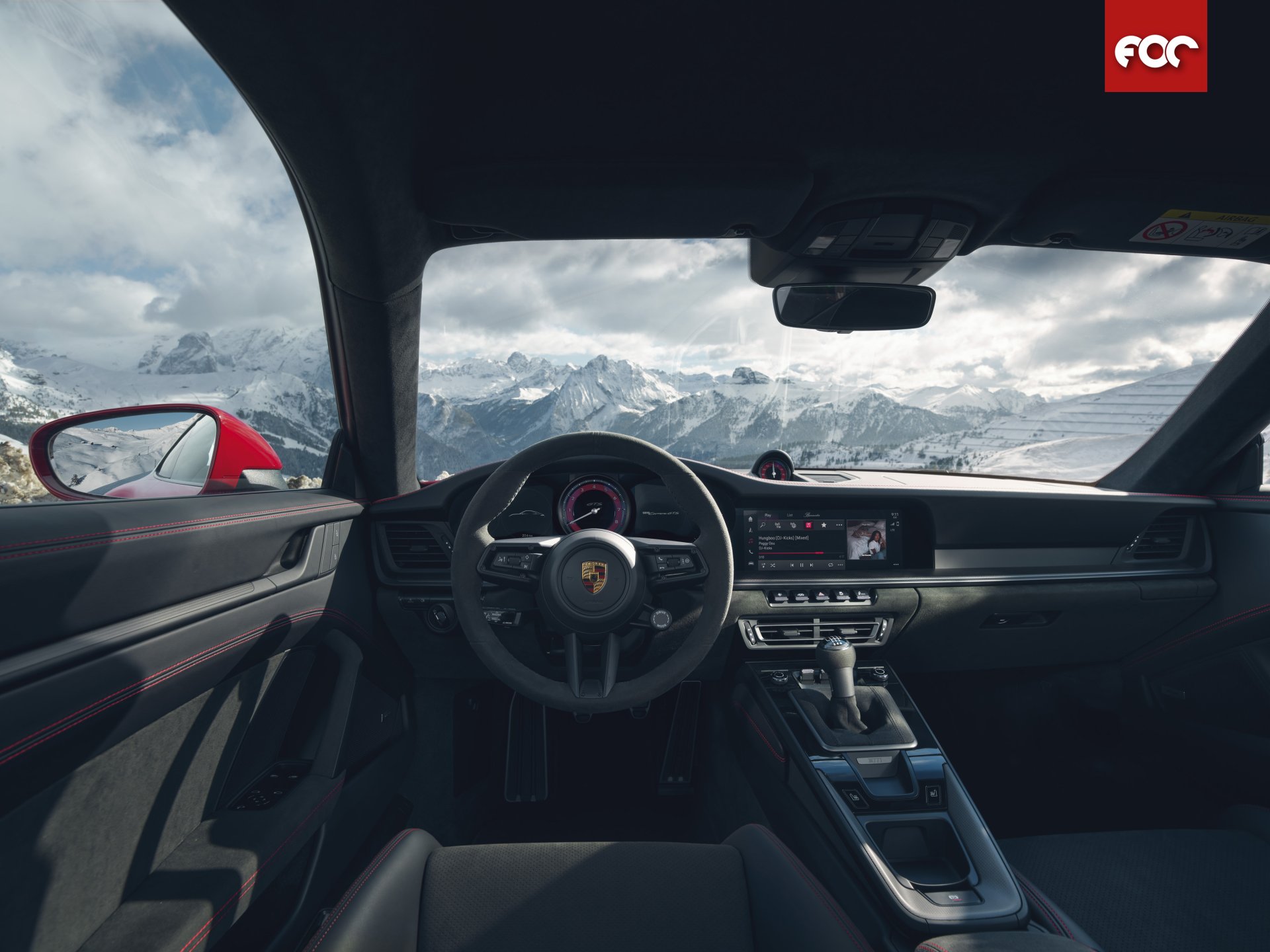 งานตกแต่งภายในห้องโดยสารวัสดุ Race-Tex สีดำ และเบาะนั่ง Sports Seats Plus เป็นมาตรฐานเน้นรายละเอียดความสปอร์ตอย่างต่อเนื่องจากภายนอกจรดภายใน สำหรับรุ่น จีทีเอส (GTS) พร้อมทั้งความสะดวกสบาย และความหรูหราสง่างาม คันเปลี่ยนเกียร์ธรรมดา 7 จังหวะซึ่งเป็นอุปกรณ์พิเศษ มีขนาดที่กระชับมือด้วยการลดความยาวลง 10 มิลลิเมตร ส่งผลให้สามารถเข้าเกียร์ในจังหวะต่างๆ ได้อย่างรวดเร็วง่ายดายเพียงพลิกข้อมือพวงมาลัยจีทีสปอร์ต (GT Sport) ที่มาพร้อมสวิตซ์เลือกโหมดการขับขี่ของชุดแต่งเพิ่มสมรรถนะ Sport Chrono package สั่งการผ่านแอปพลิเคชั่น Porsche Track Precision app และฟังก์ชันแสดงอุณหภูมิยางรถยนต์เป็นมาตรฐานติดตั้งเบาะนั่ง Sport Seats Plus ปรับไฟฟ้า 4 ทิศทาง เพื่อสร้างความมั่นใจขณะขับขี่และมอบความนุ่มนวลสะดวกสบายทุกการเดินทาง ลดปริมาณฉนวนซับเสียงรบกวนภายในห้องโดยสารลง เพื่อเพิ่มอรรถรสในการดื่มด่ำกับเสียงคำรามอันกระหึ่มกึกก้องของเครื่องยนต์ทรงพลัง