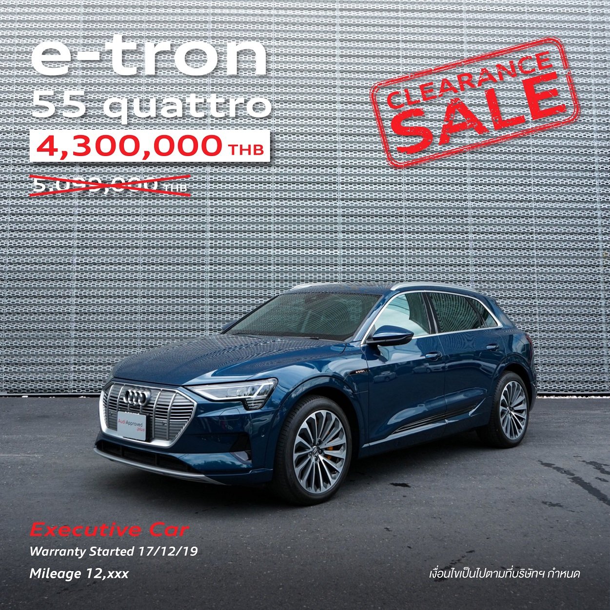อาวดี้ ประเทศไทย มั่นใจว่ากิจกรรม “Audi Online Clearance Sale” จะได้รับความสนใจอย่างล้นหลามจากลูกค้าที่ตั้งตารอแฟลชดีลพิเศษจากแคมเปญนี้ ซึ่งรถทดลองขับ รถผู้บริหารป้ายแดงไมล์น้อย และรถยูสคาร์ที่นำมาจัดรายการในรอบนี้ล้วนเป็นรุ่นยอดฮิต ติดอันดับขายดี ในราคาสุดคุ้มค่า เริ่มต้นเพียงคันละ 1.65 ล้านบาท นอกจากนี้ยังได้นำยนตรกรรมพลังงานไฟฟ้า Audi e-tron 55 quattro ป้ายแดงไมล์น้อยมาร่วมรายการด้วย พร้อมหั่นราคาสุดๆ เหลือเพียงราคา 4.3 ล้านบาท จากราคาปกติ 5.099 ล้านบาท