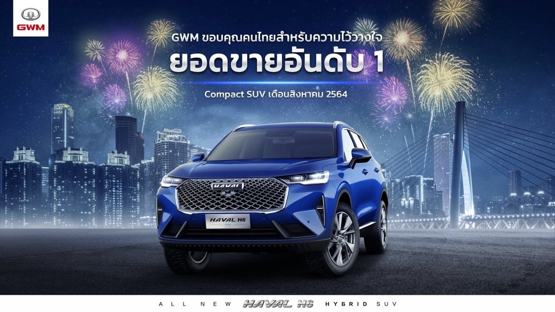 กรุงเทพฯ – 13 กันยายน 2564 – เกรท วอลล์ มอเตอร์ ขึ้นครองแชมป์อันดับ 1 ของเซคเมนท์รถยนต์คอมแพคเอสยูวี ด้วยยอดขายและส่งมอบ All New HAVAL H6 Hybrid SUV กว่า 408 คัน ในเดือนสิงหาคม พ.ศ.2564 คิดเป็นส่วนแบ่งทางการตลาด 34.3 เปอร์เซ็นต์ พร้อมเดินหน้าส่งมอบประสบการณ์อัจฉริยะเหนือระดับและบริการหลังการขายเต็มรูปแบบให้กับผู้บริโภคชาวไทย ในขณะเดียวกัน ยอดขายโดยรวมของ เกรท วอลล์ มอเตอร์ ในตลาดโลกในเดือนสิงหาคมและตลอดทั้งปีนี้ก็เติบโตอย่างต่อเนื่องเช่นกัน