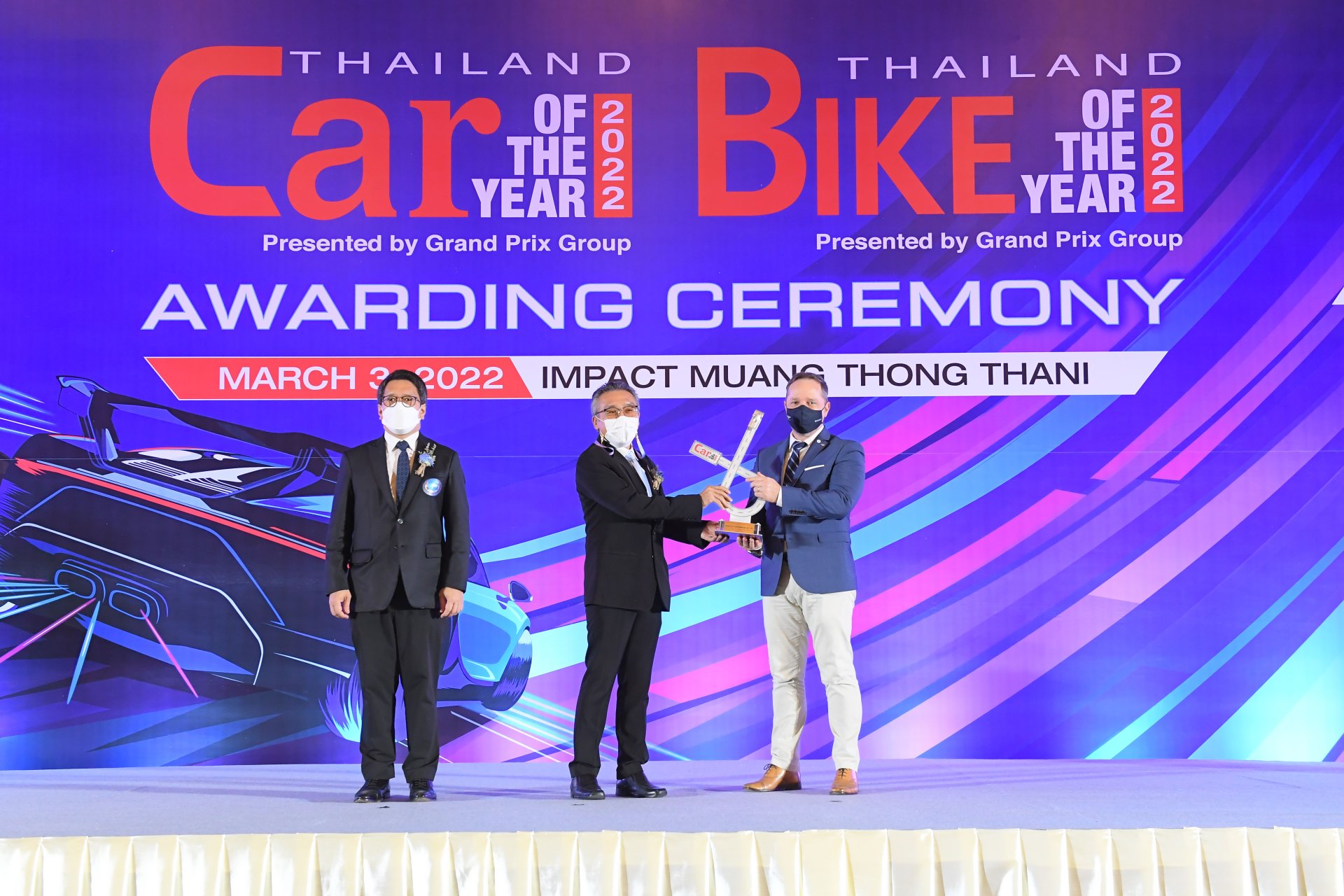 เบนท์ลีย์ แบงค็อก โดย บริษัท เอเอเอส ออโต้ เซอร์วิส จำกัด ผู้นำเข้าและตัวแทนจำหน่ายรถยนต์เบนท์ลีย์อย่างเป็นทางการแต่เพียงผู้เดียวในประเทศไทย โดย มร. เดวิด แจ็คสัน กรรมการผู้จัดการ เบนท์ลีย์ แบงค็อก ขึ้นรับรางวัลรถยนต์ยอดเยี่ยมแห่งปี 2022 ในสาขา “BEST SUPERCAR OVER 3,500 c.c.” สำหรับรถยนต์เบนท์ลีย์รุ่น CONTINENTAL GT V8 จาก คุณภานุวัฒน์ ตริยางกูรศรี รองปลัดกระทรวงอุตสาหกรรม ประธานในพิธีมอบรางวัลในงาน Thailand Car and Bike of the Year 2022 จัดขึ้นโดย บริษัท กรังด์ปรีซ์ อินเตอร์เนชั่นแนล จำกัด (มหาชน) ณ ห้องรอยัล จูบิลี่ บอลรูม อาคารชาเลนเจอร์ ศูนย์แสดงสินค้าและการประชุม อิมแพ็ค เมืองทองธานี เมื่อวันที่ 3 มีนาคมที่ผ่านมา