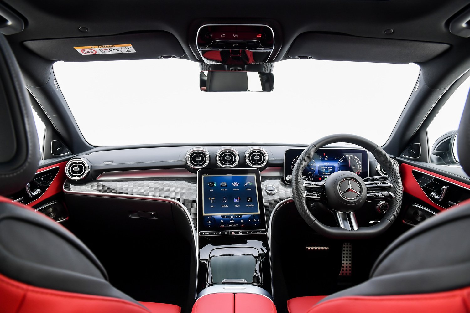 “Mercedes-Benz C 350 e AMG Dynamic” คือรถยนต์ปลั๊กอินไฮบริดรุ่นใหม่ในรุ่น C-Class ที่มาพร้อมสมรรถนะการขับขี่สุดเร้าใจ ด้วยขุมพลังของเครื่องยนต์เบนซินขนาด 1,999 ซีซี ผสานกับมอเตอร์ไฟฟ้าที่อาศัยพลังงานจากแบตเตอรี่ขนาด 25.4 kWh ที่ได้รับการพัฒนาขึ้นใหม่เป็น เจเนอเรชันที่ 4 ให้กำลังสูงสุดรวม 313 แรงม้า และแรงบิดสูงสุดรวม 550 นิวตันเมตร โดยรถยนต์ปลั๊กอินไฮบริดคันนี้สามารถขับขี่ด้วยพลังไฟฟ้าเพียงอย่างเดียวได้ไกลถึง 100 กิโลเมตร และทำความเร็วสูงสุดจากโหมดการขับขี่แบบพลังไฟฟ้าล้วน (EL) ได้ถึง 140 กิโลเมตร/ชั่วโมง ในการชาร์จพลังงานไฟฟ้า หากเป็นการชาร์จด้วยไฟฟ้ากระแสตรง (DC charger) จะใช้เวลาเพียง 30 นาทีก็สามารถชาร์จได้เต็ม 100% ส่วนการชาร์จด้วยไฟฟ้ากระแสสลับ (AC charger) จะใช้เวลาราว 2 ชั่วโมง ซึ่งด้วยความสะดวกในการเลือกใช้งานได้ทั้งสองระบบ ประกอบกับการชาร์จพลังไฟฟ้าด้วยเวลาไม่นาน หากเป็นการขับขี่ภายในเมือง ผู้ใช้สามารถใช้รถยนต์คันนี้ได้อย่างสะดวกสบายด้วยพลังงานไฟฟ้าเพียงอย่างเดียว