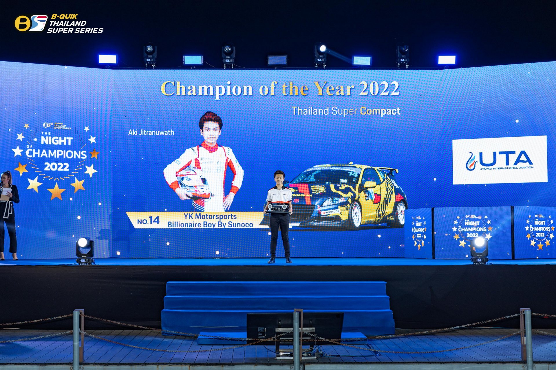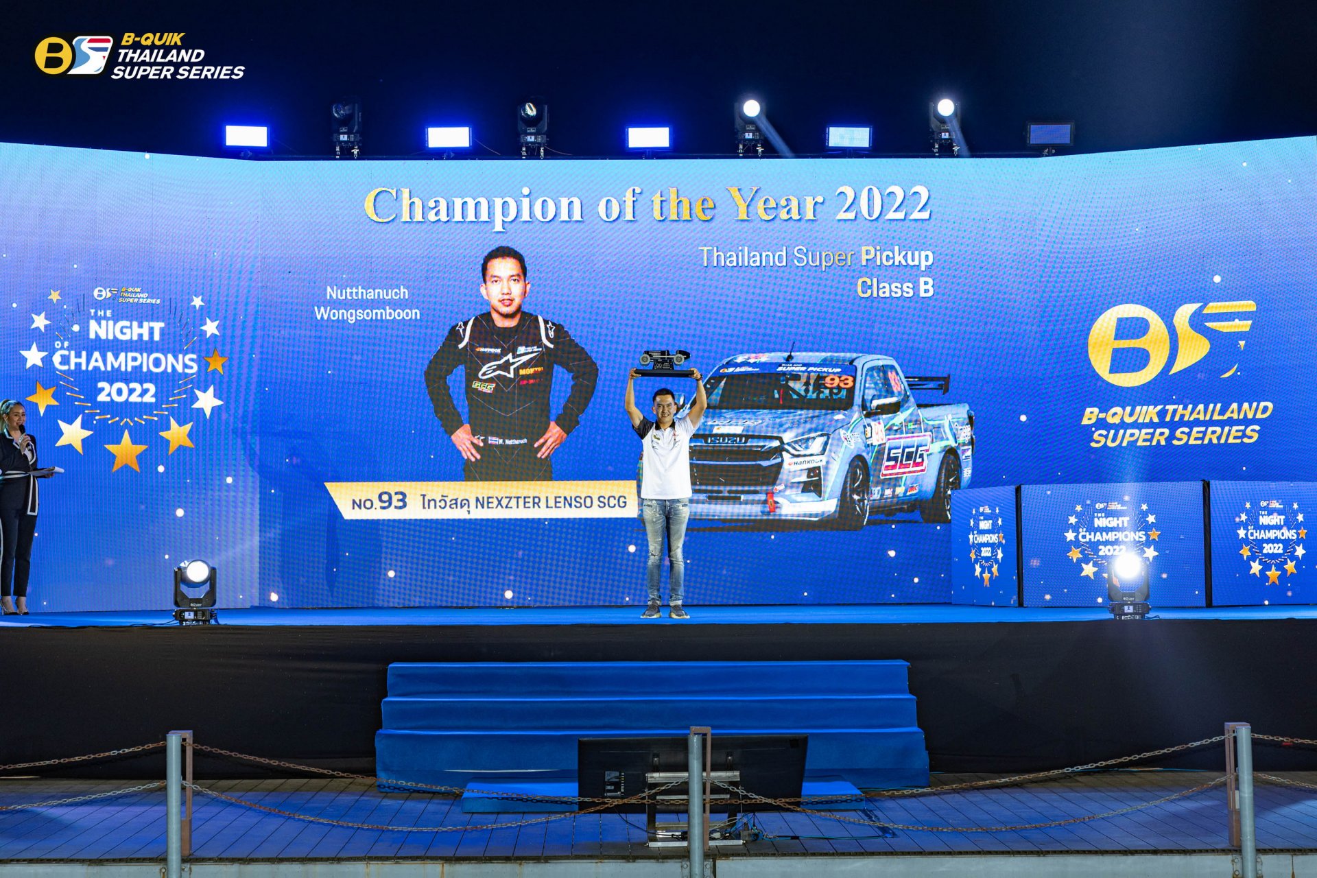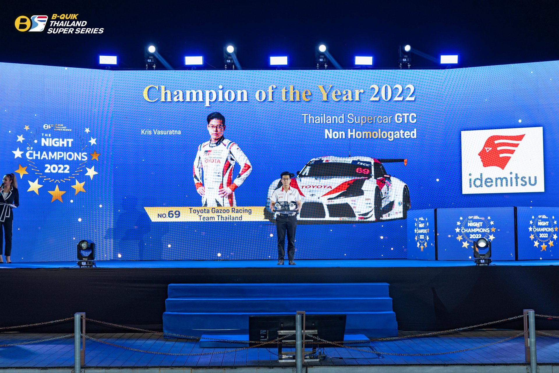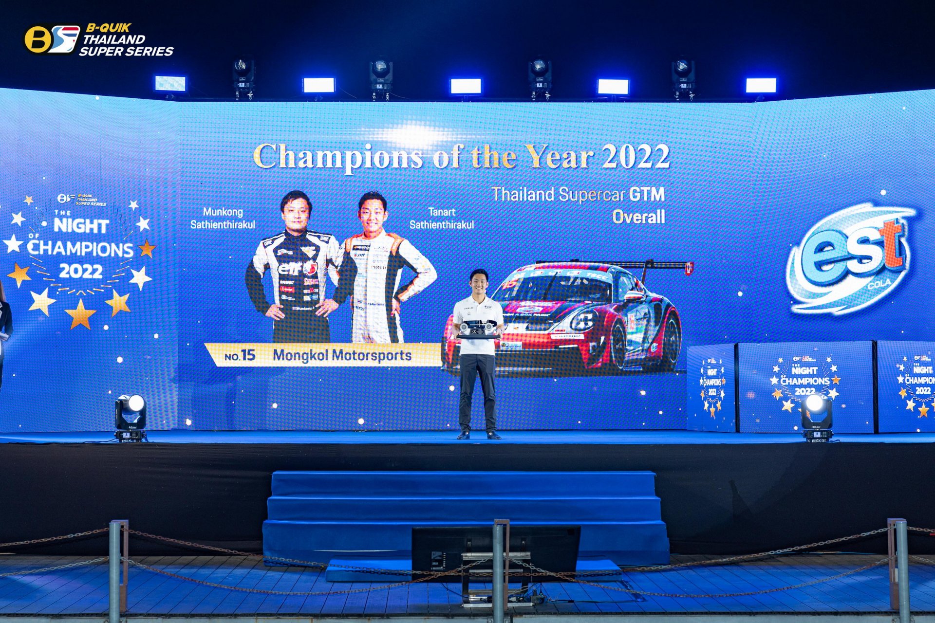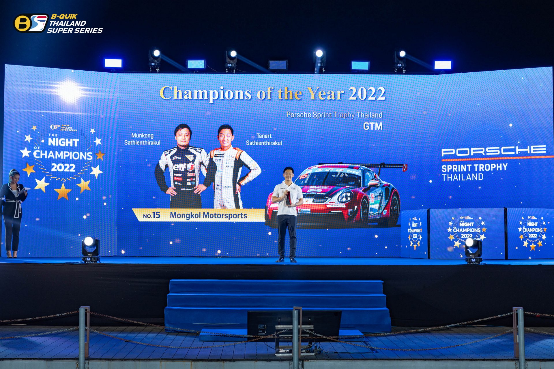 บริษัท เรซซิ่ง สปิริต จํากัด ผู้ดําเนินการจัดการแข่งขันรถยนต์ทางเรียบภายใต้ชื่อรายการ “B-Quik Thailand Super Series 2022” จัดงานใหญ่ The Night of Champions 2022 ส่งท้ายฤดูกาล พร้อมประกาศผลรางวัลอันทรงเกียรติ โดยมีคุณสนธยา คุณปลื้ม ประธานจัดการแข่งขัน B-Quik Thailand Super Series ขึ้นเป็นประธานในพิธี