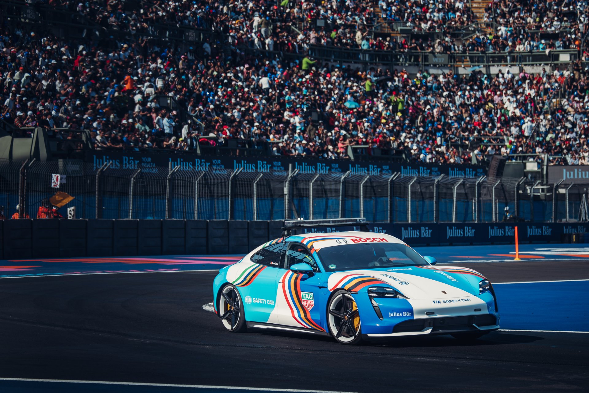 ปอร์เช่ยึดมั่นเรื่องความปลอดภัยในการแข่งขัน Formula E โดยส่งรถยนต์พลังไฟฟ้า Taycan Turbo S ทำหน้าที่ safety car อีกครั้งในฤดูกาลนี้ ซึ่งย้ำถึงความสำคัญของ Formula E ต่อ Porsche Motorsport ด้วยความสามารถในการขับขี่ และกำลังสูงสุดที่ 560 kW (761 PS) ทำให้รถรุ่นท็อปในไลน์ Taycan เป็นตัวเลือกที่เหมาะสมที่สุดสำหรับ safety car ในซีรีย์รถแข่งพลังงานไฟฟ้ารายการแรกของโลก งานสีที่สะดุดตาเป็นการรวมสีของทีมที่ร่วมแข่งขันทั้งหมด 11 ทีม รวมถึงทีมใน FIA และ Formula E ขณะที่การออกแบบแสดงถึงความมุ่งมั่นร่วมกันที่มีต่ออนาคตของการแข่งรถพลังงานไฟฟ้า และค่านิยมทางสังคม เช่น ความหลากหลาย และการอยู่ร่วมกัน
