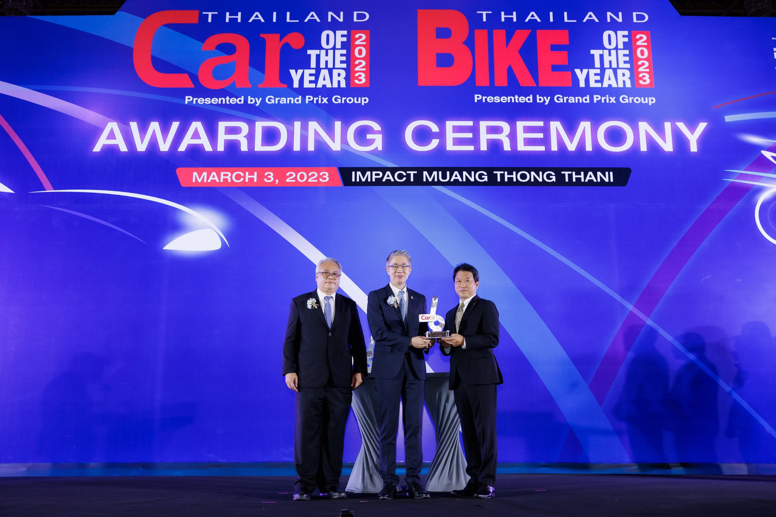พิธีมอบรางวัลรถยนต์ยอดเยี่ยมแห่งปี 2566 ครั้งนี้ มี มร. ทาดาชิ มิอุระ ประธานบริหาร พร้อมด้วยคณะผู้บริหารระดับสูงจาก บริษัท มาสด้า เซลส์ (ประเทศไทย) จำกัด เป็นตัวแทนรับมอบรางวัลอันทรงเกียรติจาก ดร. ณัฐพล รังสิตพล ปลัดกระทรวงอุตสาหกรรม ประธานในพิธีฯ ผู้มอบรางวัล พร้อมด้วย นายอโณทัย เอี่ยมลำเนา ประธานจัดงาน Car & Bike of the Year 2023 และ นายจาตุรนต์ โกมลมิศร์ รองประธานจัดงาน บางกอก อินเตอร์เนชั่นแนล มอเตอร์ โชว์ โดยจัดขึ้นที่ ห้อง รอยัล จูบิลี่ ชาเลนเจอร์ ฮอลล์ ศูนย์แสดงสินค้าและการประชุม อิมแพ็ค เมืองทองธานี