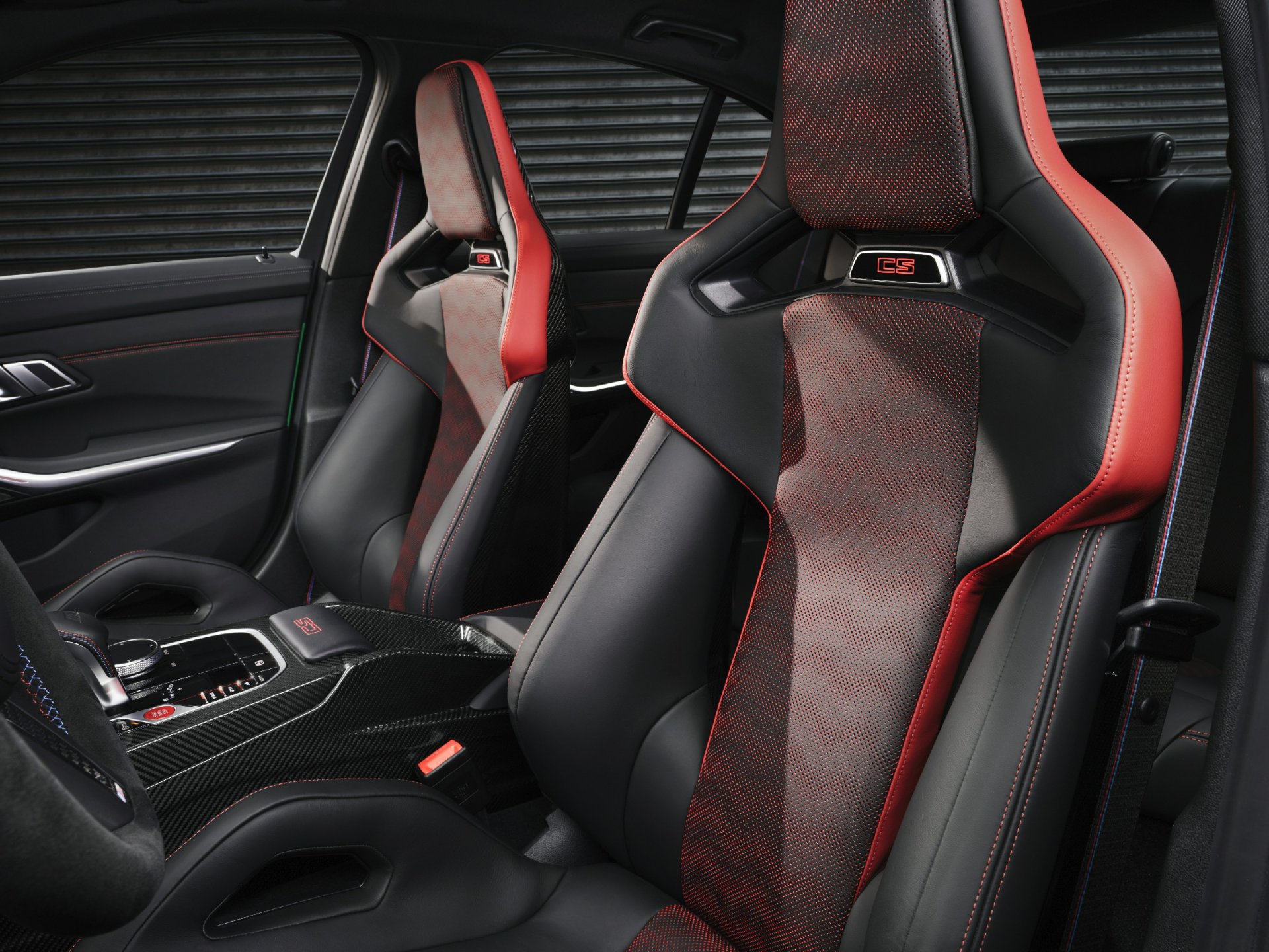 ภายในห้องโดยสารของบีเอ็มดับเบิลยู M3 CS มาในดีไซน์แบบรถสปอร์ตที่ได้รับการออกแบบโดยคำนึงถึงสุนทรียภาพในการขับขี่และสมรรถนะขั้นสูงสุด เบาะนั่ง M Carbon ทรง bucket seat จากหนัง Merino มาในสีดำตัดแดง พร้อมลวดลายการเย็บแบบพิเศษ แผงประตูด้านหน้าและด้านหลังบุด้วยหนังสีดำ แผงคอนโซลกลางที่ทำจากคาร์บอนไฟเบอร์ตกแต่งด้วยตัวอักษร CS สีแดง นอกจากนี้ บีเอ็มดับเบิลยู M3 CS ใหม่ยังมาพร้อม เข็มขัดนิรภัยดีไซน์ M ปักสัญลักษณ์ 3 สีของ BMW M กาบประตูสลักตัวอักษร M3 CS หลังคาภายในดีไซน์ M สี Anthracite และพวงมาลัยหุ้ม Alcantara ดีไซน์ M พร้อมแป้นเปลี่ยนเกียร์คาร์บอนไฟเบอร์ และแถบสีแดงบริเวณกึ่งกลางพวงมาลัย