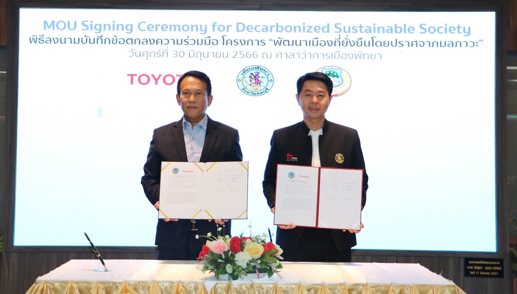 โตโยต้าและเมืองพัทยาร่วมลงนามความร่วมมือ “โครงการพัฒนาเมืองต้นแบบที่ยั่งยืนปราศจากมลภาวะ” ยกระดับการเดินทางและระบบขนส่งสาธารณะในเมืองพัทยาโดยใช้รถยนต์พลังงานสะอาด เพื่อเป็นส่วนหนึ่งในการมุ่งสู่เป้าหมายการสร้างความเป็นกลางทางคาร์บอน