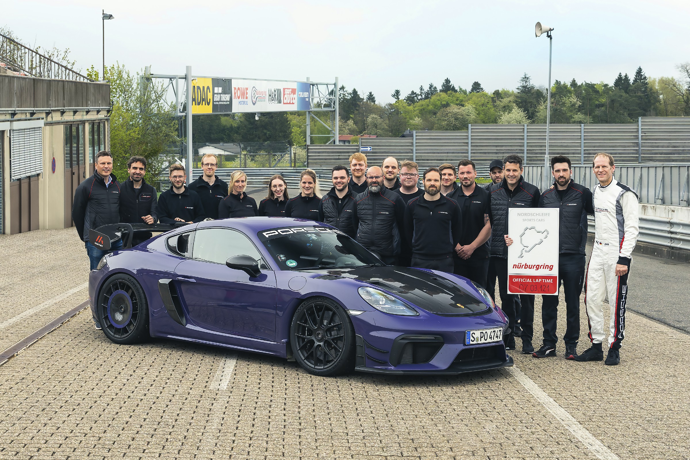 718 เคย์แมน จีที4 อาร์เอส (718 Cayman GT4 RS) ที่พร้อมชุดแต่งมานทาย (Manthey) สามารถแสดงศักยภาพอย่างเต็มที่บนสนาม Nürburgring Nordschleife ซึ่งเป็นมาตรฐานต้นตำรับสำหรับรถสปอร์ตของปอร์เช่ โดยมี Jörg Bergmeister แบรนด์แอมบาสเดอร์ของปอร์เช่เป็นผู้ควบคุมรถ รถสปอร์ต GT รุ่นดัดแปลงนี้วิ่งผ่านระยะทาง 20.8 กิโลเมตรใน Eifel ที่อุณหภูมิ 18 องศาเซลเซียส ภายใต้ท้องฟ้ามืดครึ้มใช้ระยะเวลาเพียง 7:03.121 นาที ซึ่งเร็วกว่า 718 เคย์แมน จีที4 อาร์เอส (718 Cayman GT4 RS) ที่ผลิตในซีรีส์เดียวกันเมื่อปีก่อนหน้าถึง 6.179 วินาที รถทั้ง 2 คันติดตั้งยาง Michelin Pilot Sport Cup 2 R ที่เป็นอุปกรณ์เสริม เวลารอบได้รับการรับรองโดยผู้มีอำนาจและเป็นพยาน ณ สถานที่นั้น