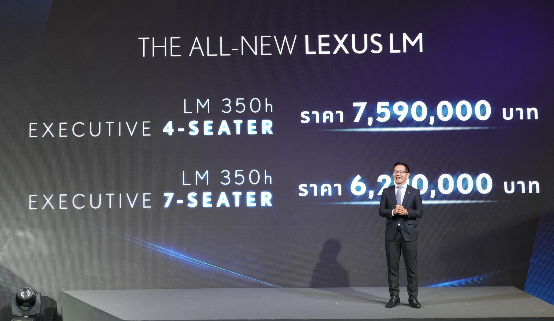 “All-New LEXUS LM จะมาสร้างประวัติศาสตร์ครั้งสำคัญของเลกซัสในประเทศไทย รถรุ่นนี้ได้รับการตอบรับอย่างล้นหลาม และเป็นรถรุ่นหลักที่มียอดขายลำดับต้นๆ ในกลุ่มรถ Minivan ระดับหรู โดย LM ย่อมาจาก “Luxury Mover” สื่อถึงความตั้งใจในการพัฒนารถรุ่นนี้เพื่อตอบสนองความต้องการใช้งานของลูกค้า ที่ต้องการใช้รถ MPV แบบมีคนขับ วันนี้เรามีความยินดีที่จะแนะนำ “All-New LEXUS LM” ด้วยการออกแบบของเลกซัสเจเนอเรชันใหม่ทำให้มีเอกลักษณ์เฉพาะ นำเสนอทั้งความคล่องแคล่ว ความหรูหรา และความสง่างาม พร้อมที่จะพาทุกท่านไปสู่อีกขั้นของ “Omotenashi” สร้างสภาพแวดล้อมอันผ่อนคลาย ราวกับว่าอยู่ภายในห้องสวีทของโรงแรมสุดหรู หรือห้องทำงานเคลื่อนที่ ยิ่งไปกว่านั้น เอกลักษณ์การขับขี่เฉพาะแบบเลกซัส ยังได้ถูกผสานเข้ากับ The All-New LM นี้ ผ่านพลวัตขับเคลื่อนอันทรงพลังดั่งใจผู้ขับขี่ ความรู้สึกมั่นใจในความปลอดภัย และความพิถีพิถัน ที่ถ่ายทอดไปยังผู้โดยสารตอนหลัง ขอเชิญท่านร่วมสัมผัส All-New LM ที่จะมอบสภาพแวดล้อมที่เอื้อต่อการผ่อนคลายทั้งร่างกาย และจิตใจ และพื้นที่สำหรับแรงบันดาลใจเชิงบวก ทั้งด้านความคิด และการกระทำให้กับทุกท่าน และขอให้เพลิดเพลินไปกับ “Omotenashi” ที่เราตั้งใจมอบให้กับทุกท่านในวันนี้” มร.ยามาชิตะ กล่าวเปิดตัวเลกซัส LM ใหม่ อย่างเป็นทางการด้วยความภาคภูมิใจ