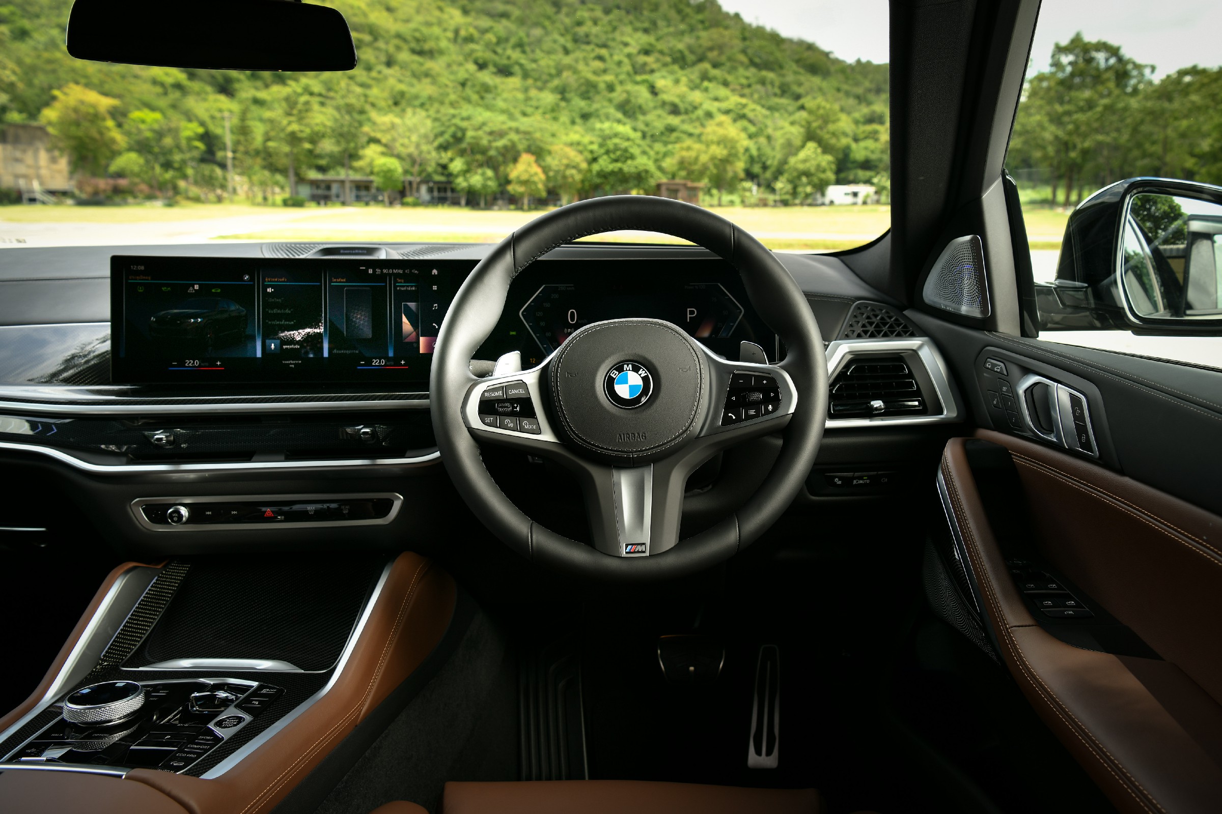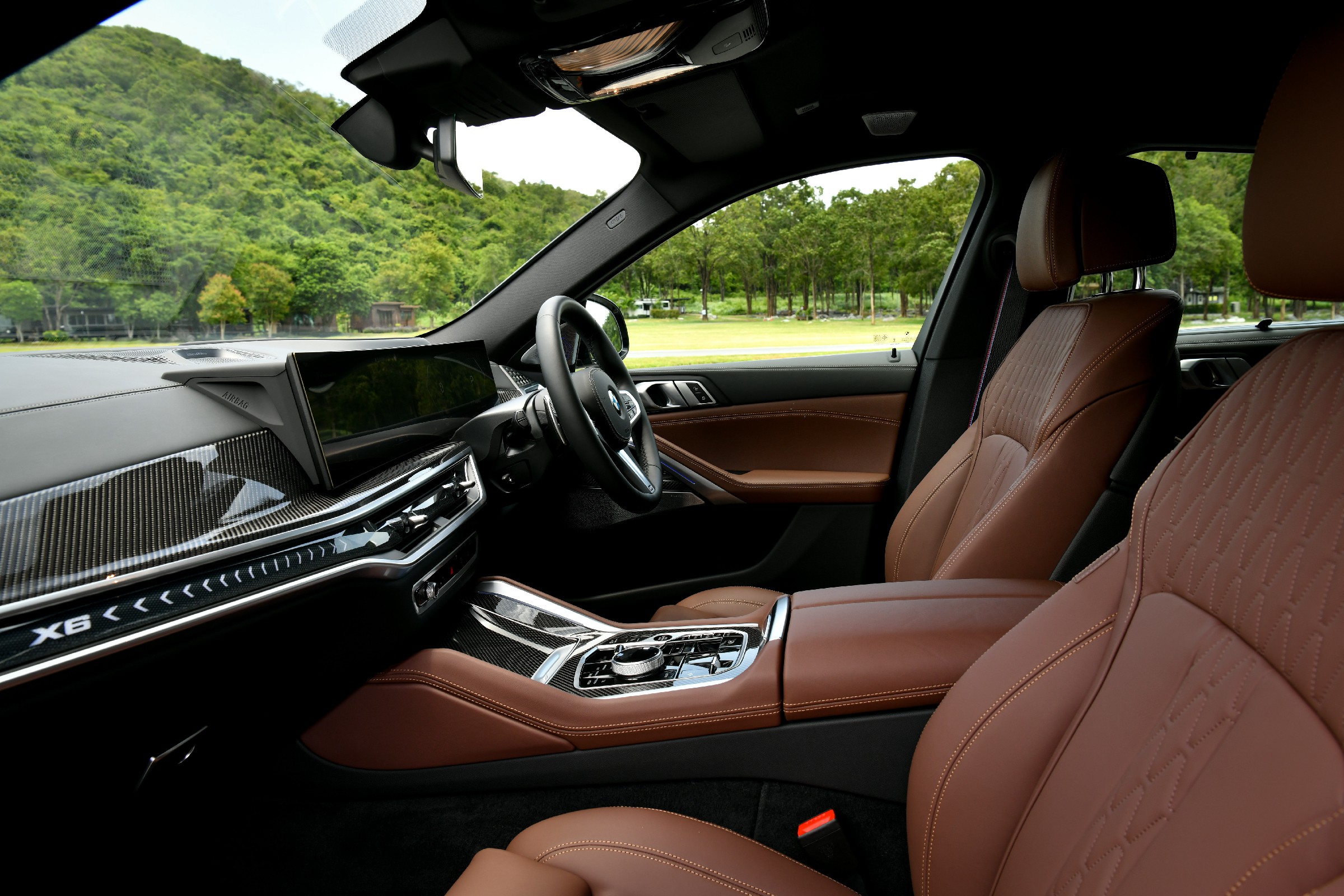 ภายในห้องผู้โดยสารของบีเอ็มดับเบิลยู X6 xDrive40i M Sport ใหม่ มอบประสบการณ์การขับขี่อันเหนือชั้นผ่านการตีความการออกแบบภายในเน้นผู้ขับขี่ที่เป็นเอกลักษณ์ของบีเอ็มดับเบิลยู ด้านแพ็คเกจชุดแต่ง M Sport Pro เสริมมาดความปราดเปรียวให้กับรถยนต์รุ่นนี้ มาพร้อมพวงมาลัยหุ้มหนังและเข็มขัดนิรภัยดีไซน์ M ภายในยังตกแต่งดีไซน์ M ด้วยวัสดุคาร์บอนไฟเบอร์ เพดานหลังคาภายในดีไซน์ M สี Anthracite เสริมความหรูหราไปอีกขั้นกับภายในซึ่งตกแต่งด้วยผลึกแก้ว 'CraftedClarity' และม่านบังแดดประตูหลัง สำหรับอุปกรณ์เสริมไฮไลท์อื่น ๆ ได้แก่ ฟังก์ชั่นสั่งงานระบบ iDrive ด้วยการเคลื่อนไหวมือ BMW Gesture Control หลังคากระจกแบบ Panorama Sky Lounge ระบบเสียงรอบทิศทางคุณภาพสูง Bowers & Wilkins Diamond และระบบ Travel & Comfort ใหม่ล่าสุด