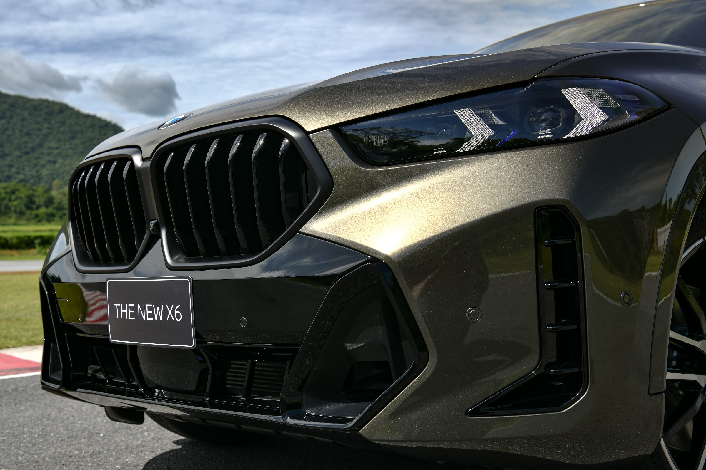 บีเอ็มดับเบิลยู X6 xDrive40i M Sport ใหม่ มาพร้อมกับดีไซน์อันเฉียบคมดุดันและภาพลักษณ์ที่สะท้อนถึงความมั่นใจ ทรงอำนาจและความแข็งแกร่ง บีเอ็มดับเบิลยู X6 โฉมใหม่นี้มาพร้อมกับความยาวตัวรถที่ 4,960 มิลลิเมตร ความกว้างที่ 2,004 มิลลิเมตร และความสูงที่ 1,700 มิลลิเมตร ผสมผสานสัดส่วนที่ยืดออกอย่างปราดเปรียวเข้ากับภาพลักษณ์บึกบึนทรงพลังยิ่งขึ้น มาพร้อมชุดไฟหน้าเพรียวบางพร้อมองค์ประกอบไฟส่องสว่างเวลากลางวันทรงลูกศรในดีไซน์ใหม่ ระบบไฟหน้า LED อัจฉริยะ (Adaptive LED) ระบบปรับการทำงานไฟสูงอัตโนมัติ (High-beam Assistant) และกระจังหน้า BMW kidney 'Iconic Glow' สร้างรูปลักษณ์อันสะดุดตาและเป็นเอกลักษณ์ของแบรนด์ ภายนอกโดดเด่นด้วยชุดแต่ง M สีดำเงา ชุดตกแต่งด้วยวัสดุสีดำเงา และโคมไฟหน้าตกแต่งดีไซน์ M สีดำ