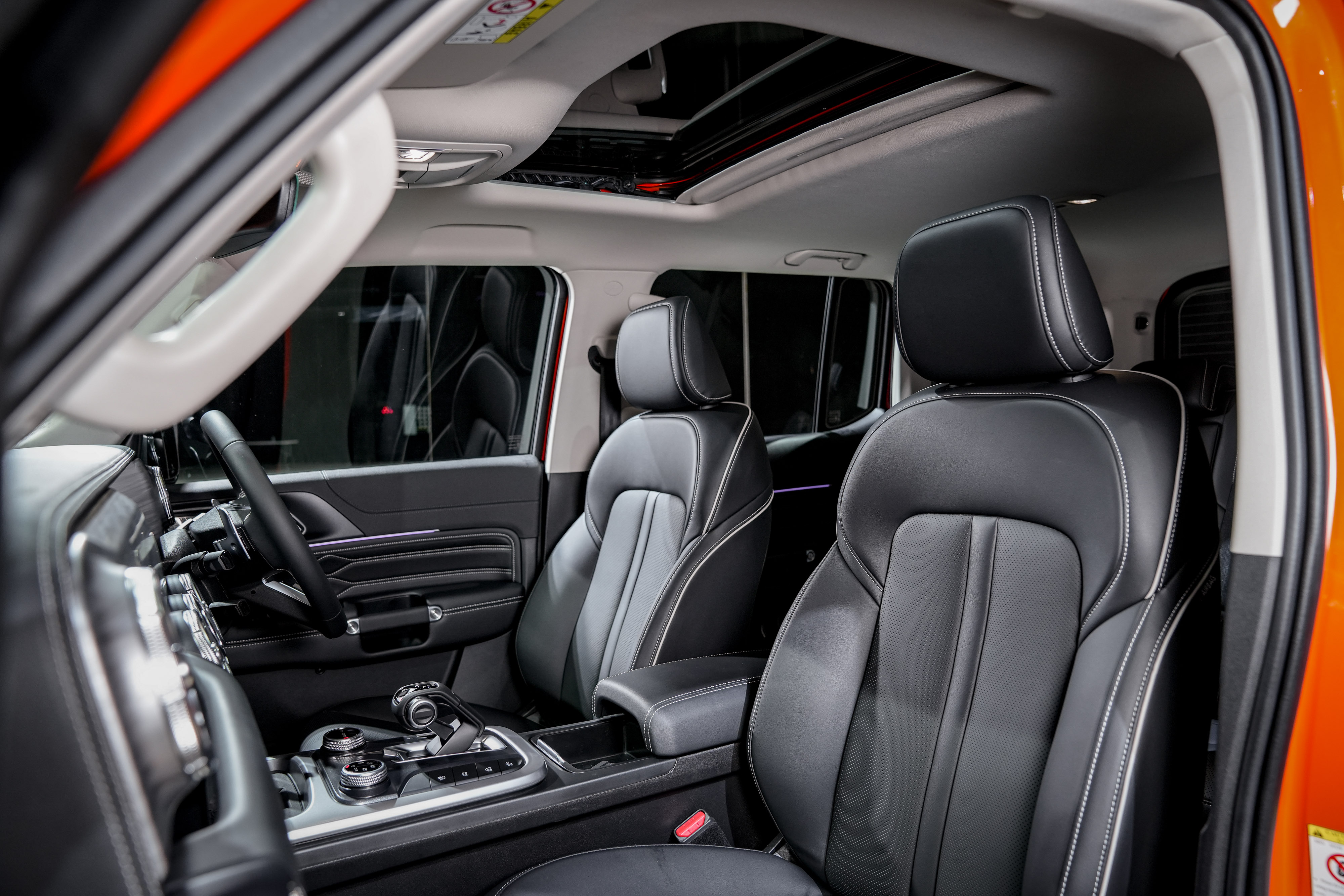 All New GWM TANK 300 HEV ออกแบบภายในสไตล์ Premium off-road ที่ให้ความรู้สึกหรู ทันสมัย กว้างขวาง สะดวกสบาย และใส่ใจในทุกรายละเอียด ด้วยระบบปรับอากาศอัตโนมัติด้านหน้าแยกอิสระซ้ายและขวา เบาะหนัง NAPPA ลำโพง Infinity พร้อมซับวูฟเฟอร์ และการตกแต่งห้องโดยสารด้วย Ambient Light ให้ความเพลิดเพลินในทุกช่วงเวลาการขับขี่