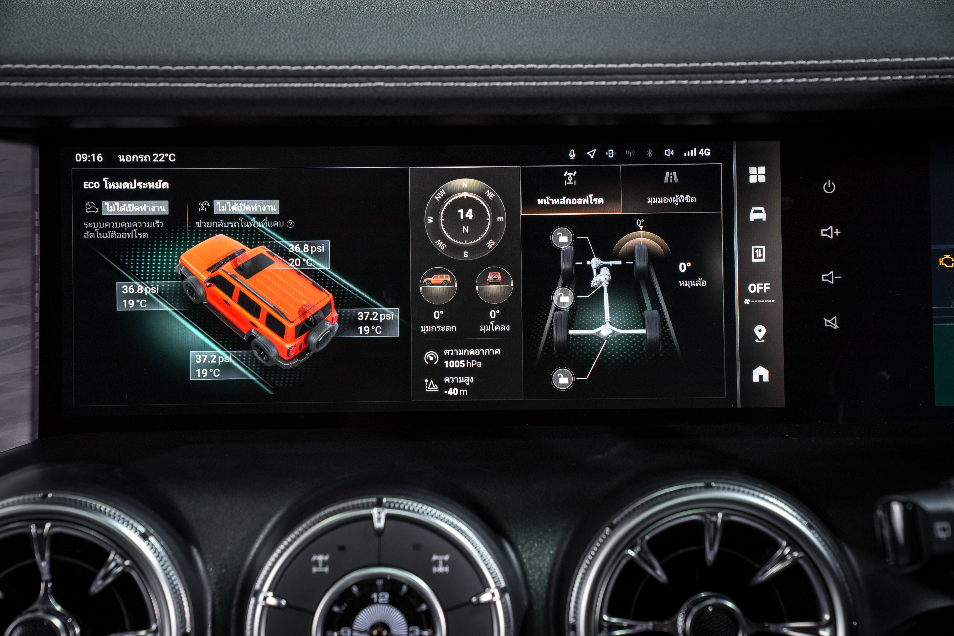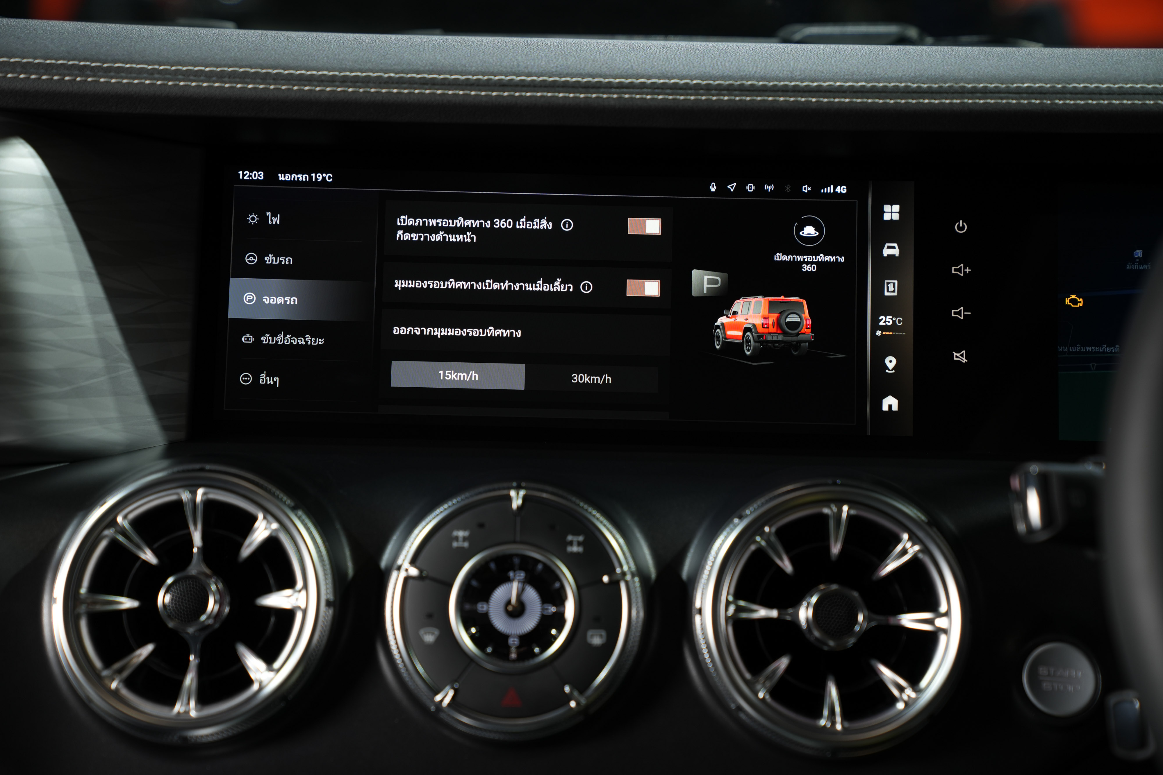 แผงควบคุมที่คอนโซลกลาง พร้อมฟังก์ชันควบคุมการขับขี่แบบออฟโรด ช่วยให้การปรับเปลี่ยนการขับขี่ในสถานการณ์ต่าง ๆ เป็นเรื่องง่าย