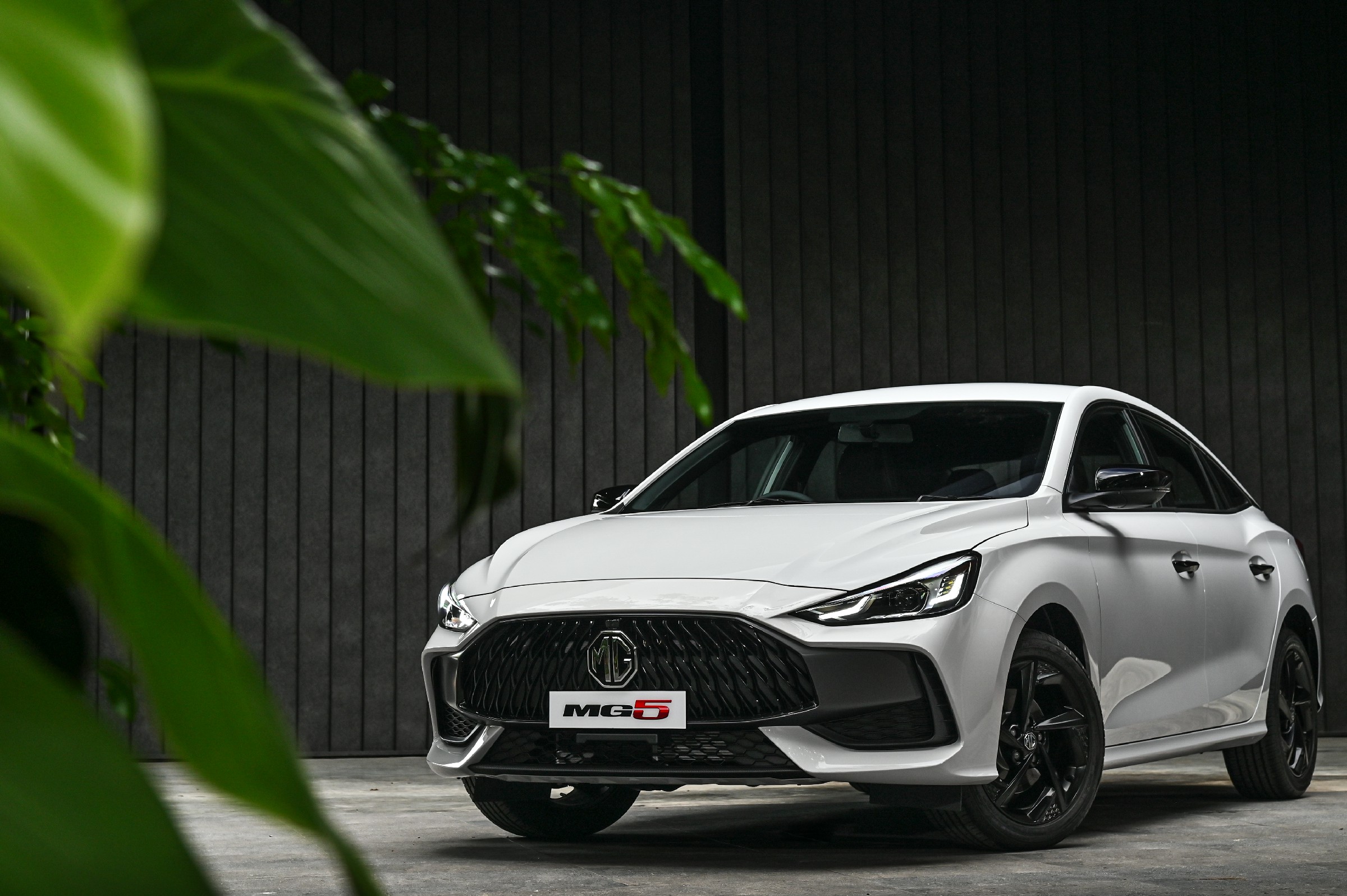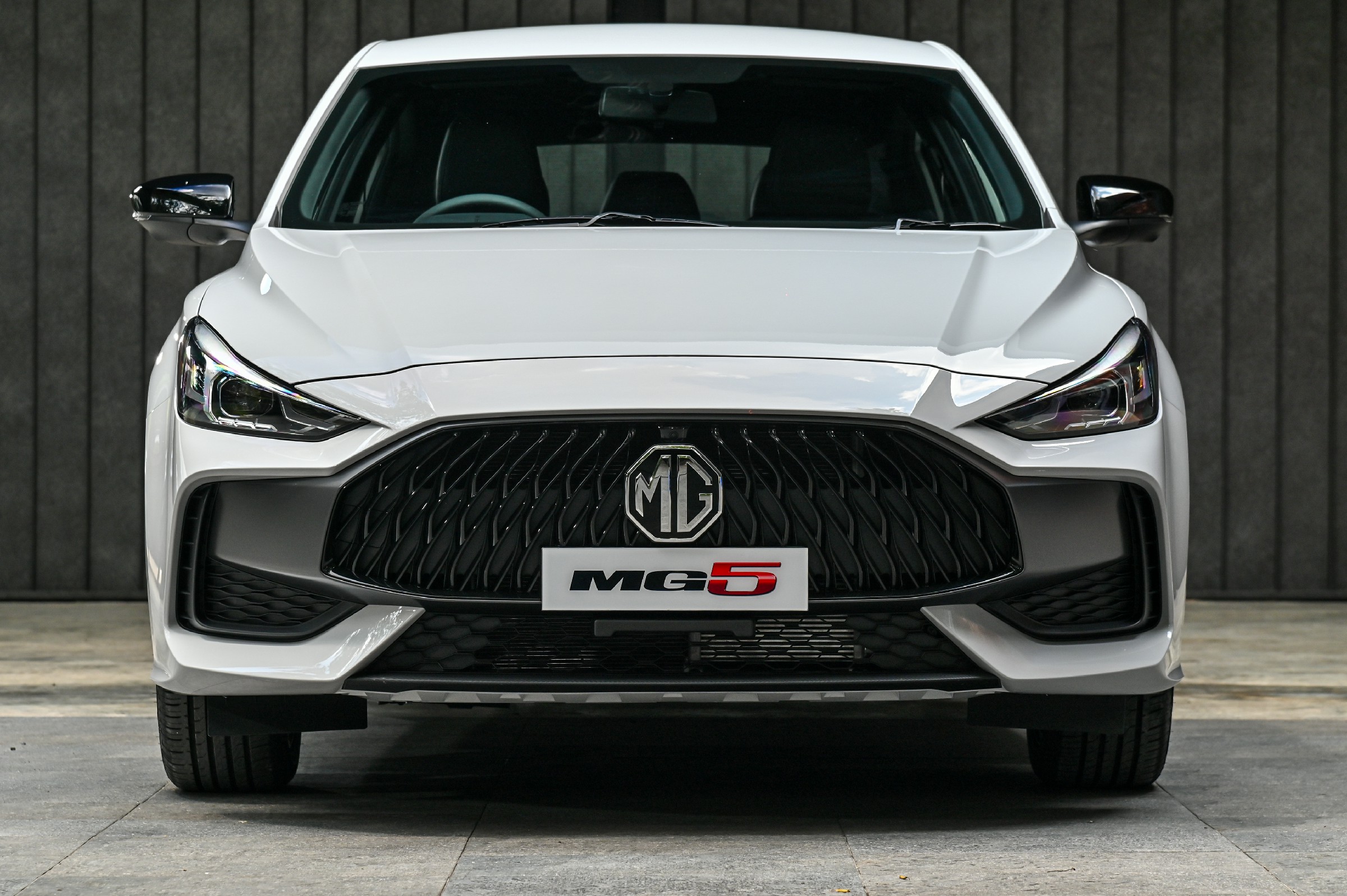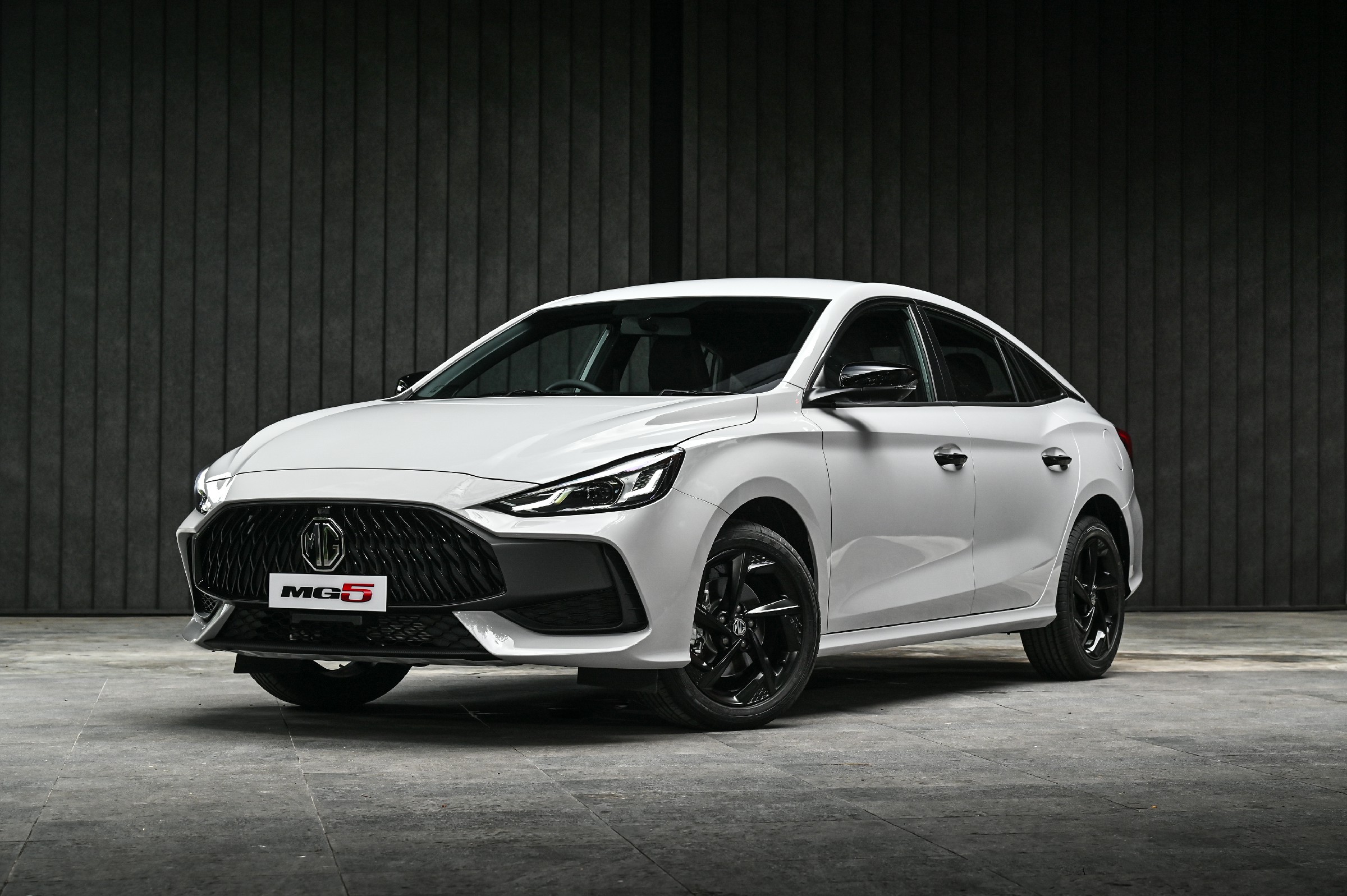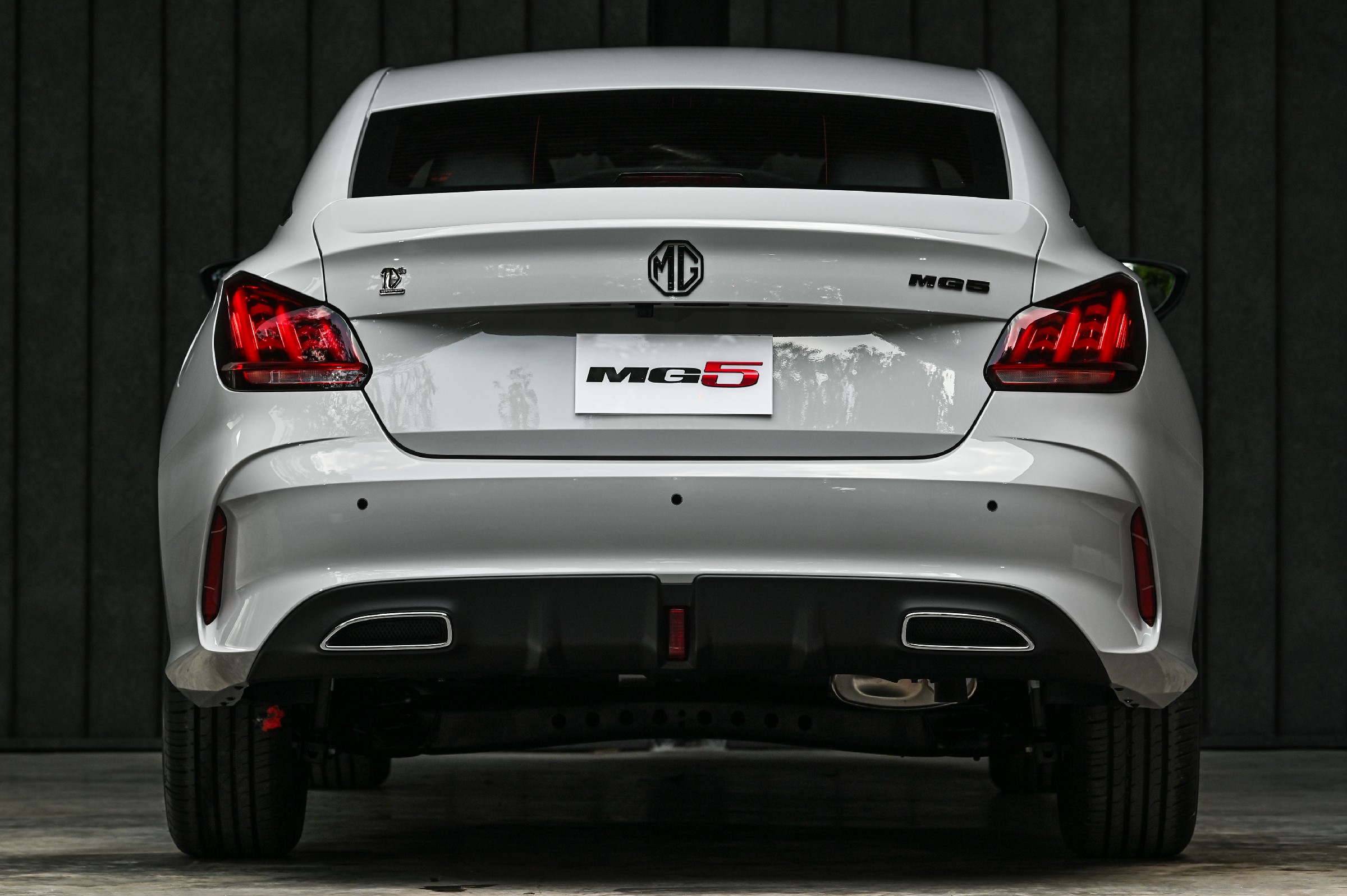 · โลโก้แบรนด์เอ็มจี และชื่อรุ่น MG5 บริเวณฝากระโปรงท้าย