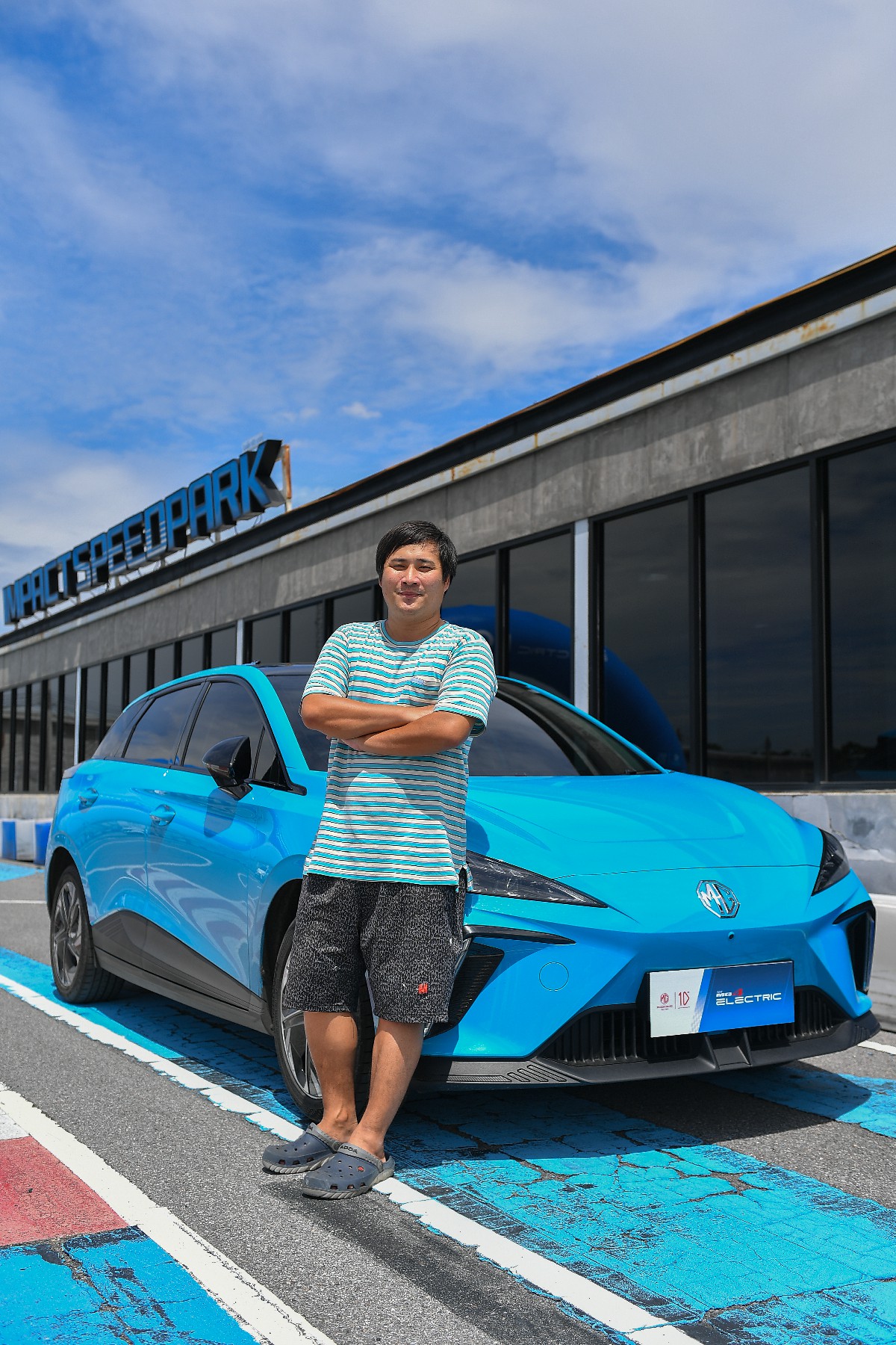 “ด้วยดีไซน์สปอร์ตโฉบเฉี่ยวของรถ NEW MG4 ELECTRIC ที่มาพร้อมกับสมรรถนะที่ดี กับจุดเด่นของรถที่มีระบบขับเคลื่อนล้อหลัง ฐานล้อกว้าง ทำให้เกาะถนนได้ดี เข้าโค้งได้อย่างเฉียบคม ช่วงล่างอิสระ 4 ล้อ แบบ 5-LINK SUSPENSION ถือเป็นอีวีที่ขับสนุกและเร้าใจ มาพร้อมกับระบบความปลอดภัยที่ครอบคลุมสำหรับการขับขี่ กิจกรรมในครั้งนี้ ถือเป็นครั้งแรกที่ได้เอารถคันโปรดจากที่ใช้ขับบนท้องถนนมารีดสมรรถนะแบบเต็มๆ บนสนาม ถือเป็นการเพิ่มประสบการณ์การขับขี่และการใช้รถคันนี้ให้ได้ดียิ่งขึ้น”