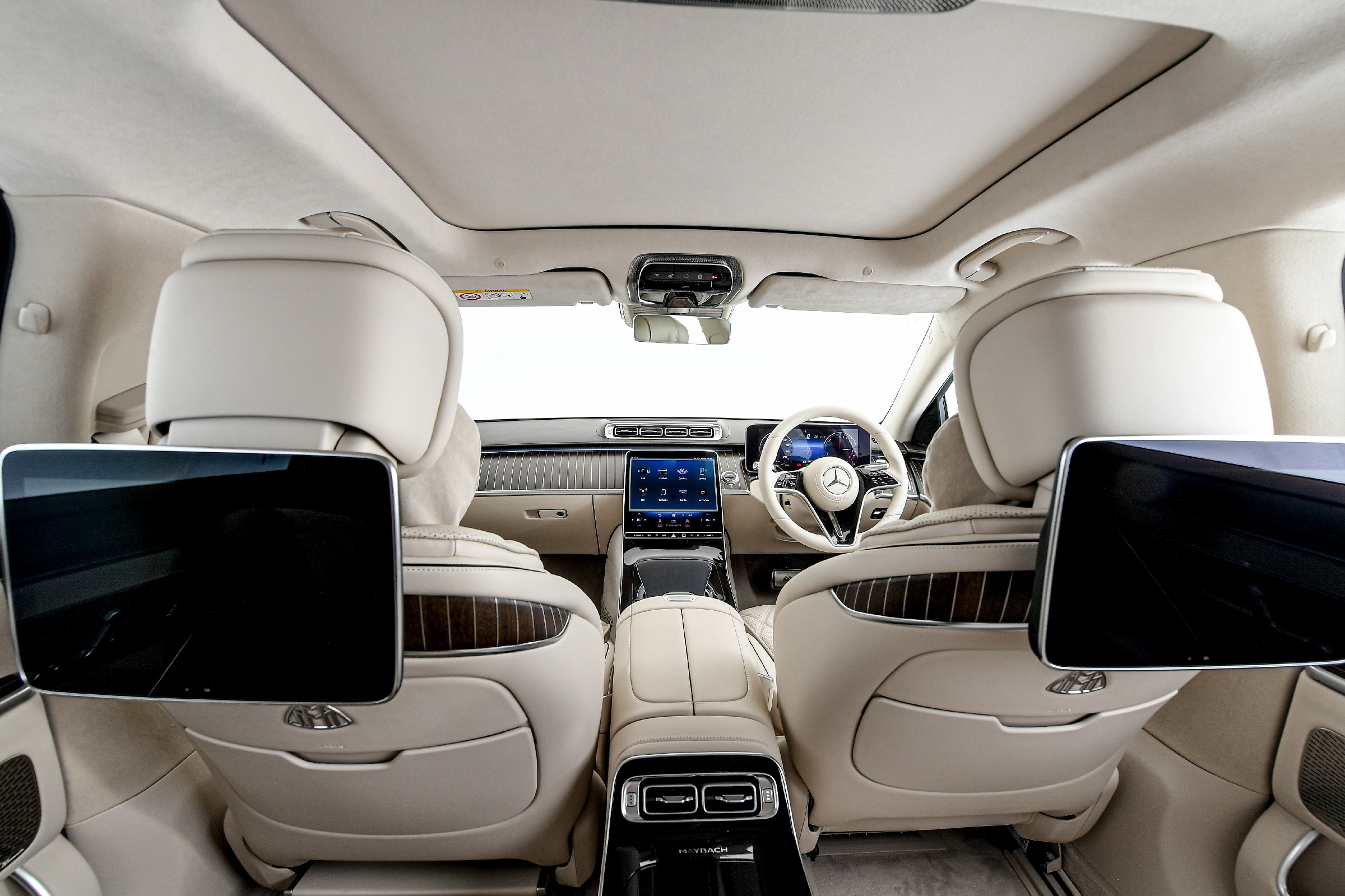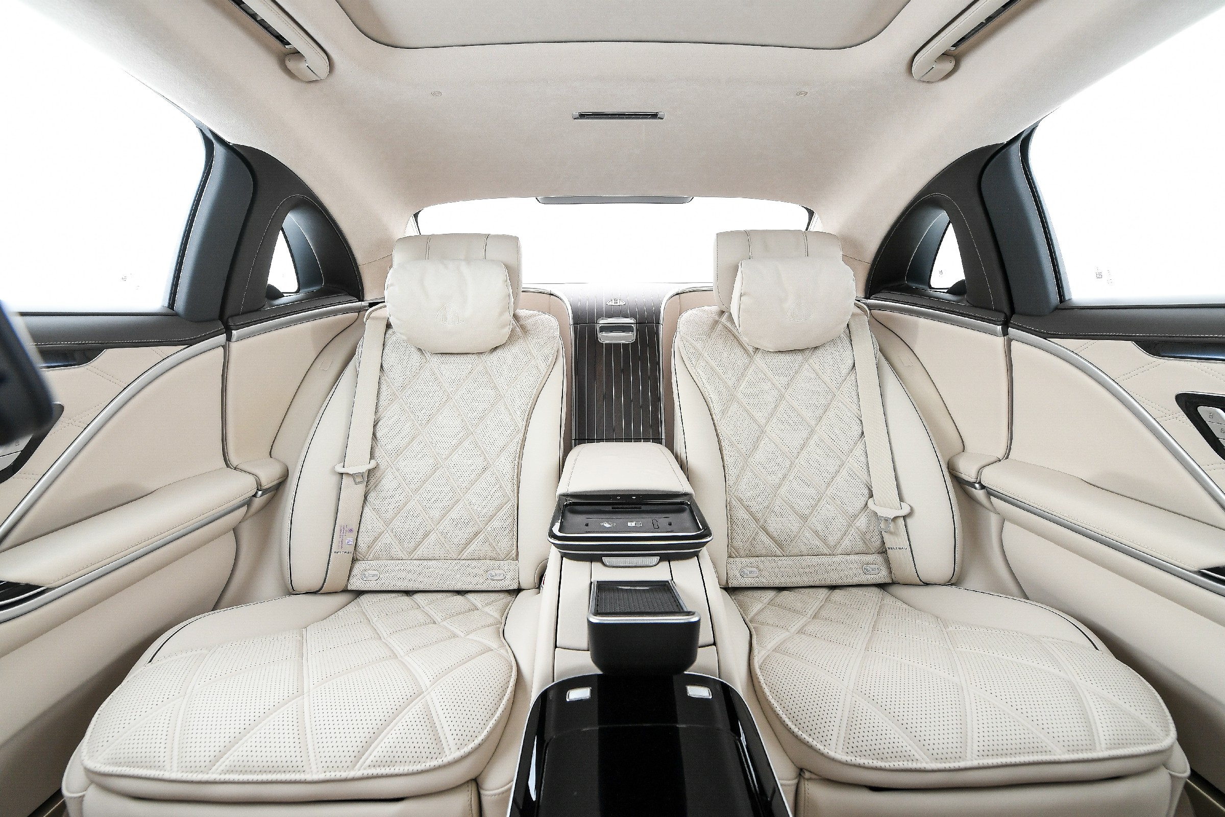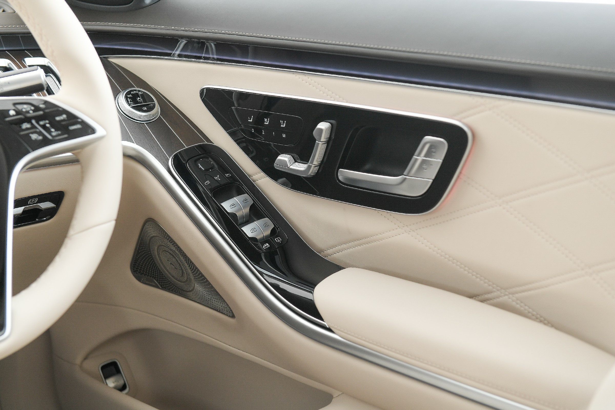 เมื่อเข้ามาภายในห้องโดยสาร จะพบแผงคอนโซลกลางแบบ black crystal-look finish พร้อมหน้าจอแสดงผลบริเวณคอนโซลกลาง OLED ขนาด 12.8 นิ้ว และหน้าจอแสดงผลข้อมูลการขับขี่แบบ Digital ที่สามารถปรับรูปแบบการแสดงผลได้ 3 รูปแบบ ตกแต่งบริเวณโครงหลังคาอย่างปราณีตด้วย DINAMICA microfibre คุณภาพสูง ติดตั้งพวงมาลัยมัลติฟังก์ชันแบบ 3 ก้าน หุ้มหนัง Nappa พร้อมปุ่มควบคุมแบบ Touch Control มาพร้อมเบาะนั่งดีไซน์หรูหราหุ้มหนัง Exclusive Nappa ที่ตกแต่งแบบ diamond design และระบบนั่งด้านหลังแบบ First-Class พร้อมฟังก์ชันการนวด ที่สามารถเปลี่ยนทุกความเหนื่อยล้าให้เป็นช่วงเวลาที่ผ่อนคลาย นอกจากนี้ ยังติดตั้งระบบควบคุมอุณหภูมิอัตโนมัติ THERMOTRONIC แบบ 4-ZONE ฟังก์ชันปรับสมดุลอากาศภายในห้องโดยสาร (AIR BALANCE package) ระบบฟอกอากาศแบบ HEPA filter และระบบตรวจวัดระดับฝุ่นละอองขนาด PM 2.5 เพื่อความปลอดภัยขั้นสูงสุดของผู้ขับขี่และผู้โดยสาร