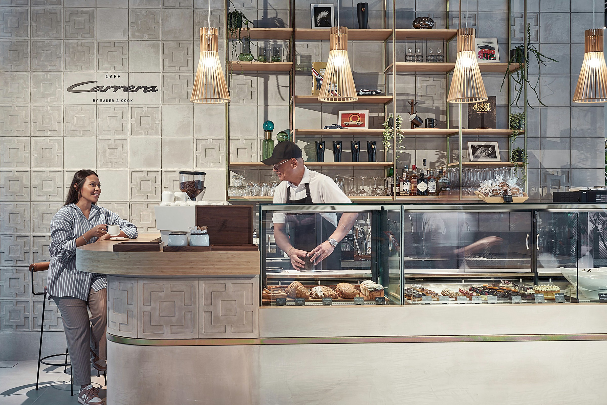 ในบริเวณนี้มีคาเฟ่ คาร์เรร่า (Café Carrera) ซึ่งดำเนินการโดย Baker & Cook พร้อมที่จะเสิร์ฟอาหารและกาแฟสูตรพิเศษ เพื่อช่วยให้ช่วงเวลาแห่งการท่องประวัติศาสตร์และวรรณกรรมของผู้ที่ชื่นชอบแบรนด์ปอร์เช่สมบูรณ์แบบยิ่งขึ้น การมีคาเฟ่อยู่ในสตูดิโอ ถือเป็นแนวคิดแรกของโลกสำหรับปอร์เช่ สตูดิโอ (Porsche Studio) ในขณะที่ดื่มด่ำไปกับเมนูเลิศรสที่รังสรรค์ขึ้น เพื่อเติมพลังให้กับร่างกายและจิตวิญญาณ ขณะเดียวกันก็รายล้อมไปด้วยเสน่ห์ของรถสปอร์ตอันเป็นเอกลักษณ์