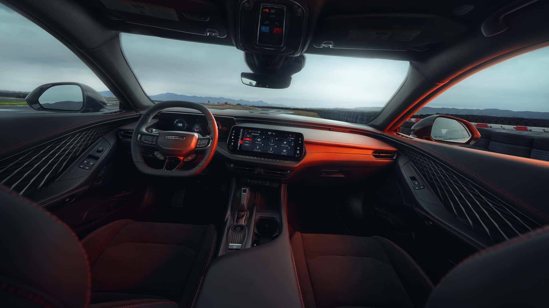 การตกแต่งภายในของ Charger เป็นแบบดิจิทัลอย่างแน่นอน แต่ก็ไม่ได้ขาดความผยองแบบอะนาล็อก ผู้ขับขี่จะได้รับหน้าจอทัสกรีน 10.25 นิ้วหรืออุปกรณ์เสริมขนาด 16 นิ้ว ซึ่งทํางานร่วมกับหน้าจอกลางขนาด 12.3 นิ้ว. เส้นของแผงหน้าปัดทําให้นึกถึงเส้นสายจากเครื่องชาร์จปี 1968 โดยมีจุดจับมือจับแบบด้ามปืนพกอยู่ที่คอนโซลกลาง หลังคากระจกยาวเต็มพื้นที่เป็นอุปกรณ์เสริมจะให้แสงสว่างแก่ภายใน หรือหากคุณต้องการสิ่งที่มีสีสันมากขึ้น ไฟส่องสว่างภายใน "การปรับทัศนคติ" ของ Dodge ก็มีให้เลือก 64 สี. สิ่งเหล่านี้สามารถเปลี่ยนแปลงได้ขึ้นอยู่กับสิ่งที่คุณกําลังทําอยู่ เช่น การเปิดประตูหรือการกดปุ่มสตาร์ท รูปแบบภายในมีให้เลือกตั้งแต่เบาะผ้าถึงหนัง Nappa ทั้งนี้ขึ้นอยู่กับแพ็คเกจและตัวเลือก