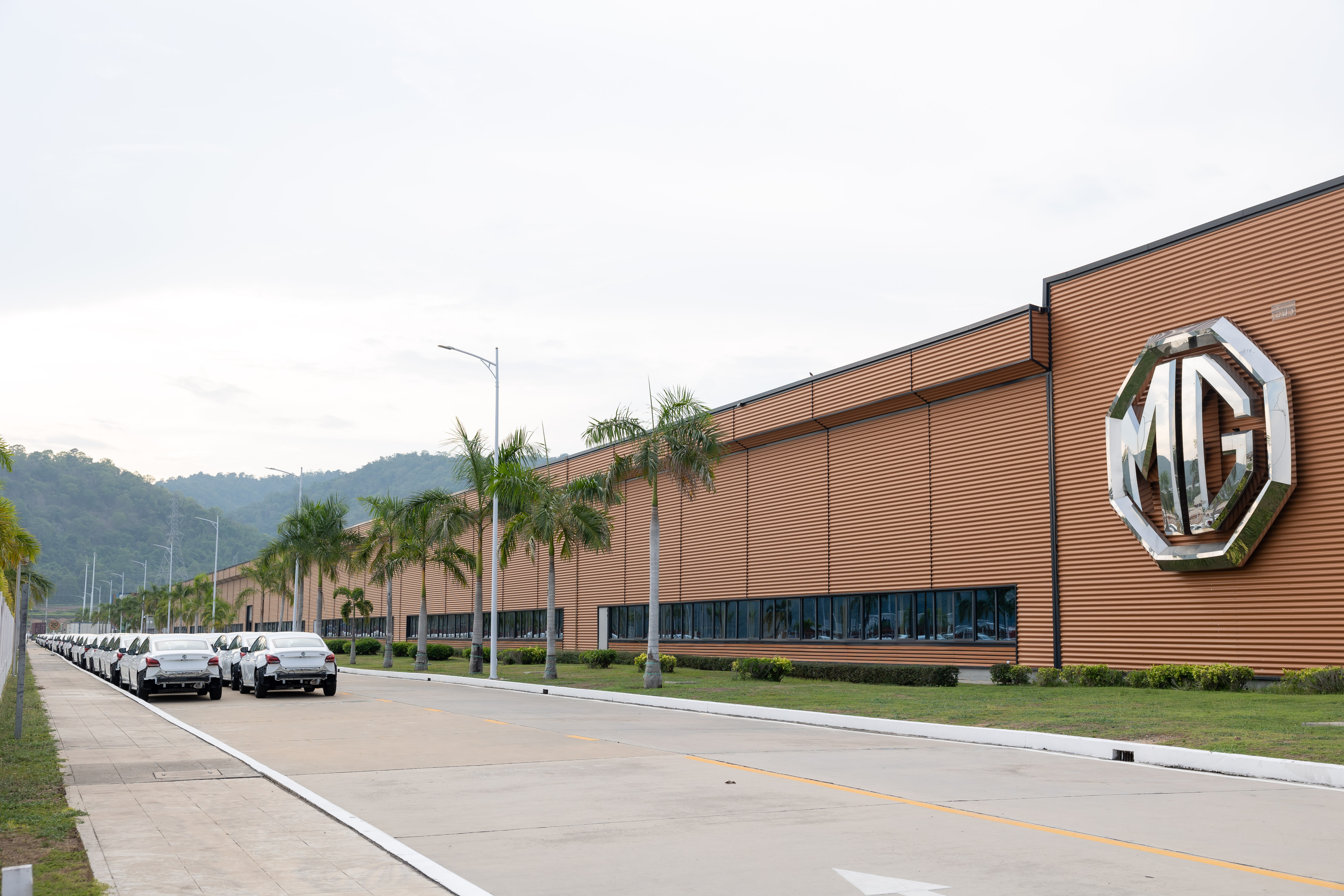 ประเทศไทย ถือเป็นประเทศยุทธศาสตร์ที่ เอ็มจี มุ่งมั่นเข้ามาดำเนินธุรกิจและทำการตลาดในระยะยาวด้วยความมั่นใจในศักยภาพของประเทศไทย ทั้งในแง่ของอัตราการเติบโตและการใช้งานรถภายในประเทศ ผนวกกับทำเลที่ตั้งที่มีโอกาสและความเป็นไปได้ในการส่งออกไปยังภูมิภาคอาเซียน เอ็มจี จึงได้สร้างโรงงานผลิตรถยนต์แบบครบวงจร ตั้งอยู่ที่นิคมอุตสาหกรรมดับบลิวเอชเออีสเทิร์นซีบอร์ด 2 (WHA ESIE 2) จังหวัดชลบุรี ครอบคลุมพื้นที่ทั้งหมด 437.5 ไร่ โดยพื้นที่กว่า 300 ไร่ ใช้เป็นส่วนของโรงประกอบตัวถัง (Body Shop) โรงพ่นสีรถยนต์ (Paint Shop) โรงประกอบรถ (General Assembly Shop) อีกทั้งยังครอบคลุมในส่วนของคลังจัดเก็บอะไหล่เพื่อรองรับรถยนต์ของเอ็มจีทุกรุ่น และ ล่าสุด เมื่อปี พ.ศ. 2566 ที่ผ่านมา เอ็มจี ได้ลงทุนครั้งใหญ่ในการพัฒนาพื้นที่ในส่วนที่เหลืออีกกว่า137.5 ไร่ ให้เป็นส่วนของ NEW ENERGY INDUSTRIAL PARK เพื่อรองรับการเติบโตของรถอีวี และเติมเต็มระบบนิเวศยานยนต์ไฟฟ้าให้สมบูรณ์ตั้งแต่ต้นน้ำสู่ปลายน้ำ ซึ่งในส่วนที่พัฒนาใหม่นี้ ประกอบด้วย โรงประกอบแบตเตอรี่อีวี และส่วนของพื้นที่สำหรับพัฒนาชิ้นส่วนเพื่อการประกอบรถยนต์เอ็มจีร่วมกับพาร์ตเนอร์บริษัทชั้นนำ จึงทำให้แบรนด์ เอ็มจี เป็นแบรนด์ที่สามารถผลิตและประกอบรถยนต์ได้ครบทุกรูปแบบการขับเคลื่อนจากฐานการผลิตภายในประเทศ กับกำลังการผลิตสูงสุด 100,000 คันต่อปี
