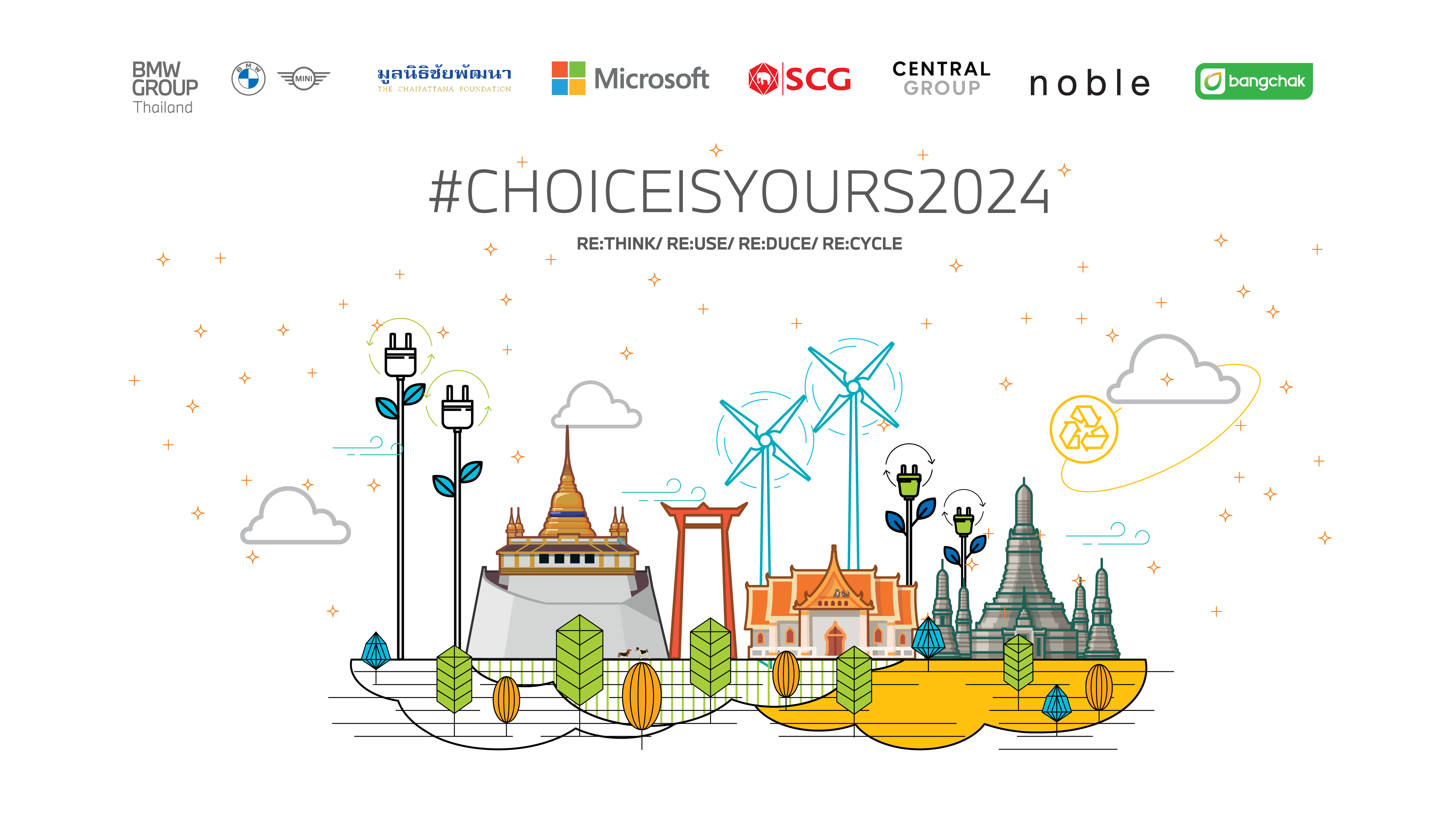 บีเอ็มดับเบิลยู กรุ๊ป ประเทศไทย มูลนิธิชัยพัฒนา เอสซีจี ไมโครซอฟท์ ประเทศไทย กลุ่มเซ็นทรัล โนเบิล ดีเวลลอปเมนท์ พร้อมขยายความร่วมมือกับอีกหนึ่งพันธมิตร บริษัท บางจาก คอร์ปอเรชัน จำกัด (มหาชน) จับมือต่อยอดโครงการ CHOICEISYOURS ต่อเนื่องเป็นปีที่สาม เชิญชวนนิสิตนักศึกษาจากสถาบันศึกษาทั่วประเทศ เข้าร่วมแข่งขันประกวดแนวคิดเรื่องเศรษฐกิจหมุนเวียนและการพัฒนาอย่างยั่งยืน โดยนอกจากจะเปิดตัวอีกหนึ่งองค์กรชั้นนำอย่างบางจากในฐานะพาร์ทเนอร์ใหม่แล้ว ในปีนี้ โครงการ CHOICEISYOURS ยังได้มีการปรับเปลี่ยนรูปแบบและกติกาการแข่งขันใหม่ เพื่อยกระดับความเข้มข้นของกิจกรรมและส่งเสริมให้นิสิตนักศึกษาร่วมผลักดันการปรับเปลี่ยนเพื่อความยั่งยืนในภาคส่วนต่าง ๆ ได้อย่างเป็นรูปธรรมยิ่งขึ้น พร้อมยกระดับศักยภาพในกลุ่มคนเจเนอเรชันใหม่ ด้วยโครงการฝึกอบรมและการได้เรียนรู้จากประสบการณ์ทำงานจริง พร้อมมอบโอกาสในการร่วมงานกับองค์กรชั้นแนวหน้าทั้งในประเทศไทยและในระดับโลก