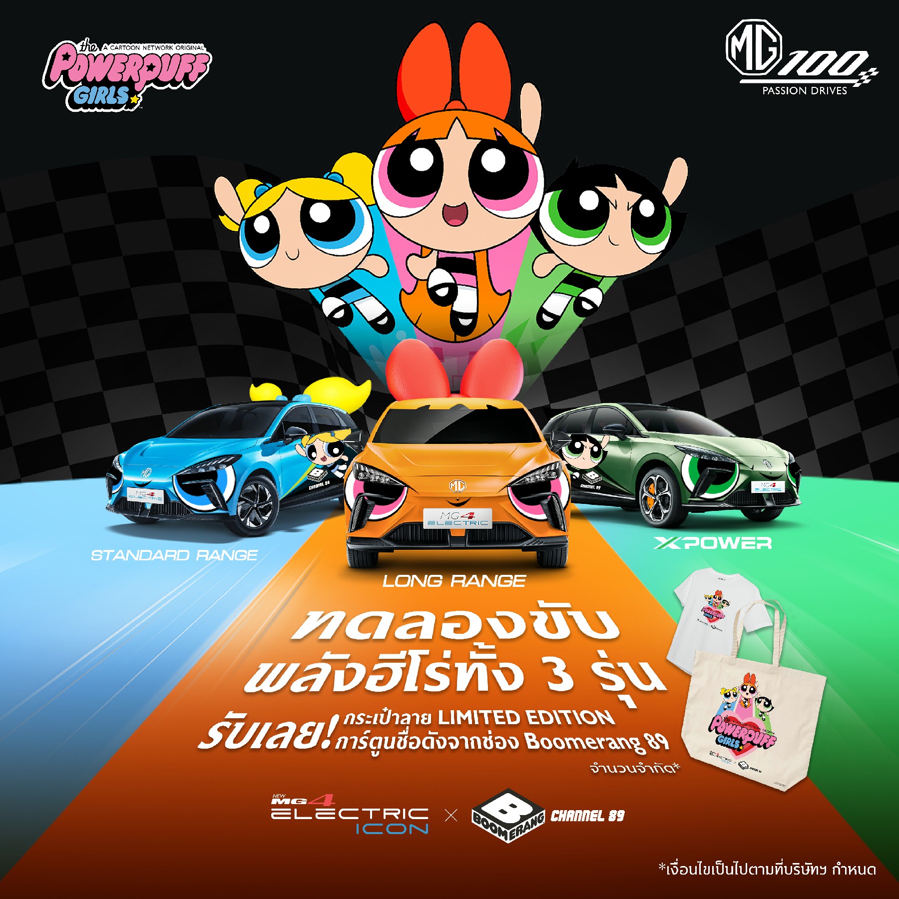 บริษัท เอสเอไอซี มอเตอร์ - ซีพี จำกัด และ บริษัท เอ็มจี เซลส์ (ประเทศไทย) จำกัด ผู้ผลิตและผู้จำหน่ายรถยนต์เอ็มจีในประเทศไทย ต่อยอดความฮิตของ NEW MG4 ELECTRIC ร่วมกับช่อง BOOMERANG 89 สร้างสีสันครั้งใหม่ให้กับวงการยานยนต์ไทยพร้อมผนวกกระแสความฮ็อตของ Art Toys นำการ์ตูนยอดนิยมระดับโลกอย่าง POWERPUFF GIRLS สะท้อนความสดใสแต่ทรงพลังใน NEW MG4 ELECTRIC POWERPUFF GIRLS EDITION เดินหน้าขยายฐานลูกค้าไปยังคนรุ่นใหม่ ให้เข้าถึงรถยนต์ไฟฟ้าได้มากยิ่งขึ้น พร้อมปล่อยคาราวานย่านวัยรุ่นกลางกรุงเทพฯ ให้ได้สัมผัสกับ NEW MG4 ELECTRIC POWERPUFF GIRLS EDITION ที่ผสานความน่ารักของ 3 สาวฮีโร่อย่างลงตัว พิเศษ!! สำหรับลูกค้าที่ทดลองขับ NEW MG4 ELECTRIC รับกระเป๋า LIMITED EDITION 3 สาวจอมพลัง ตั้งแต่ 7 มิถุนายน 2567 – 31 กรกฎาคม 2567 ที่โชว์รูมเอ็มจีทั่วประเทศ