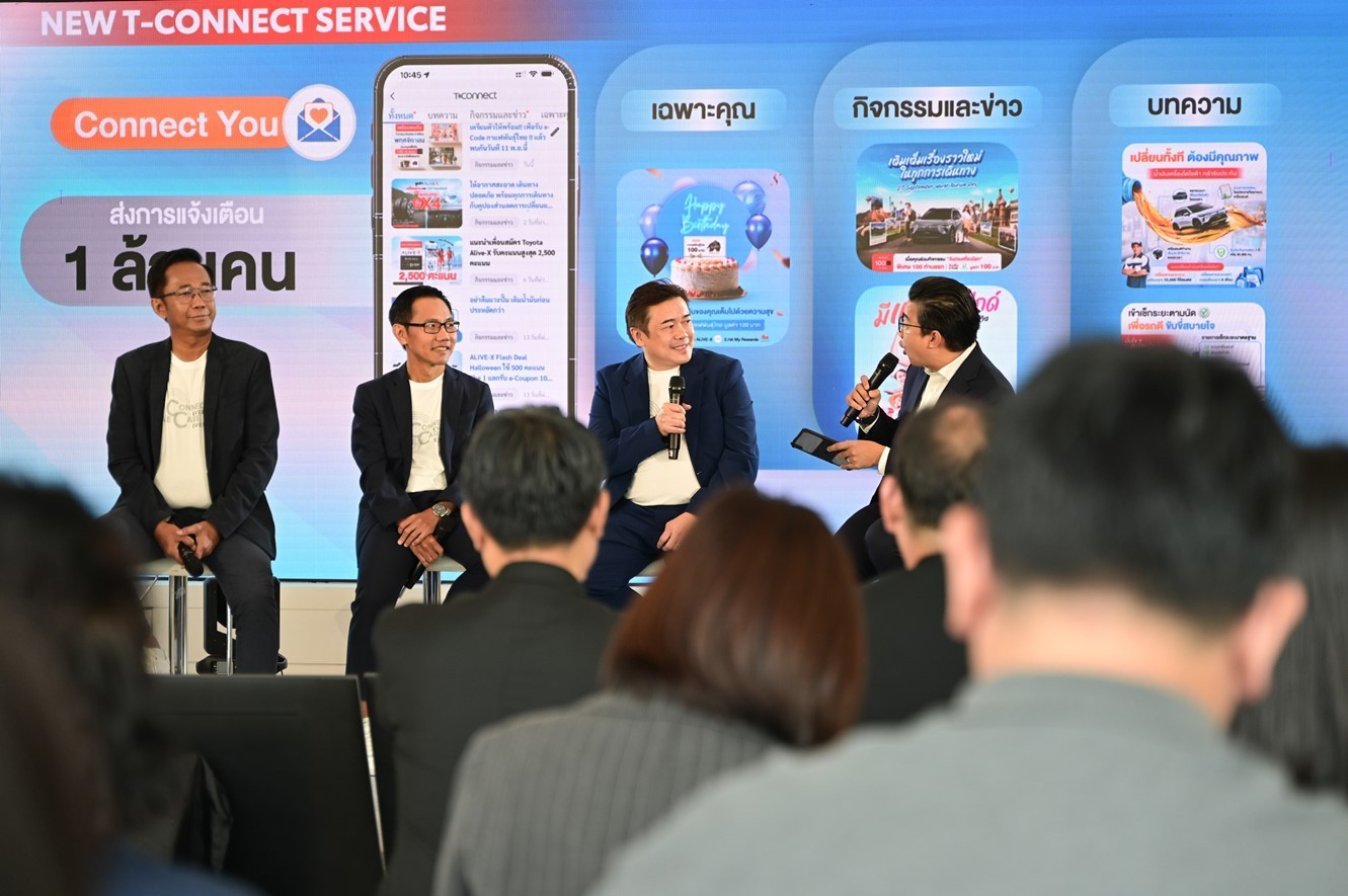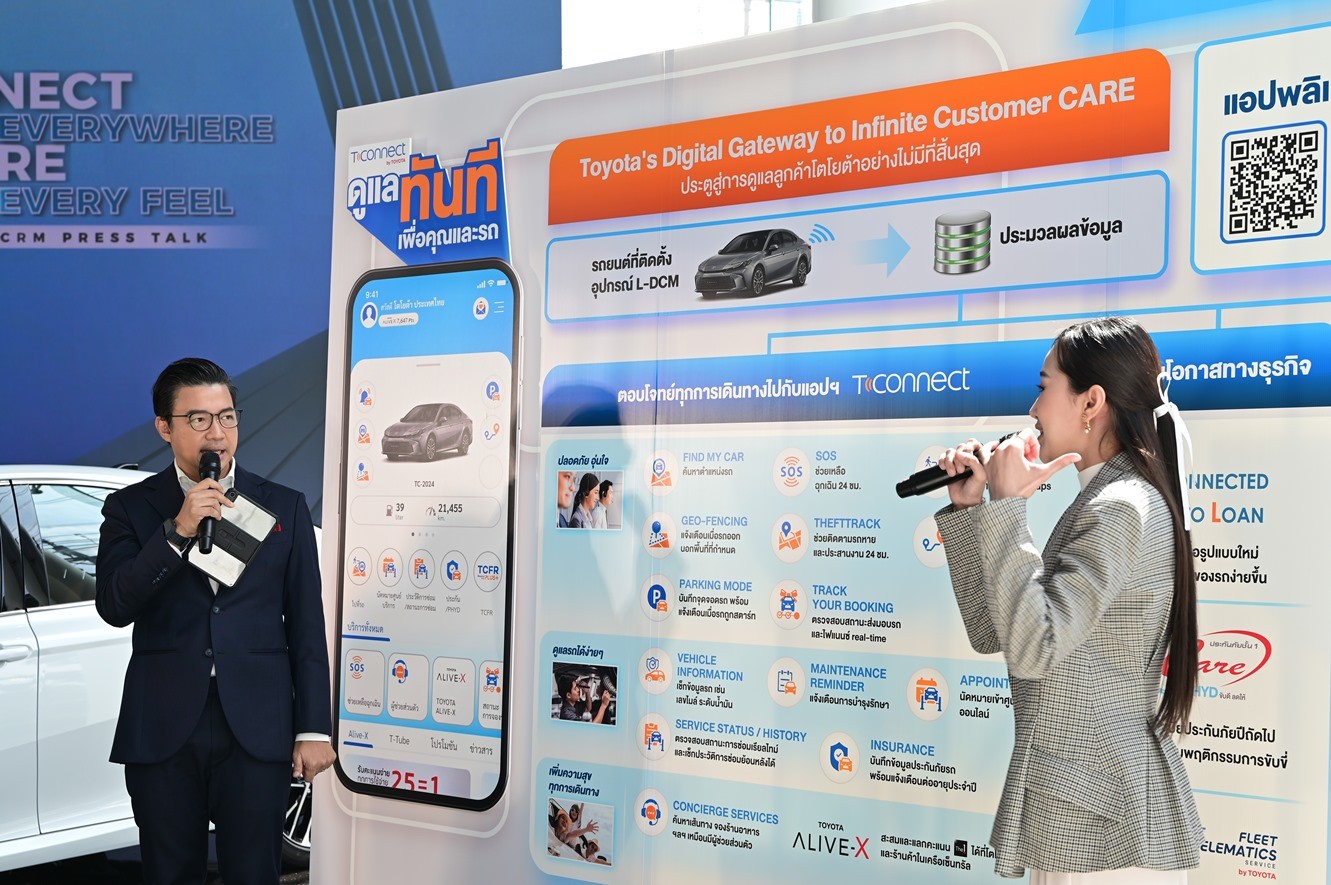 นายศุภกร รัตนวราหะ รองกรรมการผู้จัดการใหญ่ บริษัท โตโยต้า มอเตอร์ ประเทศไทย จำกัด พร้อมด้วย นายศุภชัย สินสุวรรณรักษ์ ผู้ช่วยกรรมการผู้จัดการใหญ่ และนายรุ่งโรจน์ ขันชะลี ผู้ช่วยกรรมการผู้จัดการใหญ่ ตอกย้ำความเป็นผู้นำด้านการขับเคลื่อน ที่พร้อมเชื่อมต่อทุกประสบการณ์แบบครบวงจรในยุคดิจิทัล ครอบคลุมตลอดการใช้รถของโตโยต้า พร้อมแนะนำบริการใหม่ Connect You บริการแจ้งสิทธิพิเศษให้ลูกค้าเฉพาะบุคคลผ่านแอปพลิเคชัน T-CONNECT และเปิดตัว Service Loyalty Program อย่างเต็มรูปแบบ ภายใต้ชื่อ “TCFR Plus+” ตอบแทนลูกค้าคนสำคัญที่เข้ารับบริการเช็กระยะกับศูนย์บริการโตโยต้าอย่างต่อเนื่อง รับสิทธิขยายระยะรับประกันคุณภาพรถยนต์สูงสุด 8 ปี พร้อมสิทธิประโยชน์อื่นๆที่ครอบคลุมตลอดการใช้ ภายในงานแถลงข่าว “CONNECT EVERYWHERE, TAKE CARE EVERY FEEL: เชื่อมต่อการขับขี่ ขับเคลื่อนความห่วงใย” เมื่อวันที่ 8 พฤศจิกายน 2567 ณ Toyota ALIVE บางนา