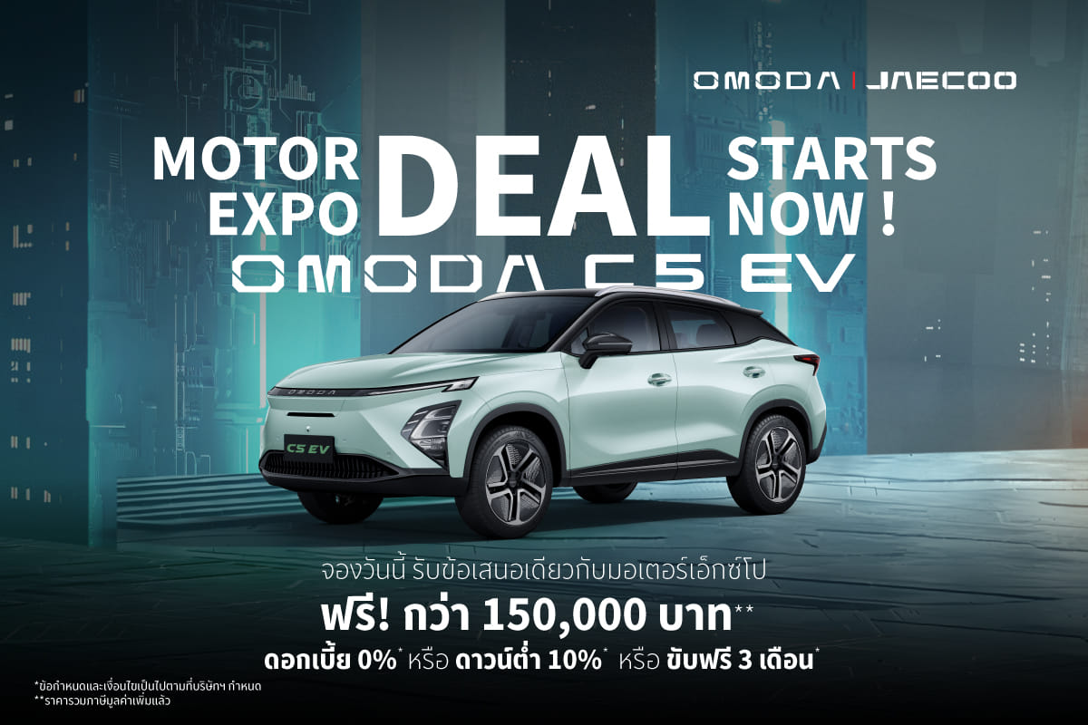 และสำหรับผู้ที่สนใจรถ OMODA C5 EV โอโมดา แอนด์ เจคู มีแคมเปญ Motor Expo Deal รับข้อเสนอเดียวกับ Motor Expo มูลค่ากว่า 150,000 บาท** กับข้อเสนอพิเศษ ประกอบด้วย