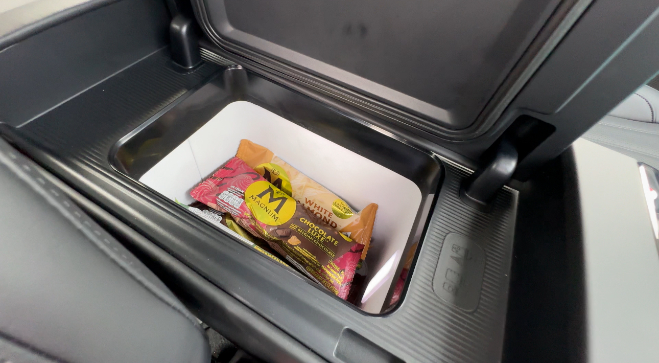 AION V มาพร้อมตู้เย็นอเนกประสงค์อัจฉริยะ ช่วยอำนวยความสะดวกให้ผู้ขับขี่และผู้โดยสารระหว่างการเดินทาง เหมาะสำหรับเก็บรักษาเครื่องดื่มหรืออาหาร สามารถปรับอุณหภูมิได้ถึง 3 โหมด ได้แก่ โหมดอุ่นร้อน, โหมดทำความเย็น และโหมดแช่แข็ง ครอบคลุมช่วงอุณหภูมิตั้งแต่ -15 ถึง 50 องศาเซลเซียส สามารถควบคุมได้ถึง 4 รูปแบบ ได้แก่ ควบคุมผ่านหน้าจอกลาง, ควบคุมผ่านแผงควบคุมตู้เย็น, ควบคุมผ่านระบบสั่งการด้วยเสียง และควบคุมระยะไกลผ่านแอปพลิเคชัน สร้างความสะดวกสบายในการใช้งานอย่างเต็มที่ ไม่ว่าจะเป็นการเก็บเครื่องดื่มให้เย็นสดชื่นหรืออุ่นเครื่องดื่มในช่วงวันที่อากาศเย็น ฟีเจอร์นี้เป็นการผสมผสานเทคโนโลยีที่ใส่ใจในทุกรายละเอียดการใช้งาน
