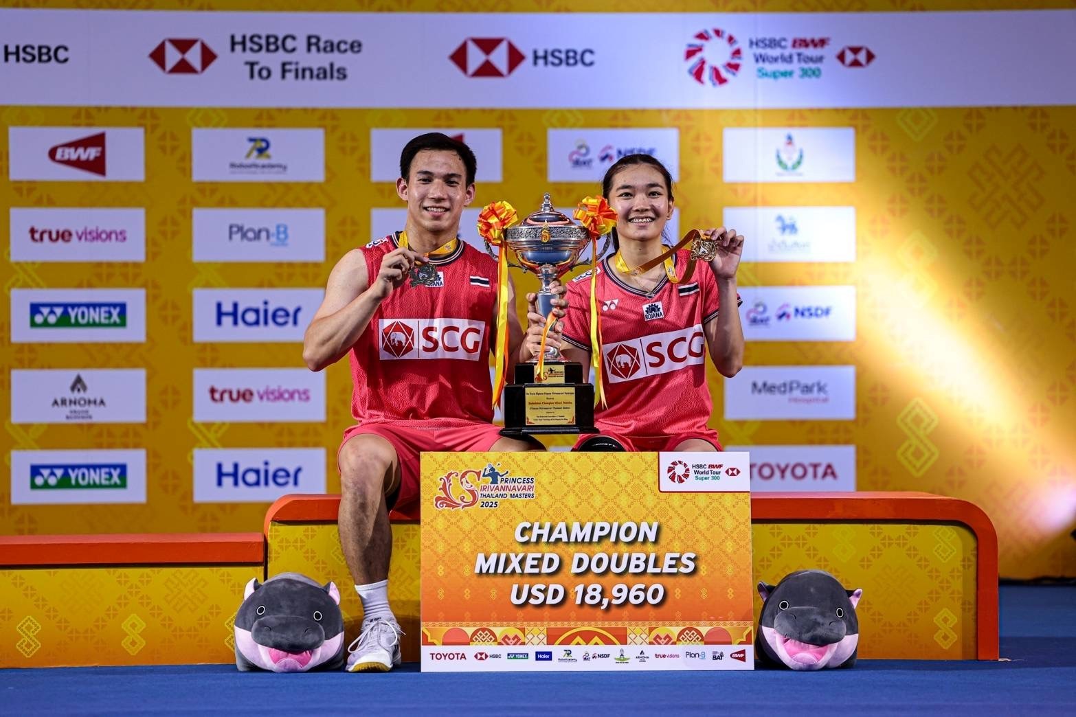 หลังจากการแข่งขันคู่สุดท้ายจบลง นายณัทธร ศรีนิเวศน์ ผู้ช่วยกรรมการผู้จัดการใหญ่ บริษัท โตโยต้า มอเตอร์ ประเทศไทย จำกัด ได้รับเกียรติร่วมมอบรางวัลกับ พลอากาศเอก พันธ์ภักดี พัฒนกุล ผู้บัญชาการทหารอากาศ พร้อมด้วย คุณหญิงปัทมา ลีสวัสดิ์ตระกูล กรรมการคณะกรรมการโอลิมปิกสากล รองประธานสหพันธ์แบดมินตันโลก และนายกสมาคมกีฬาแบดมินตันแห่งประเทศไทย ในพระบรมราชูปถัมภ์