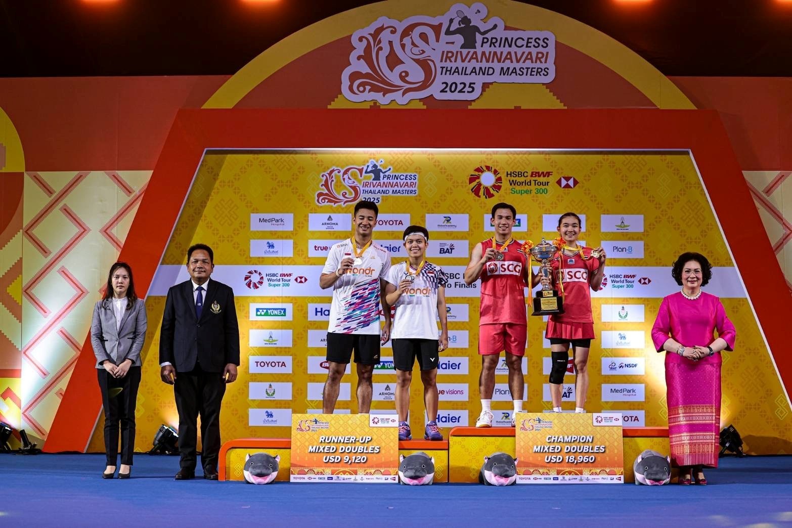 สิ้นสุดการแข่งขันแบดมินตันรายการ “ปริ๊นเซส สิริวัณณวรี ไทยแลนด์ มาสเตอร์ส 2025”ระดับเวิลด์ทัวร์ ซูเปอร์ 300 ชิงถ้วยพระราชทาน สมเด็จพระเจ้าลูกเธอ เจ้าฟ้าสิริวัณณวรี นารีรัตนราชกัญญา พร้อมเงินรางวัลรวม 240,000 เหรียญสหรัฐ หรือราว 8,286,000 บาท โดยนักตบลูกขนไก่ไทย ท็อปฟอร์มคว้าแชมป์ประเภทคู่ผสม และหญิงเดี่ยว พร้อมรับเงินรางวัลและถ้วยพระราชทาน สมเด็จพระเจ้าลูกเธอ เจ้าฟ้าสิริวัณณวรี นารีรัตนราชกัญญา ที่อาคารนิมิบุตรสนามกีฬาแห่งชาติ เมื่อวันที่ 2 กุมภาพันธ์ 2568