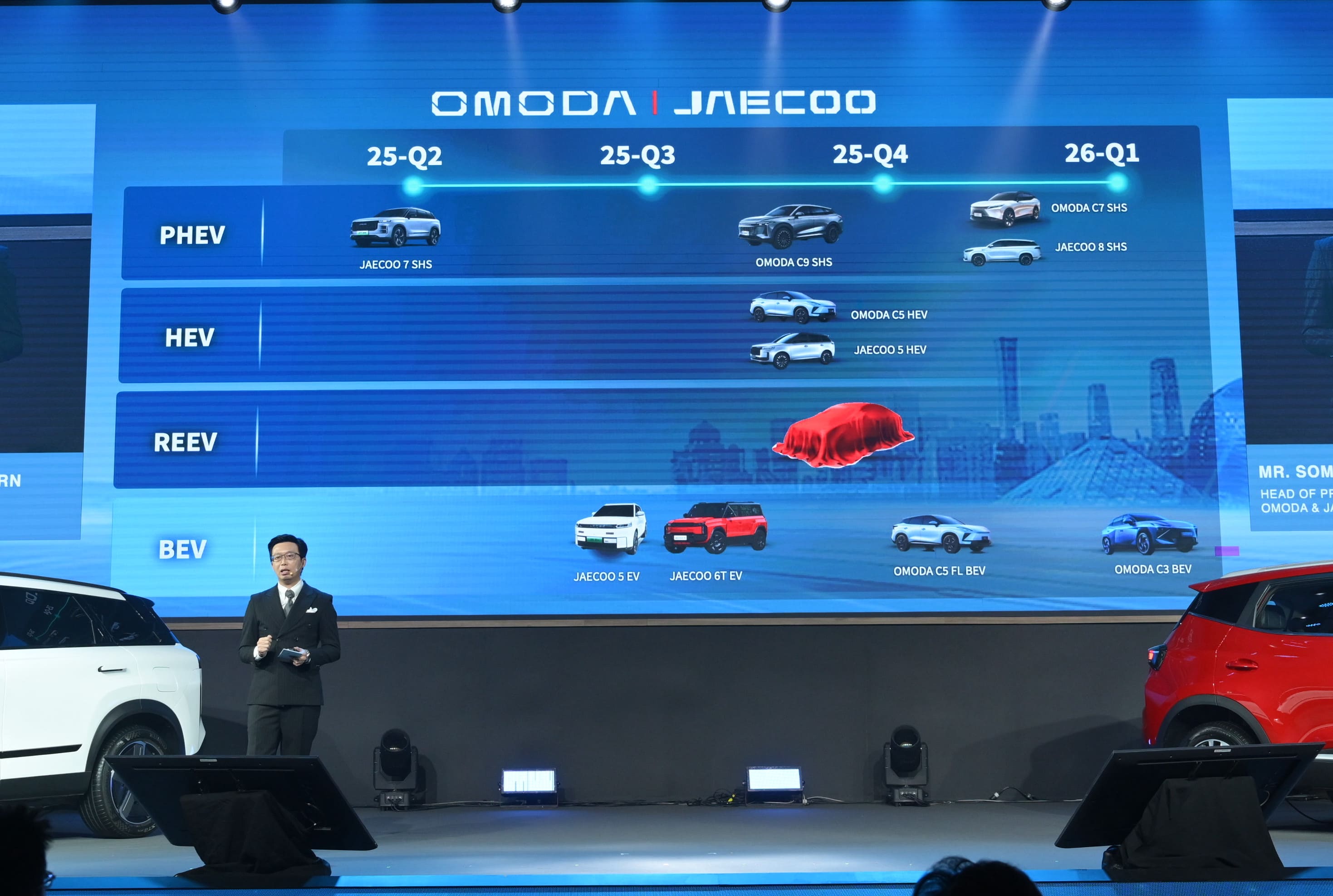 ความต้องการของผู้บริโภคยุคใหม่ โดยมีกำหนดการเปิดตัว JAECOO 5 EV และ JAECOO 6T EV ภายในไตรมาส 3 ตามมาด้วย OMODA C7 SHS และ OMODA C9 SHS ในไตรมาส 4 ของปีนี้ และเพื่อสร้างการรับรู้และเข้าถึงกลุ่มเป้าหมายมากขึ้น OMODA & JAECOO เตรียมเปิดตัวแบรนด์แอมบาสเดอร์ของ JAECOO หรือ Mr.J ภายในเร็วๆ นี้