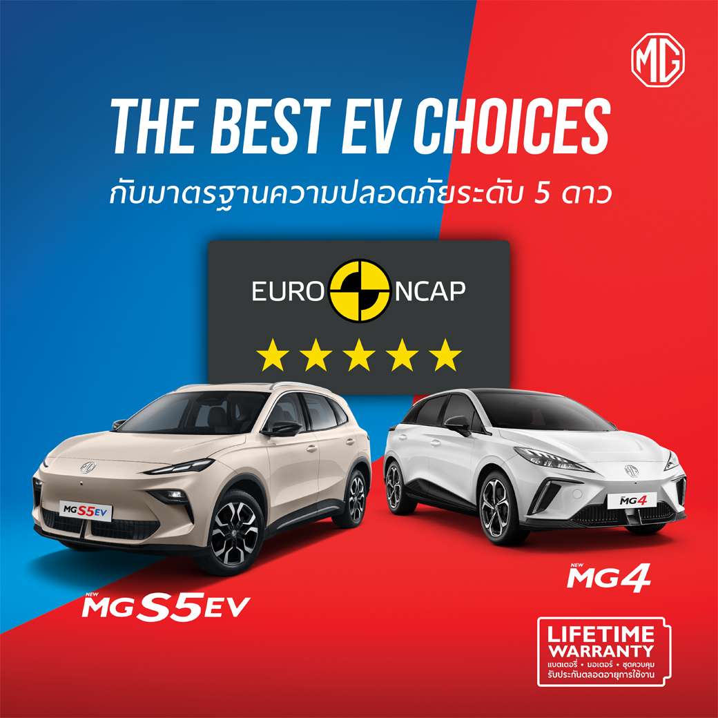 บริษัท เอสเอไอซี มอเตอร์ – ซีพี จำกัด และ บริษัท เอ็มจี เซลส์ (ประเทศไทย) จำกัด ผู้ผลิตและผู้จำหน่ายรถยนต์เอ็มจีในประเทศไทย ตอกย้ำความเป็นหนึ่งในผู้นำด้านยนตรกรรมพลังงานไฟฟ้า กับ NEW MG S5 EV ที่ผ่านการรับรองมาตรฐานความปลอดภัยระดับสูงสุด 5 ดาวจาก Euro NCAP องค์กรทดสอบความปลอดภัยยานยนต์ที่ได้รับการยอมรับมากที่สุด สะท้อนถึงเทคโนโลยีความปลอดภัยระดับสากล เพื่อเติมเต็มทุกความต้องการในการใช้งานได้อย่างครอบคลุมที่สุด กับการมอบทางเลือกที่ดีกว่าแก่ผู้ขับขี่ด้วยการเป็นรถ e-SUV ที่ผสานนวัตกรรมล้ำสมัย ความปลอดภัยระดับสูง และความคุ้มค่าที่ลงตัวไว้ด้วยกันอย่างสมบูรณ์แบบ
