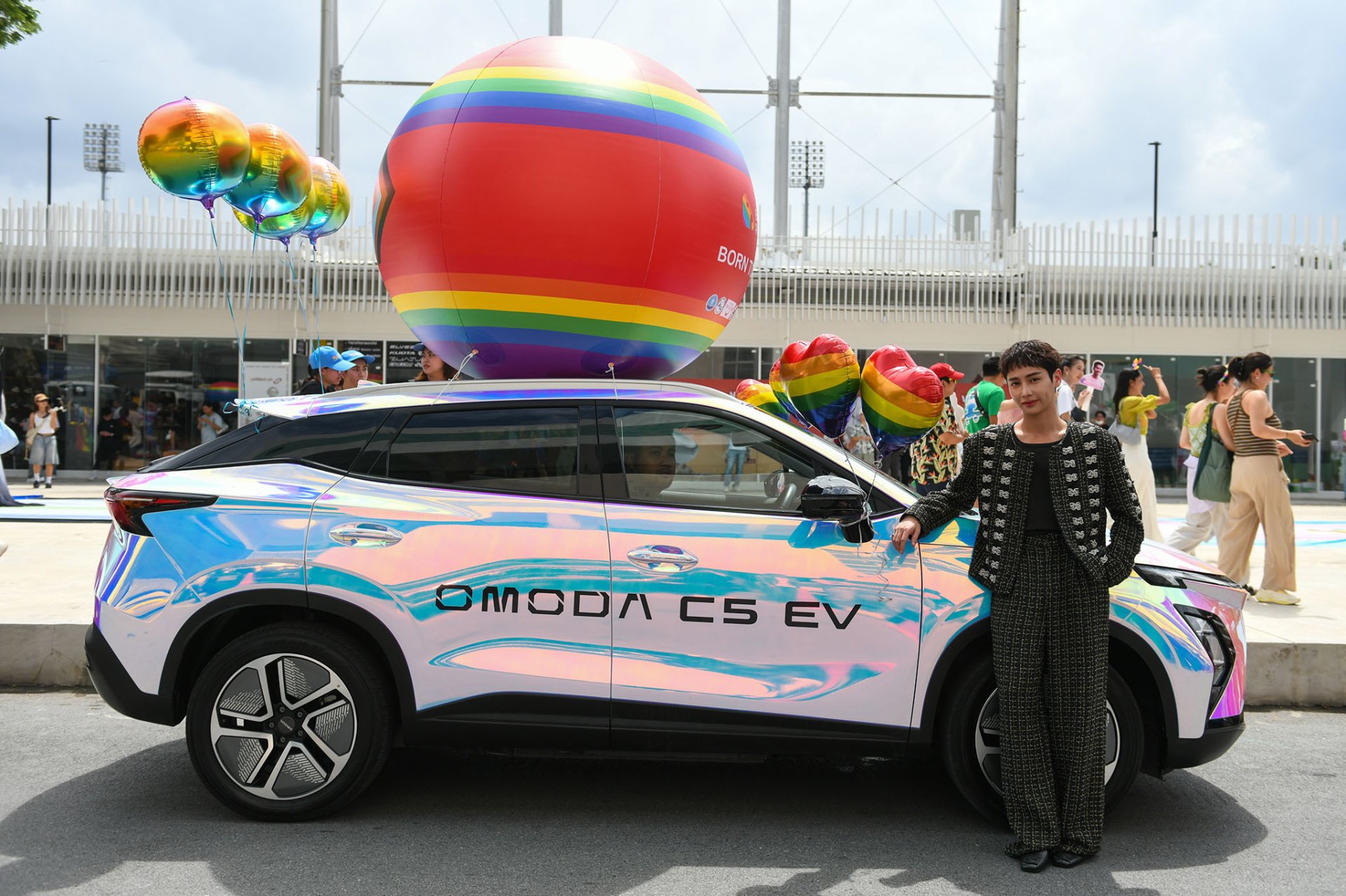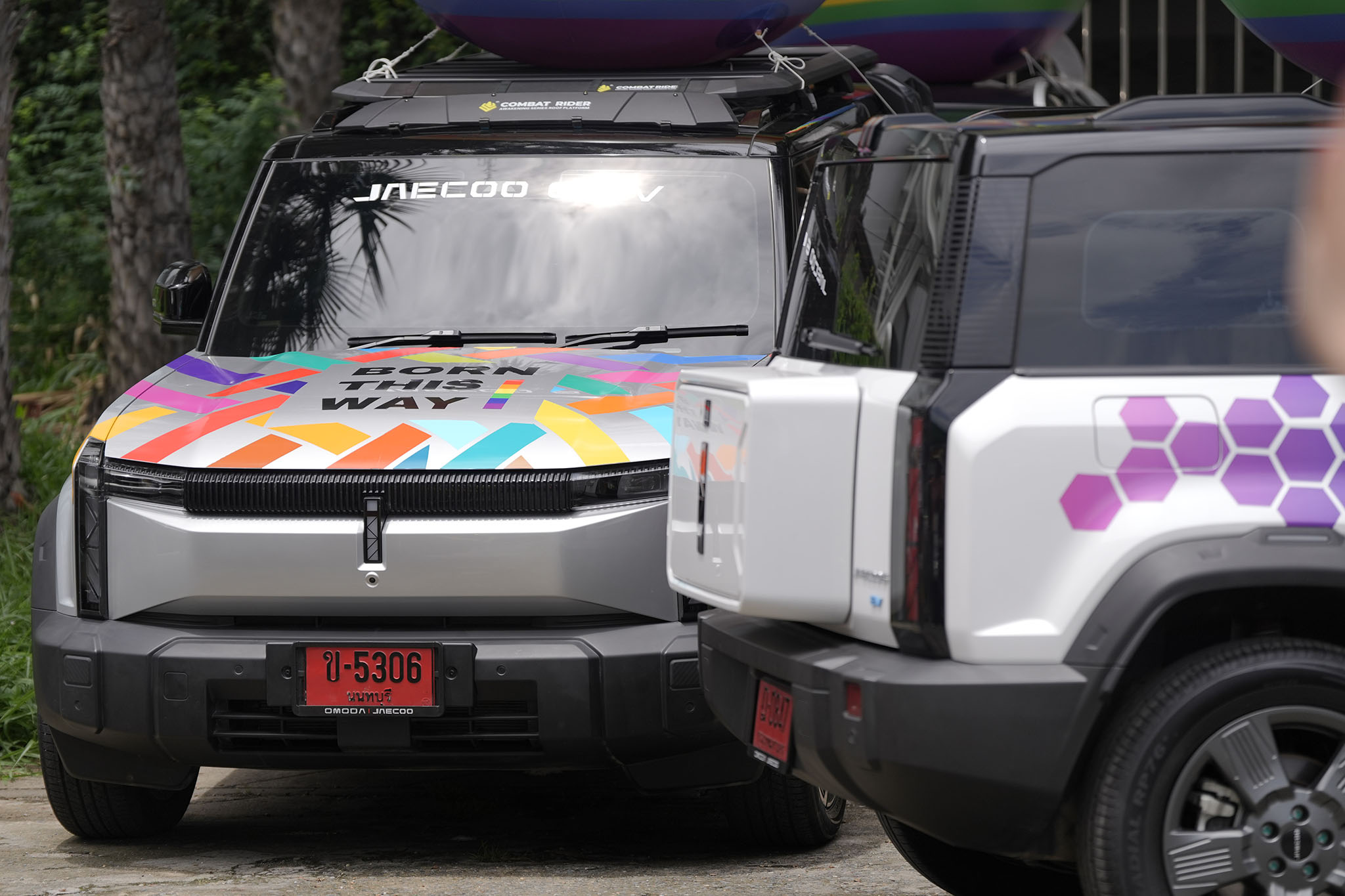 รถ OMODA C5 EV และ JAECOO 6 EV แต่งลาย Pride ด้วยคอนเซปต์ “Show Proud” ทั้ง 4 คันเดินสายไปกับขบวน เพื่อทำกิจกรรมตามจังหวัดต่าง ๆ ทั่วประเทศ